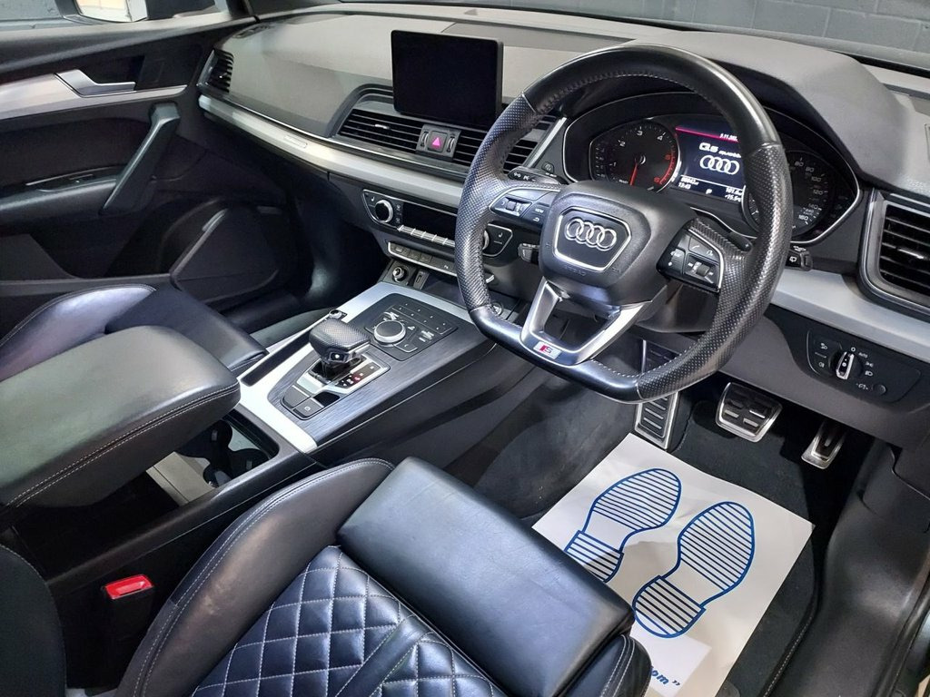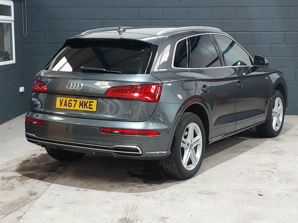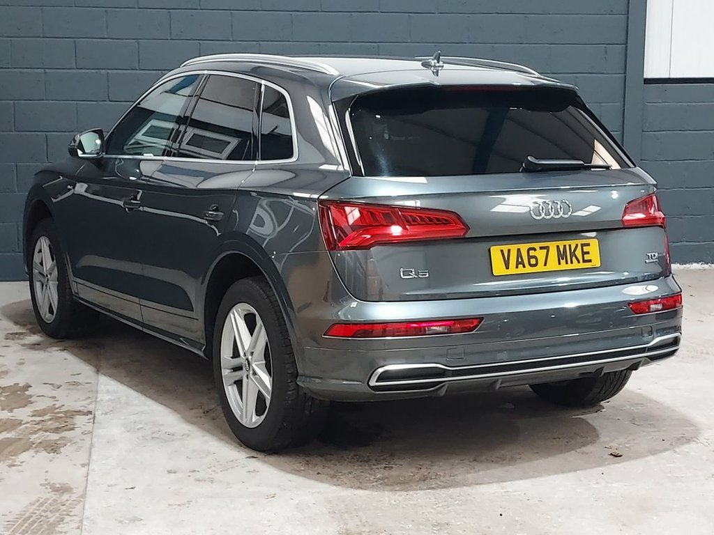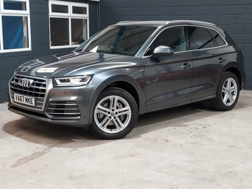 We recently purchased this lovely Audi Q5 directly from it's most recent owner, with just one prior. The car looks great finished in metallic Daytona grey with a stunning black quilted leather interior. It is in great condition, both inside and out and is a credit to its previous owners. The car drives exactly as you would expect and really is a joy to drive. The 2.0, 190 Bhp diesel engine offers great performance & economy returning up to 57mpg. It's been well looked after and comes with service history with records at 21k, 42k, 62k & 86k. The car also comes with a long MOT, with no advisories. There is an excellent equipment level with key features such as Satellite Navigation / Bluetooth / DAB Radio / Cruise Control / Heated Front seats / Electric Windows / Electric Mirrors / Alloy Wheels / Dual Zone Climate Control & much, much more.. We think this car represents great value for money and will not disappoint any prospective buyer. Please call for more details. 2 x SDXC Card Readers, 2 x USB Charging Ports and 1 x AUX-IN, Audi Connect Infotainment Services - 3 M, Audi Connect Safety and Service - e-call, Audi Smartphone Interface, Audi Sound System, Bluetooth Interface, CD Drive, DAB Digital Radio, MMI Navigation - SD Card Based, MMI Radio Plus with 7in Colour MMI Scree, Tow Bar Preparation, 19in Alloy Wheels - 5-Twin-Spoke Star De, Aluminium Roof Rails, Anti Theft Locking Wheel Bolts, Body Coloured Door Mirrors, Door Mirrors - Electrically Adjustable a, Electric Windows - Front and Rear, High-Gloss Package, Privacy Glass with Acoustic Glazing For , Radiator Grille in Twilight Grey with Ho, Rear Diffuser in Body Colour with Matt A, S Line Badges on