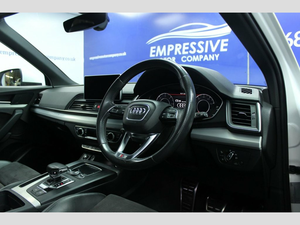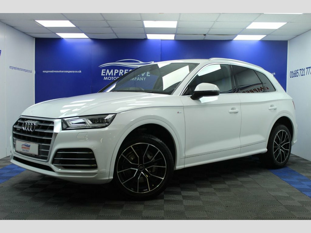 ****AWESOME AUDI**** Just in! This Stunning 2018 AUDI Q5 2.0 TDI S line SUV 5dr Diesel S Tronic quattro Euro 6 (s/s) (190 ps) Finished In White! 75,370 miles - 2.0L diesel - Automatic - 4 wheel drive - 19" diamond cut wheels - Automatic LED headlights - Powered tailgate - Parking sensors - Half leather heated S-line seats - Multi media interface system with sat nav - Bluetooth connectivity with apple car play - USB - AUX - Automatic dual zone climate control - Eco mode - Sport mode - Start stop - Traction Control - Hill descent control - Electric handbrake - Voice control - Paddle shift - Cruise control - Speed limiter - Auto wipers - Electric folding heated mirrors 19in Alloy Wheels - 5-Twin-Spoke Star De, 2 x SDXC Card Readers, 2 x USB Charging Ports and 1 x AUX-IN, 4-Way Electric Lumbar Support, 6-Airbag System, Aluminium Roof Rails, Anti Theft Locking Wheel Bolts, Anti-Theft Alarm, Audi Connect Infotainment Services - 3 M, Audi Connect Safety and Service - e-call, Audi Drive Select, Audi Parking System Plus, Audi Pre-Sense City, Audi Smartphone Interface, Audi Sound System, Auto-Dimming Rear-View Mirror, Automatic Headlight Adjustment, Bluetooth Interface, Body Coloured Door Mirrors, CD Drive, Cloth Headlining in Black, Colour Drivers Information System with 7, Contrast Stitching on Seats - Steering W, Cruise Control with Speed Limiter, DAB Digital