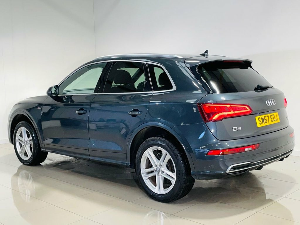 Audi Q5 2.0 TDI S line SUV 5dr Diesel S Tronic quattro Euro 6 (s/s) (190 ps) Registration: SW67EDJ | 95,000 miles | AA 128 Point Inspection Passed | Finished in Daytona Grey with S line Styling A smart and well-presented example of the Audi Q5 2.0 TDI S line, finished in premium Daytona Grey with the iconic S line exterior styling. This model is enhanced with the desirable Technology Pack, Electric Folding Mirrors and Privacy Glass, making it a highly equipped and refined family SUV Powered by the efficient and reliable 2.0 TDI diesel engine producing 190 PS, paired with the smooth S Tronic automatic gearbox and quattro all-wheel drive, it offers excellent performance, refined cruising and superb all-weather capability. The S line specification adds sportier styling, upgraded interior finishes and a more dynamic feel on the road Key Features 2.0 TDI diesel engine (190 PS) S Tronic automatic transmission quattro all-wheel drive S line styling package Daytona Grey metallic exterior Technology Pack Electric Folding Mirrors Privacy Glass LED headlights S line sport seats in half leather/Alcantara Flat-bottom S line steering wheel MMI Navigation Plus Virtual Cockpit digital dashboard Front & rear parking sensors Cruise control DAB radio, Bluetooth & smartphone interface 19" S line alloy wheels Additional Information AA 128 Point Inspection Passed Service History Euro 6 – ULEZ compliant Road tax: £195 per year A well-specified Audi Q5 S line, finished Door Mirrors - Folding, Technology Package, Daytona Grey, 19in Alloy Wheels - 5-Twin-Spoke Star De, 2 x SDXC Card Readers, 2 x USB Charging Ports and 1 x AUX-IN, 4-Way Electric Lumbar Support, 6-Airbag System, Aluminium Roof Rails, Anti Theft Locking Wheel Bolts, Anti-Theft Alarm, Audi Connect Infotainment Services - 3 M, Audi Connect Safety and Service - e-call, Audi Drive Select, Audi Parking System Plus, Audi Pre-Sense City, Audi Smartphone Interface, Audi Sound System, Auto-Dimming Rear-View Mirror, Automatic Headlight Adjustment, Bluetooth Interface, Body Coloured Door Mirrors, CD Drive, Cloth Headlining in Black, Colour Drivers Information System with 7, Contrast Stitching on Seats - S