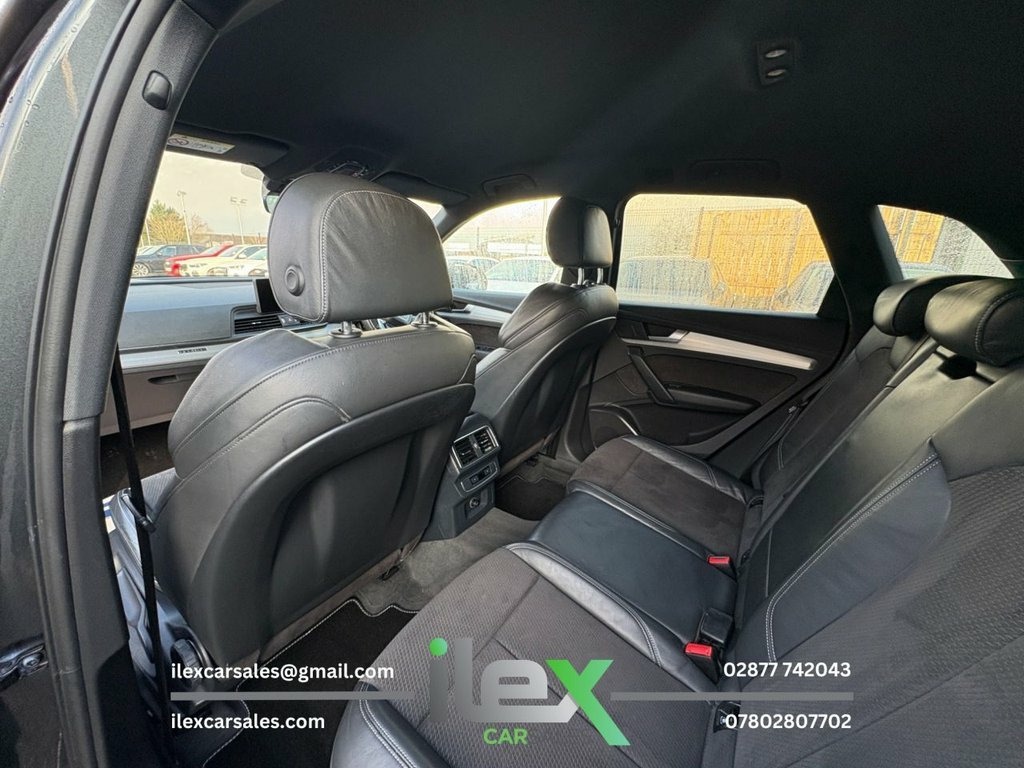 2018 Audi Q5 2.0 TDI S line S Tronic quattro (190PS) A premium SUV finished in Grey with S line styling, quattro all-wheel drive, heated sport seats, navigation. Smooth, refined and packed with Audi tech — a stunning example. Highlights: • 2.0 TDI | S Tronic Automatic | quattro • 190PS | 88,234 Miles | 55.4 MPG • S line Styling | Dynamic Suspension • 22" Upgraded Alloys (£1195 optional extra) • MMI Navigation | Audi Smartphone Interface • Heated Front Sport Seats | 3-Zone Climate • LED Headlights & Dynamic Indicators • Audi Parking System Plus Price: £18,750 416 Ballyquin Road, Dungiven, Derry, County Londonderry, BT47 4NQ 02877 742043 | 07802 807702 www.ilexcarsales.co.uk – View all stock 19in Alloy Wheels - 5-Twin-Spoke Star De, 2 x SDXC Card Readers, 2 x USB Charging Ports and 1 x AUX-IN, 4-Way Electric Lumbar Support, 6-Airbag System, Aluminium Roof Rails, Anti Theft Locking Wheel Bolts, Anti-Theft Alarm, Audi Connect Infotainment Services - 3 M, Audi Connect Safety and Service - e-call, Audi Drive Select, Audi Parking System Plus, Audi Pre-Sense City, Audi Smartphone Interface, Audi Sound System, Auto-Dimming Rear-View Mirror, Automatic Headlight Adjustment, Bluetooth Interface, Body Coloured Door Mirrors, CD Drive, Cloth Headlining in Black, Colour Drivers Information System with 7, Contrast Stitching on Seats - Steering W, Cruise Control with Speed Limiter, DAB Digital