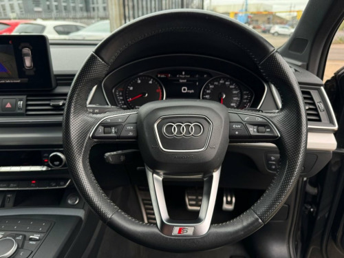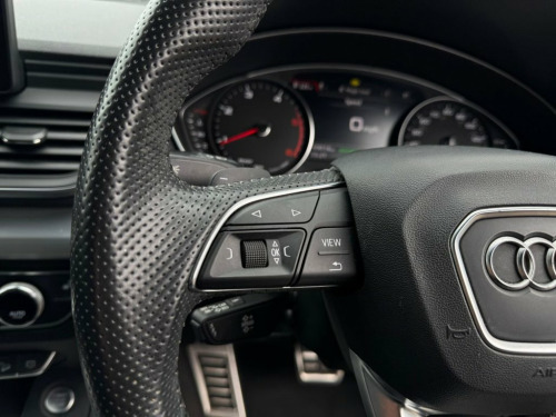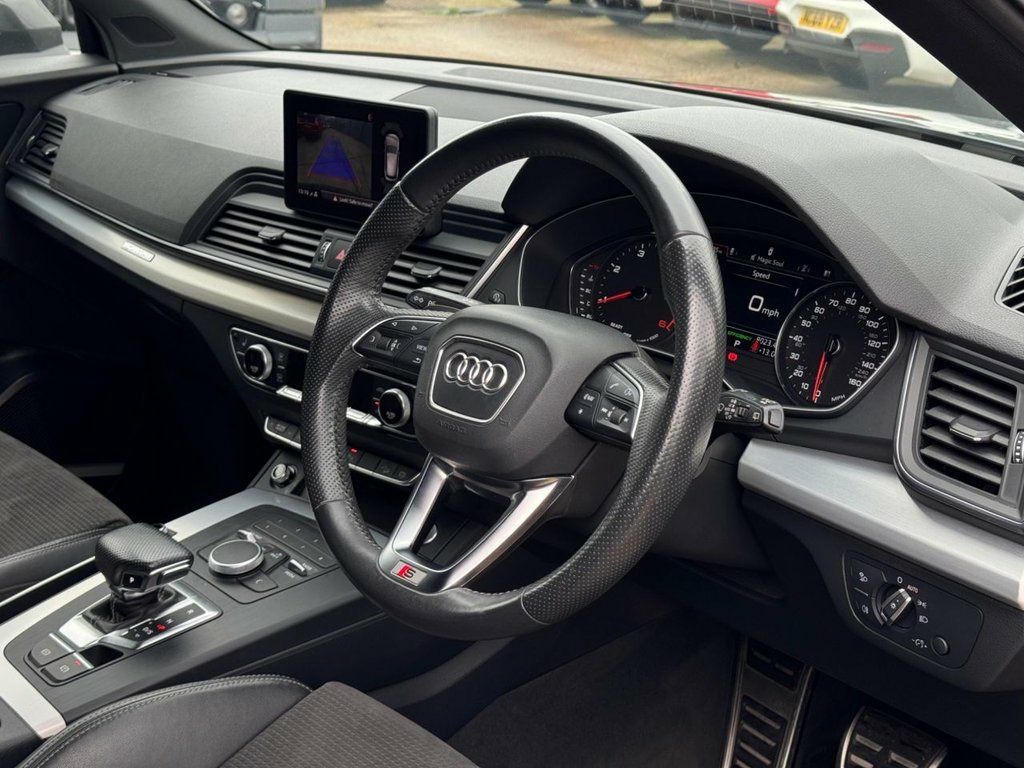 Here we have a stunning 2018 18 Audi Q5 S line 2.0 TDI S line SUV 5dr Diesel S Tronic quattro Euro 6 (s/s) (190 ps), a well cared for example with just 1 previous owner from new and presented in excellent condition throughout. Powered by the strong and efficient 2.0 TDI engine producing 190 ps, paired with the smooth S Tronic automatic gearbox and Audi's renowned quattro all wheel drive system, this Q5 delivers a refined yet confident drive in all conditions. Being Euro 6 compliant, it is ULEZ friendly and ideal for both city and motorway use. The S line specification gives the car a sporty, premium feel, complemented by polished alloy wheels and sleek styling. Inside, you'll find heated leather seats, satellite navigation, media connectivity and a rear view camera, offering comfort, practicality and convenience. It also benefits from the upgraded Bang and Olufsen sound system, providing exceptional audio quality and a true premium cabin experience. A superbly maintained, one owner example with a strong specification and fantastic road presence, this Audi Q5 is ready to drive away and enjoy. Serious enquiries welcome. 19in Alloy Wheels - 5-Twin-Spoke Star De, 2 x SDXC Card Readers, 2 x USB Charging Ports and 1 x AUX-IN, 4-Way Electric Lumbar Support, 6-Airbag System, Aluminium Roof Rails, Anti Theft Locking Wheel Bolts, Anti-Theft Alarm, Audi Connect Infotainment Services - 3 M, Audi Connect Safety and Service - e-call, Audi Drive Select, Audi Parking System Plus, Audi Pre-Sense City, Audi Smartphone Interface, Audi Sound System, Auto-Dimming Rear-View Mirror, Automatic Headlight Adjustment, Bluetooth Interface, Body Coloured Door Mirrors, CD Drive, Cloth Headlining in Black, Colour Drivers Information System with 7, Contrast Stitching on Seats - Steering W, Cruise Control with Speed Limiter, DAB Digital