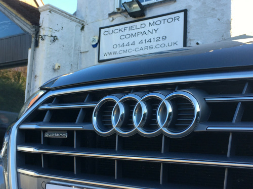 Cuckfield Motor Company are proud to offer for sale this stunning Audi Q5 S-Line TDI Quattro automatic. This car looks amazing in grey and has a great level of spec including CARPLAY and Android auto---Satellite navigation---Reversing camera---Front and rear parking sensors---Leather and alcantara interior---heated seats---Power tailgate---Audi drive select---Bluetooth telephone and audio streaming---DAB radio---2X USB---19'' alloy wheels---Automatic headlights---Cruise control and more.Every car we offer comes with a comprehensive provenance check certificate, Minimum 6 month warranty and new MOT and service where applicable. All part exchanges welcome.We offer extremely competitive finance packages to help you fund your new car.Cuckfield Motor Company Ltd is a family run business FCA approved dealer established for over 20 years, With 30 years experience in the motor trade.We are located in the village of Cuckfield just off the A23, 15 minutes from Gatwick airport and only 5 minutes from Haywards Heath train station.Please contact us via phone/email to view this car today. email us on: salescmc-cars.co.uk01444 414129, ectric windows - front and rear, front sports seats with s embossed logo, keyless go, split folding rear seat bench - 40-20-40 with rear seat armrest, isofix child seat mounting and top tether, remote central locking, 19'' alloy wheels, 2 owners, 2x usb ports, android auto, automatic lights, bluetooth phone & audio, carplay, cruise control, dab radio, drive select, front & rear parking sensors, heated seats, leather & alcantara upholstery, paddle shift, power tailgate, reversing camera, satellite navigation