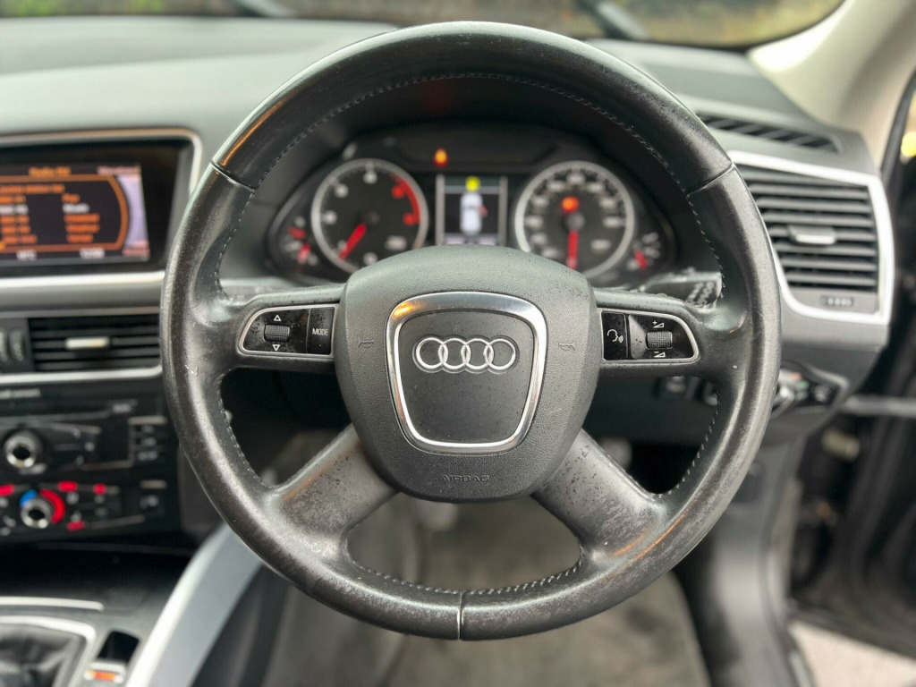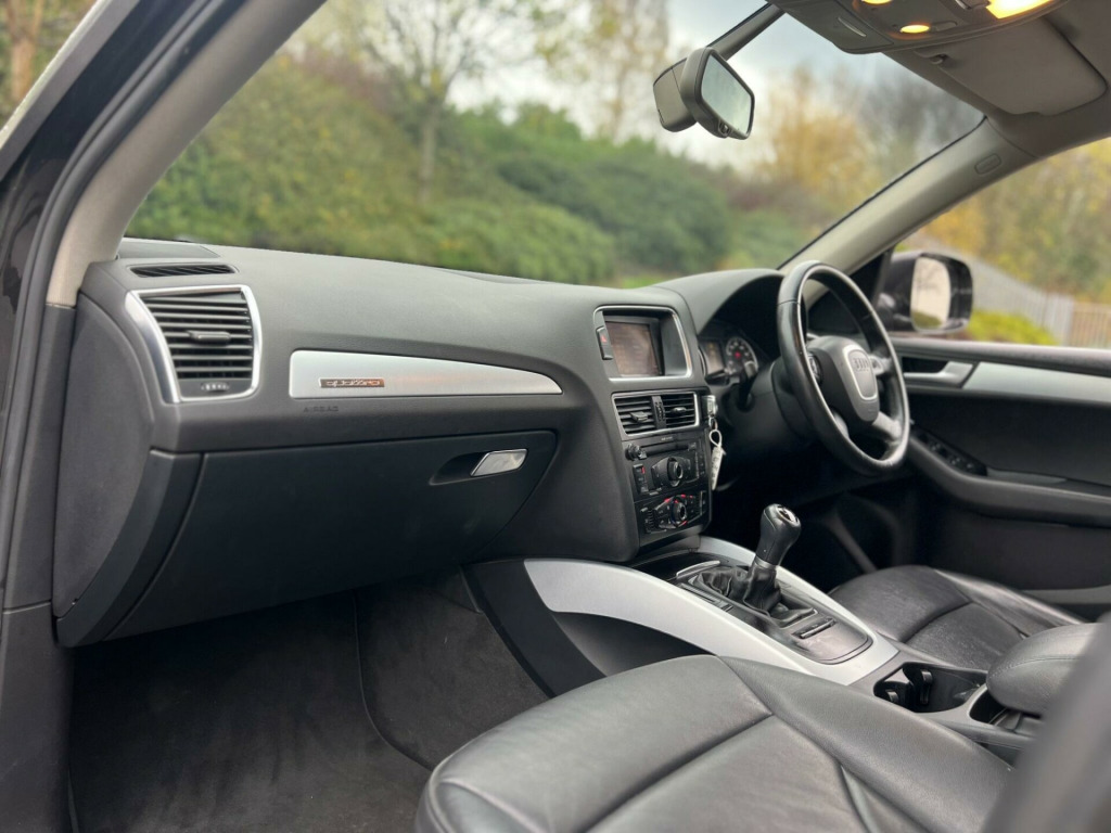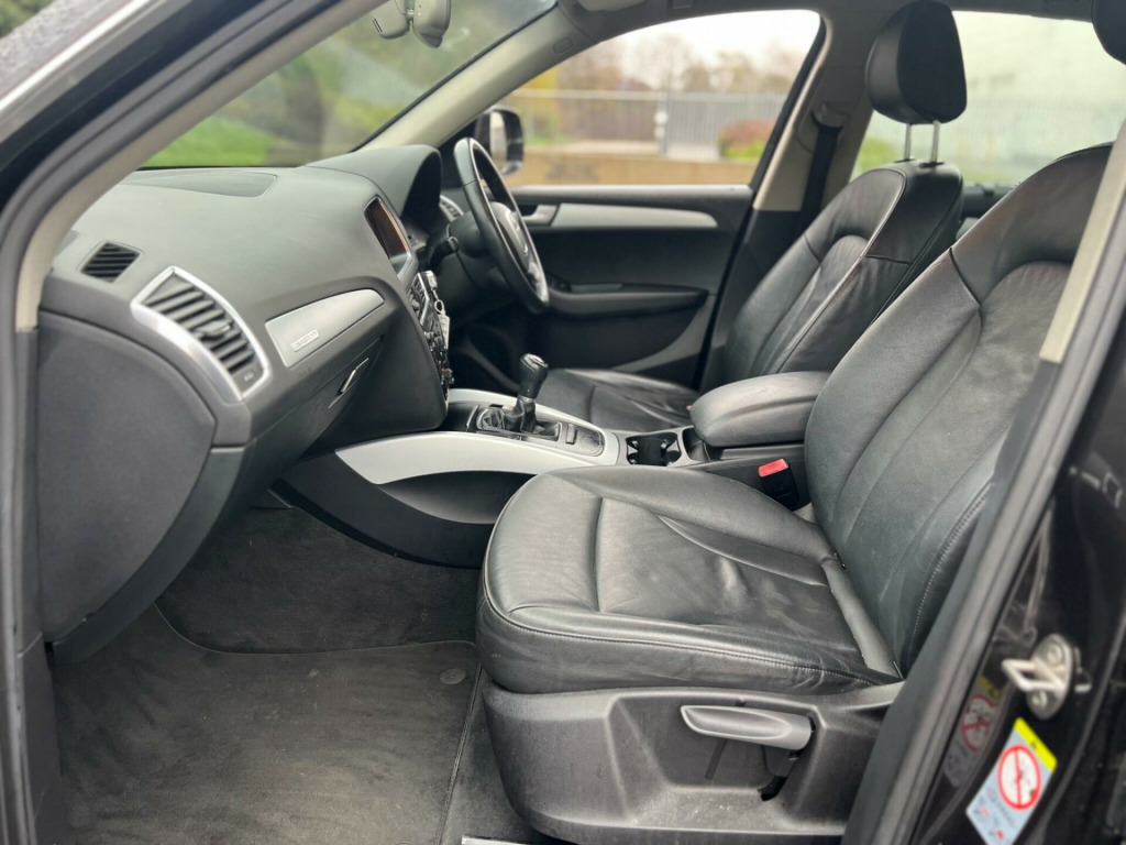 Audi Q5 2.0 TDI [143] Quattro SE 5dr [Start Stop] Manual Diesel 2.0L Estate. Only 118521 warranted miles on the clock. MOT till 30th March 2026. Only 1 previous owners from new. Service History Available: 8 services, 2 Main dealers. Car drives well with no mechanical faults. Full V5 Available. Good spec including: 6 Speed, Air Conditioning, Auto Climate Control, Automatic Lights, Aux In, Bluetooth, Front Parking Sensors, Full Leather Trim, Heated Seats, Radio CD Leather Steering Wheel, Multi-Functional Steering Wheel, CD/DAB Radio/AUX, AC/Climate Control, Electric Windows, Cruise Control, Central Locking and many more. Nationwide Delivery Available. P/X Welcome. HPI Clear. Any questions don't hesitate to contact us on 07443456706. Whatsapp available as well speakers & 6 channel amp, 18in 10spoke v design alloy wheels, 4spoke leather multifunction steering wheel, aluminium roofrails, aluminium inlays, black roofrails, climate control, concert radio & single cd player with mp3 facility, deletion of model & engine designation at rear, electrically adjust & heated door mirrors, engine badge delete, front&rear floor mats, mmi- multi media interface control system, stone grey front grille, tyre mobility system