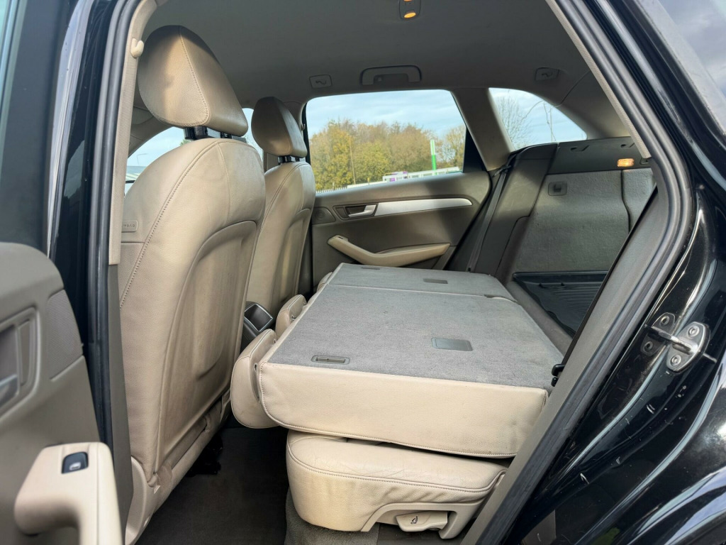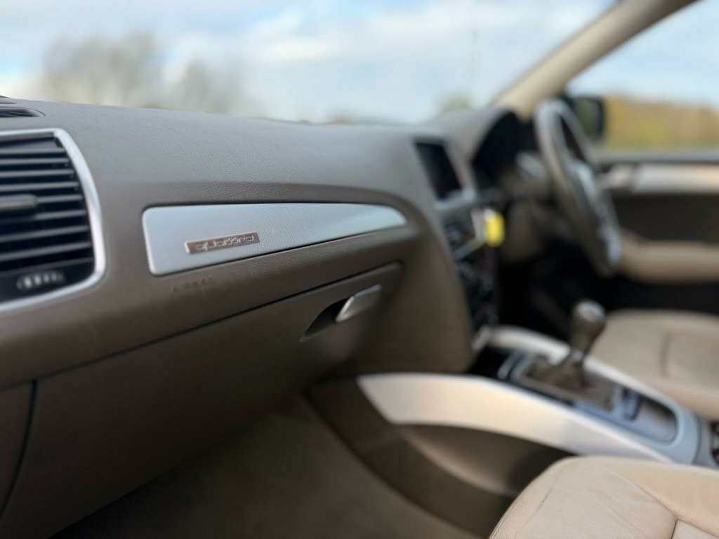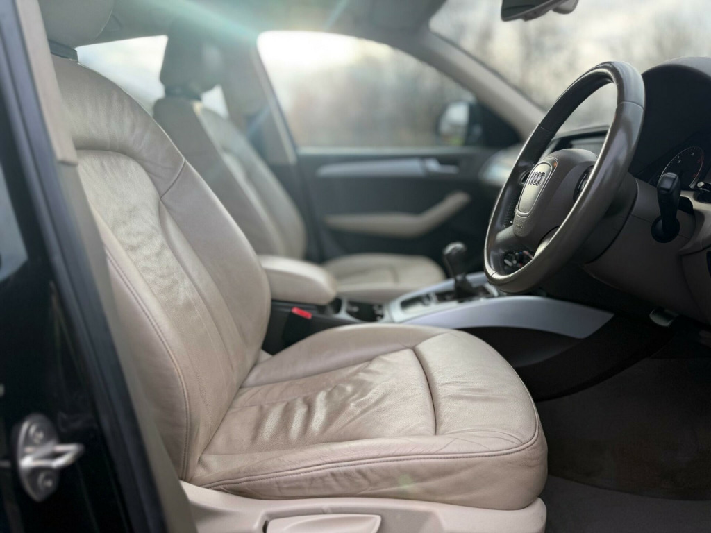 This Audi Q5 TDI SE from 2010 offers exceptional provenance, boasting a single owner and a remarkably low mileage of just 104,000 miles for its age. This well maintained four wheel drive SUV is equipped with a 2.0 litre diesel engine and features climate control for your comfort.The Q5 TDI SE stands out with its impressive fuel economy, achieving 46 miles per gallon, which is better than many similar vehicles. It also benefits from a low insurance group, making it an economical choice to own. Practicality is a key strength, with a large boot space perfect for luggage or shopping, and its low CO2 emissions further contribute to its appeal as a sensible and efficient option.. 10 Speakers & 6 channel amp, 18in 10Spoke V design Alloy Wheels, 4Spoke Leather Multifunction Steering Wheel, Aluminium RoofRails, Aluminium inlays, Black RoofRails, Climate Control, Concert Radio & single CD player with MP3 facility, Deletion of model & engine designation at Rear, Electrically adjust & Heated door mirrors, Engine badge delete, Front&Rear floor mats, MMI- Multi Media Interface Control System, Stone Grey Front grille, Tyre mobility System.