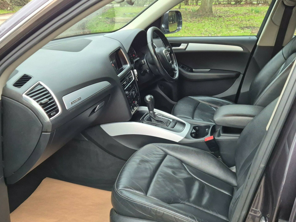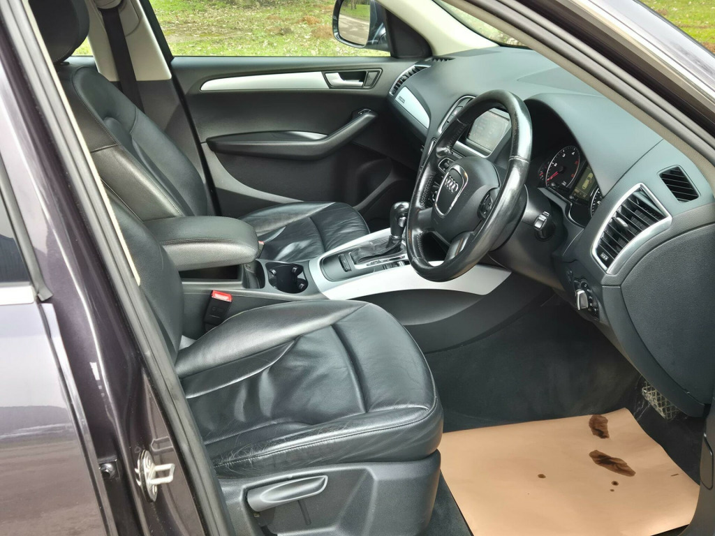 This 2012 Audi Q5 TDI SE presents a compelling proposition with its remarkably low mileage for its age, having covered just 107,011 miles. This four wheel drive SUV is equipped with a capable 2.0 litre diesel engine and benefits from a clear vehicle history check, offering peace of mind. The SE trim level includes desirable features such as 18 inch alloy wheels in a 5 spoke V design, heated front seats for enhanced comfort, and a convenient power operated tailgate.Further enhancing its practicality and appeal, this Audi Q5 boasts a spacious boot, ideal for luggage or shopping. The inclusion of a Rear Bench Seat Plus adds further versatility to the interior layout, while Audi Hill Hold Assist provides an extra layer of security and ease when navigating inclines. These thoughtful features collectively demonstrate how this particular Q5 offers a superior ownership experience compared to other vehicles in its class., v power socket, 18in alloy wheels - 10-spoke-v design, 6.5in display screen, abs - anti-lock braking system, aux-in socket, acoustic windscreen, airbags - driver, airbags - front passenger, airbags - front side, airbags - head system, alarm - thatcham category 1, aluminium roof rails, amplifier - 6 channel, audi sound system, audio sound system, auto-dimming rear-view mirror, body coloured bumpers, break recommendation system, car jack, climate control - electronic 3-zone, collapsible spare wheel, colour drivers information system - dis, concert radio, cruise control, daytime running lights, door mirrors - electrically adjustable and heated, esp - electronic stability programme, electric windows - front and rear, electromechanical parking brake, electromechanical power steering, exhaust tailpipe - chrome trimmed loaf shape - single, first aid kit, front centre armrest, front fog lights, front passenger airbag deactivation switch, front and rear floor mats, halogen headlights, headlights - automatic adjustment, hill descent control, isofix child seat preparation front and rear, inlays - aluminium satellite, light and rain sensor package, mobile telephone preparation - bluetooth interface, radiator grille - highly polished black with vertical chrome struts, rear parking sensors, remote central locking, rest recommendation system, roof bars and storage bag, sdhc card reader, seats - split folding rear - 60-40, spoiler, steering wheel - 4-spoke leather trimmed/multifunction/shift paddles, steering wheel - multi-function, tp memo - automatically saves traffic news, tool kit, warning triangle, window surrounds - aluminium, audi hill hold assist, 18in alloy wheels - 5-spoke v design, heated front seats, power operated tailgate, rear bench seat plus