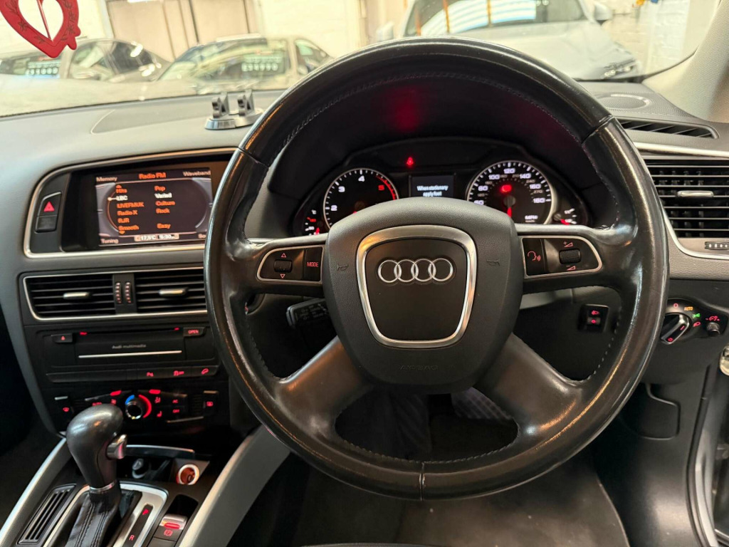 This Audi Q5 TDI SE from 2010 presents an exceptional opportunity with its remarkably low mileage of just 89,000 miles for its age, coupled with a history of only two owners. Powered by a capable 2.0 litre diesel engine and featuring Audi's renowned four wheel drive system, this SE trim model offers a refined driving experience. Inside, you'll find the comfort of climate control, ensuring a pleasant environment regardless of the weather.The Q5 TDI SE stands out due to several key advantages. Its very low mileage and limited ownership suggest it has been well cared for and used sparingly, indicating a potentially longer lifespan and fewer wear related issues compared to similar vehicles. Furthermore, its classification within a low insurance group makes it an economical choice for many drivers. Practicality is also a strong point, with generous boot space making it ideal for families, shopping trips, or weekend getaways. i- multi media interface control system, 18in 10spoke v design alloy wheels, 4spoke leather multifunction steering wheel, aluminium roofrails, aluminium inlays, black roofrails, climate control, concert radio & single cd player with mp3 facility, deletion of model & engine designation at rear, electrically adjust & heated door mirrors, engine badge delete, front&rear floor mats, 10 speakers & 6 channel amp, stone grey front grille, tyre mobility system