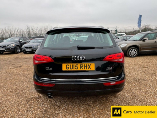 This Audi Q5 TDI SE from 2015 offers excellent peace of mind with its MOT valid until January 2027 and a clear vehicle history check. This Four Wheel Drive model is powered by an efficient 2.0 litre diesel engine and boasts a full service history, ensuring it has been well maintained. Inside, you'll find a host of convenient features including deluxe 3 zone climate control for personalised comfort, a Bluetooth interface for seamless mobile phone connectivity, and rear parking sensors to aid manoeuvring. The SE trim also includes a DAB digital radio for an enhanced audio experience and automatic headlights with a light sensor for added convenience. The inclusion of features such as the light sensor for automatic headlights and rear parking sensors demonstrates a higher level of specification compared to many other vehicles in its class. These additions contribute to a more comfortable and safer driving experience, making this Q5 TDI SE a practical and well equipped choice for everyday use. Mamba Black, Audi Hill Hold Assist, Rear Side Airbags, 12V Power Socket, 18in Alloy Wheels - 5-Arm Star Design, 6.5in Display Screen, ABS - Anti-Lock Braking System, AUX-IN Socket, Acoustic Windscreen, Air Conditioning - Deluxe Automatic at t, Airbags - Driver, Airbags - Front Passenger, Airbags - Front Side, Airbags - Head System, Alarm - Thatcham Category 1, Aluminium Roof Rails, Amplifier - 6 Channel, Anti Theft Locking Wheel Bolts, Audi Sound System, Audio Sound System, Auto-Dimming Rear-View Mirror, Automatic Wipers with Rain Sensor, Body Coloured Bumpers, Car Jack, Colour Drivers Information System - DIS, Concert Radio, Cruise Control, Cup Holders - Centre Console, DAB Digital Radio, D