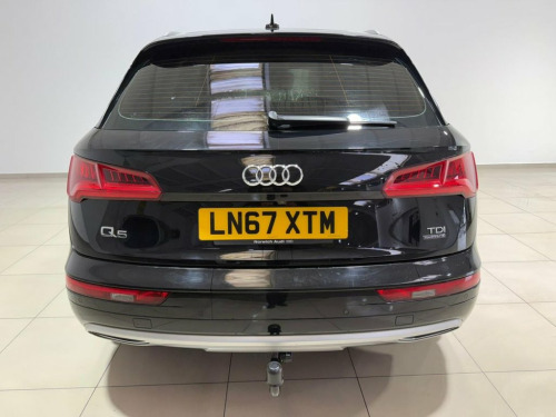 ** TIMING BELT CHANGED 2025 ** NATIONWIDE DELIVERY ** X2 KEYS ** APPLE CARPLAY ** ANDROID AUTO ** HEATED SEATS ** REVERSE CAMERA ** ELECTRIC TAILGATE ** TOWBAR ** SATELLITE NAVIGATION ** COMPREHENSIVE SERVICE HISTORY ** 1 YEAR MOT ADVISORY FREE ** FRESH SERVICE ** 3 MONTH WARRANTY ** 1 YEAR AA BREAKDOWN COVER ** ULEZ COMPLIANT ** This Audi Q5 2.0 TDI Sport quattro S Tronic SUV offers a refined blend of style and capability, featuring 18in 5-arm star design alloy wheels, aluminium roof rails, and Xenon headlights with LED daytime running lights. The high-gloss exterior package, Audi Drive Select, and quattro on-demand all-wheel drive deliver both visual appeal and confident performance in all conditions. Inside, the cabin is finished with aluminium rhombus inlays and LED interior lighting, complemented by front sports seats with heating and deluxe 3-zone climate control. Technology highlights include MMI SD card navigation, Audi Smartphone Interface, Bluetooth, DAB digital radio, and the Audi Sound System, while convenience and safety are enhanced by keyless go, a power-operated tailgate, Audi Parking System Plus, Audi Pre-Sense City, cruise control with speed limiter, and a 40-20-40 split-folding rear seat bench. Rear-View Camera, Mythos Black, Pre-Sense Basic, Parking Assistance Pack, Tow Bar - Folding, 18in Alloy Wheels - 5-Arm Star Design, 2 x SDXC Card Readers, 2 x USB Charging Ports and 1 x AUX-IN, 4-Way Electric Lumbar Support, 6-Airbag System, Air Inlets in Matt Titanium Black with B, Aluminium Roof Rails, Anti Theft Locking Wheel Bolts, Anti-Theft Alarm, Audi Connect Infotainment Services - 3 M, Audi Connect Safety and Service - e-call, Audi Drive Select, Audi Parking System Plus, Audi Pre-Sense City, Audi Smartphone Interface, Audi Sound System, Auto-Dimming Rear-View Mirror, Automatic Headlight Adjustment, Bluetooth Interface, Body Coloured Door Mirrors, CD Drive, Cloth Headlining, Colour D
