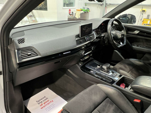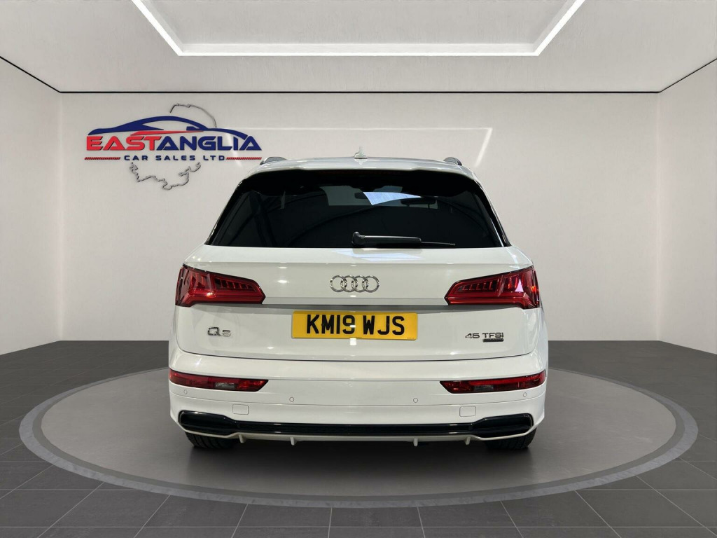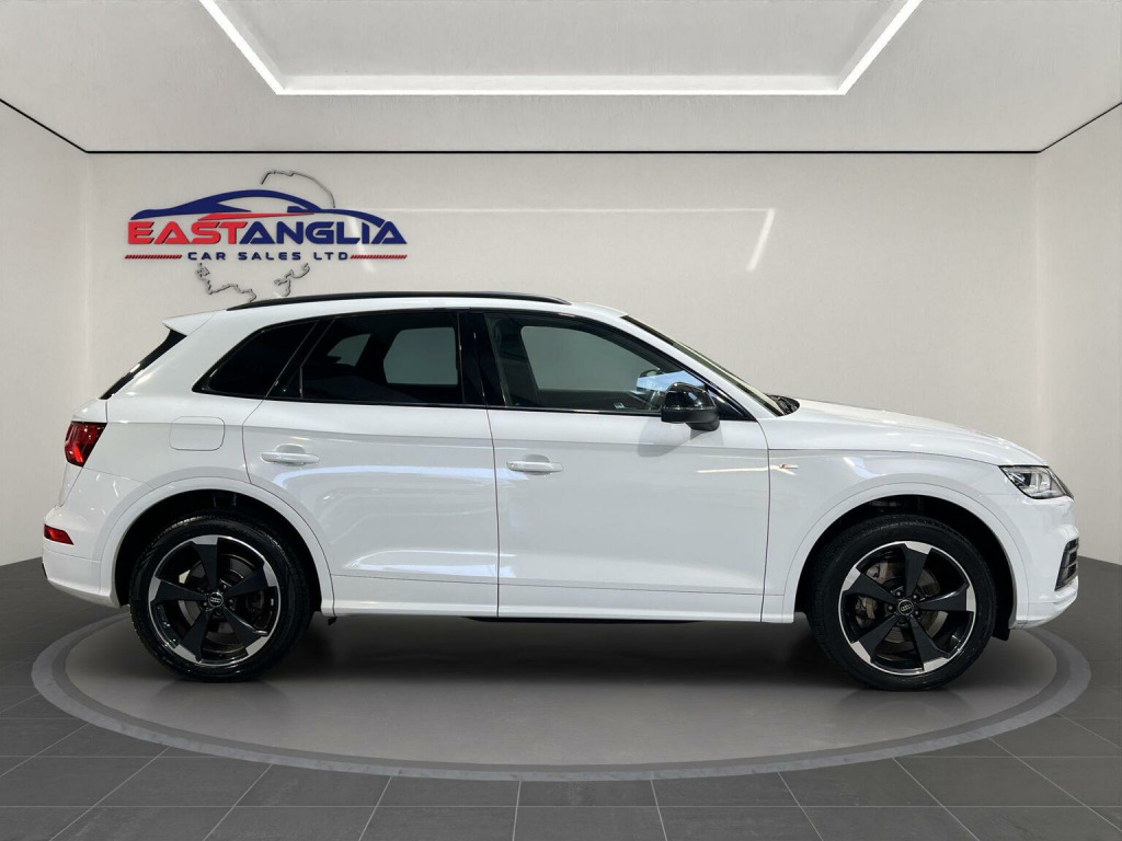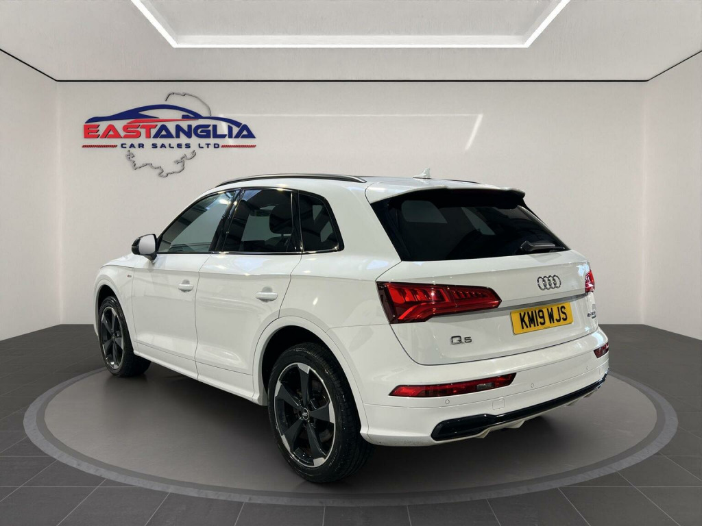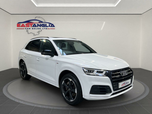 At East Anglia Car Sales we are proud to present this 2019 Audi Q5 TFSI Black Edition boasts a full service history, with its last service completed in December 2025 at 68,746 miles, and an MOT valid until August 2026. This four wheel drive, Euro 6 compliant model features a 2.0 litre petrol engine and offers a substantial towing weight of 2400 kg. The Black Edition trim enhances its appeal, and you can drive with confidence knowing there is a 3 month warranty included. The Q5 TFSI Black Edition offers a compelling driving experience, accelerating from 0-62mph in just 6.4 seconds, demonstrating its performance capabilities. This vehicle is equipped with a range of desirable features that set it apart. The panoramic glass sunroof, which includes an opening function, creates a bright and airy cabin. The technology package adds convenience with wireless phone charging, while Audi Side Assist, including Pre Sense Rear and Blind Spot Assistance, enhances safety. Further safety is provided by rear side airbags, and the door mirrors are folding with auto dimming and memory function. Practicality is also a strong point, with a large boot space perfect for luggage or shopping. Call now to arrange a viewing or book a test drive! , Part exchange is welcome and finance options are available. Any of our vehicles can be secured by a refundable deposit. This is only subject to a refund if the buyer pays the deposit prior to viewing and on viewing is not happy with the sale.