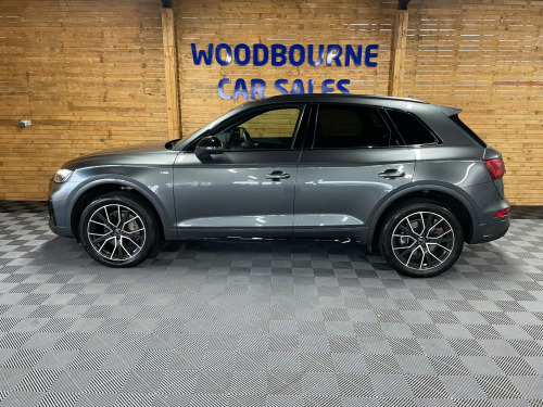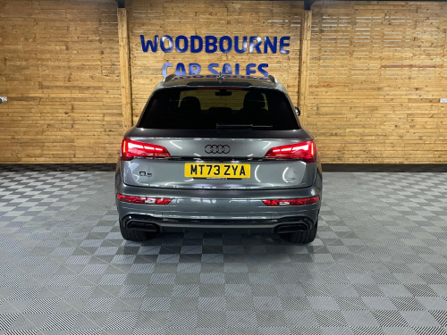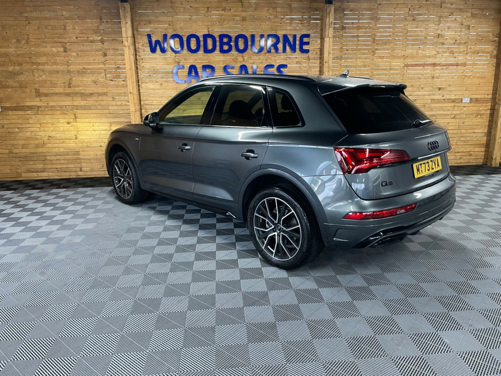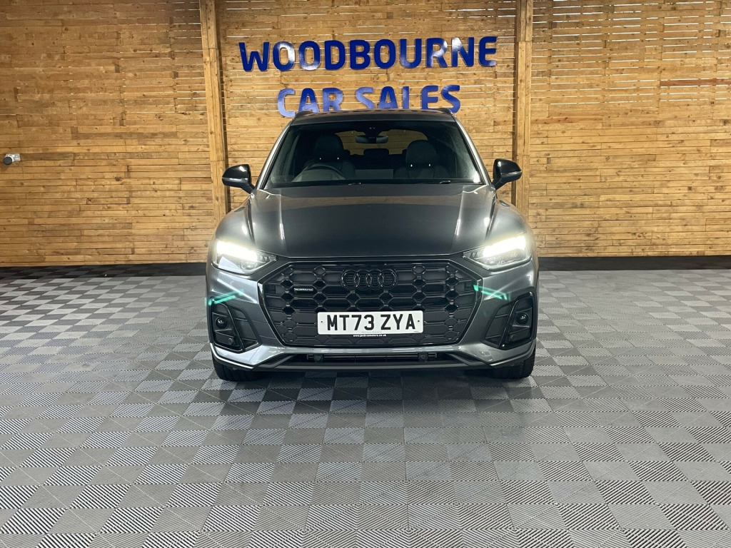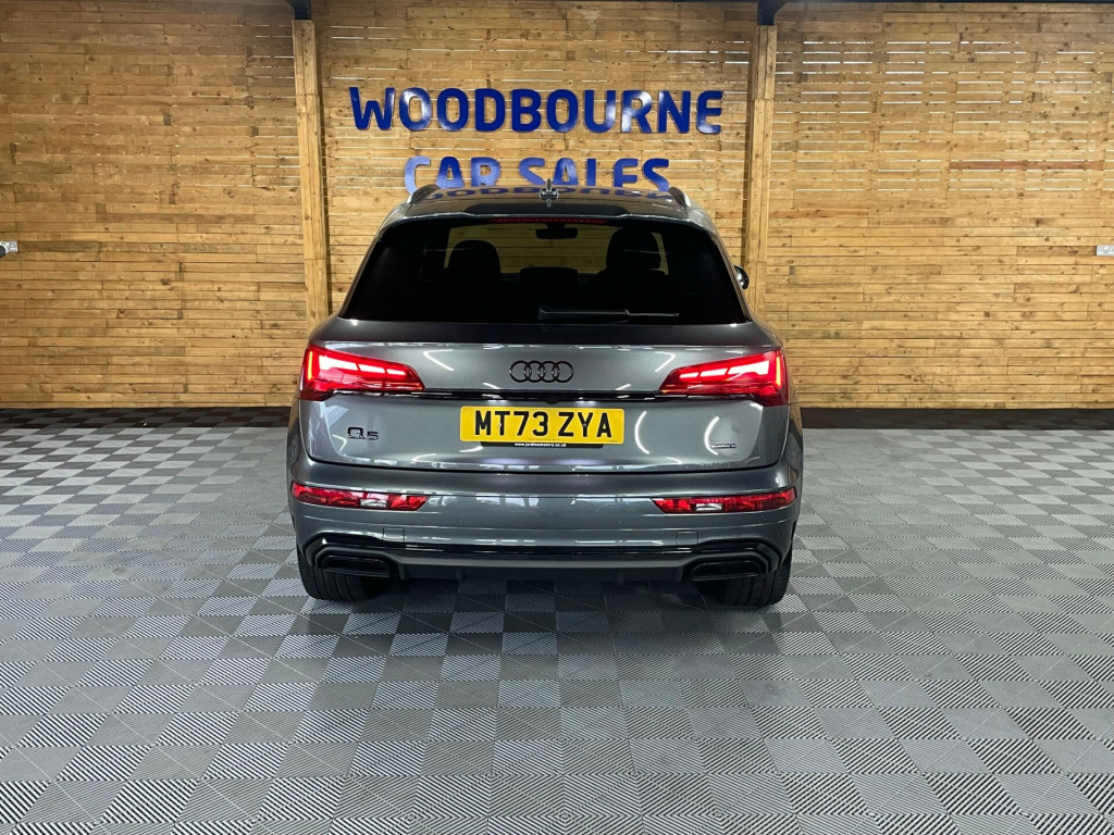 This 2023 British-built Audi Q5 2.0 TFSI 45 Black Edition SUV boasts only 17000 miles on the clock and is powered by a reliable petrol engine. With 5 doors and 5 seats, this SUV offers ample space for both passengers and cargo. Not only is it ULEZ compliant, but it also comes equipped with modern features such as 2 USB charging ports, Audi Connect Navigation and Infotainment services plus a 3-year trial, Audi Connect Safety and Service, and Amazon Alexa integration. The Audi Wireless Smartphone Interface allows for seamless connectivity on the go. All of our vehicles go through a detailed mechanical and safety inspection and are fully serviced with a 12 month MOT with no advisories prior to collection., di wireless smartphone interface, mmi navigation plus with 10.1in touchscreen, black roof rails, black styling package, chrome-plated exhaust trim, hill descent control, hill hold assist, heated front seats, split folding 3 seater - rear seat bench in 3 parts - 40-20-40 with rear centre armrest, front and rear parking sensor with acoustic warning, reversing camera, automatic headlight and windscreen wiper activation, led headlights with led tail lights, apple/android car play