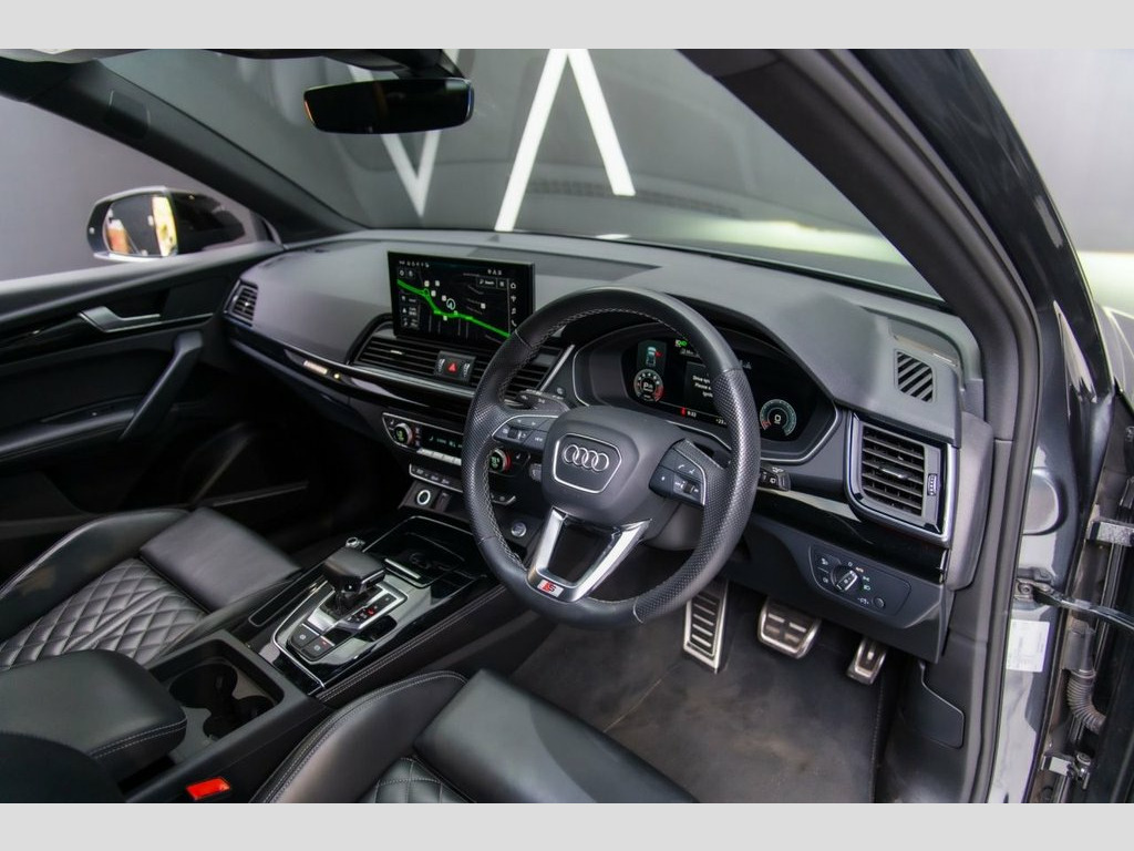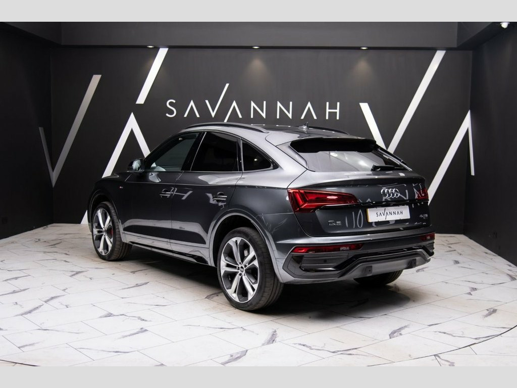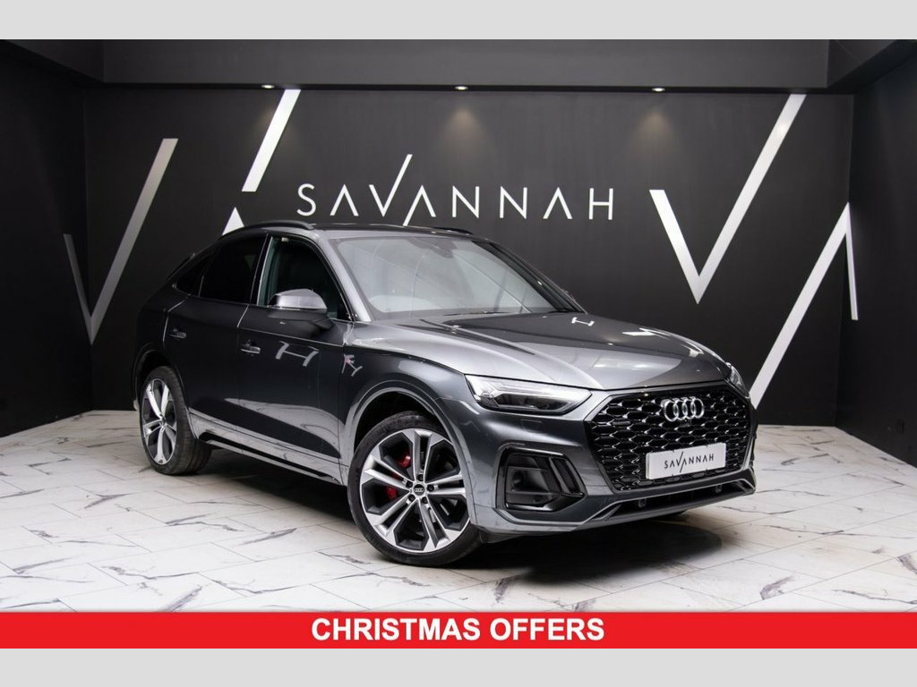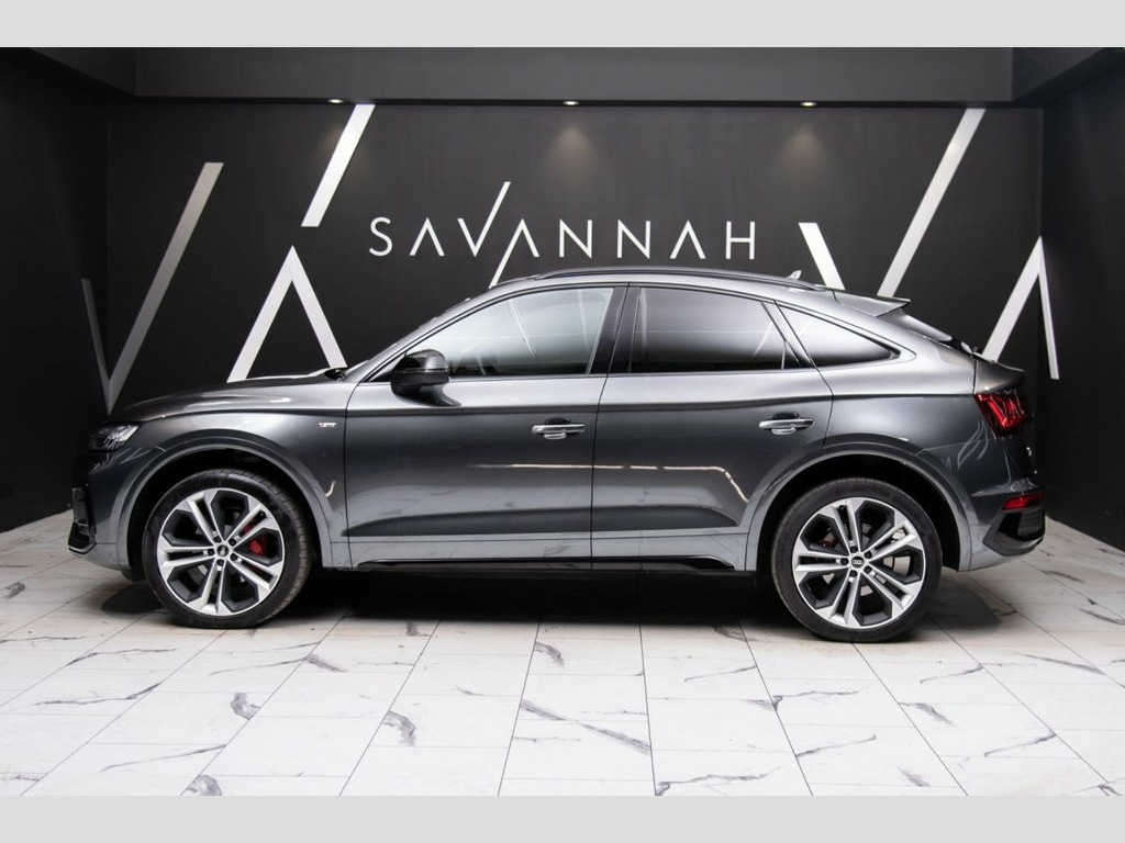 AUDI Q5 2.0 TFSI 45 Edition 1 Sportback 5dr Petrol S Tronic quattro Euro 6 (s/s) (265 ps) — This striking Edition 1 Sportback, presented in Daytona Grey with a contrasting Manhattan Grey lower bumper and black styling package, embodies Audi's hallmark of understated sportiness and premium design. Riding on 21-inch Audi Sport matt grey alloy wheels and featuring Matrix LED headlights with dynamic indicators, privacy glass, and S line detailing throughout, its coupé-inspired silhouette stands out with purpose. The driver-centric cabin exudes sophistication, with piano black inlays, black artificial leather accents, illuminated S logo door sills, and an extended multi-colour LED lighting pack. Technological prowess is showcased with the Audi Virtual Cockpit Plus, MMI Navigation Plus with 10.1-inch touchscreen, Amazon Alexa integration, wireless smartphone interface, and a suite of safety and assistance systems including Audi Pre-Sense City, reversing camera, cruise control with speed limiter, and hill descent control. Comfort is paramount thanks to electrically adjustable heated front sports seats with lumbar support, deluxe three-zone climate control, keyless go, and a power-operated tailgate. With its quattro all-wheel drive on demand, S line sports suspension, and Audi Drive Select, the Q5 Edition 1 combines versatility and dynamism in a seamless, elegant package. 21in Alloy Wheels - 8.5J 5-Twin Spoke - , Comfort and Sound Package, Tour Pack, Daytona Grey, 2 USB Charging Ports -1 x USB-A and 1 x , 4-Way Electric Lumbar Support, 6-Airbag System, Air Vents - Inserts and Centre Console i, Anti Theft Locking Wheel Bolts, Anti-Theft Alarm, Artificial Leather Pack, Audi Connect Navigation and Infotainment, Audi Connect Safety and Service, Audi Connect with Amazon Alexa Integrati, Audi Drive Select, Audi Pre-Sense City, Audi Virtual Cockpit Plus - 12.3in Scree, Audi Wireless Smartphone Interface, Auto Dimming and Frameless Rear View Mir, Automatic Headlight Adjustment, Automatic Headlight and Windscreen Wiper, Automatic Start-Stop with Coasting Funct, Black