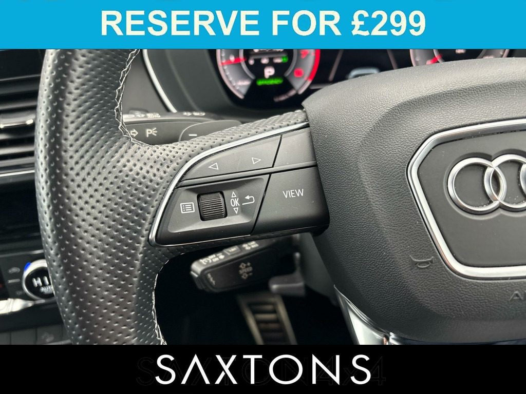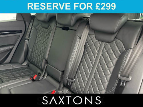 . 2 USB Charging Ports -1 x USB-A and 1 x USB-C Port, 4-Way Electric Lumbar Support, 6-Airbag System, Air Vents - Inserts and Centre Console in Gloss Black, Anti Theft Locking Wheel Bolts, Anti-Theft Alarm, Artificial Leather Pack, Audi Beam with Audi Rings Logo, Audi Connect Navigation and Infotainment Services Plus - 3 Year Trial, Audi Connect Safety and Service, Audi Connect with Amazon Alexa Integration, Audi Drive Select, Audi Pre-Sense City, Audi Rings at Front and Rear in Black, Audi Rings Decal on Rear Doors, Audi Virtual Cockpit Plus - 12.3in Screen and Three Different Layout Designs, Auto Dimming and Frameless Rear View Mirror, Auto-Dimming Rear-View Mirror, Automatic Headlight Adjustment, Automatic Headlight and Windscreen Wiper Activation, Automatic Start-Stop with Coasting Functionality and Efficiency Programme, Black Door Mirrors, Black Roof Rails, Black Styling Package, Bluetooth Interface, Chrome-Plated Exhaust Trim, Cloth Headlining in Black, Comfort Front Centre Armrest - Height Adjustability and Slide Function, Contrast Stitching on Seats - Steering Wheel and Gear Lever Gaiter, Cruise Control System with Speed Limiter, DAB Digital Radio, Deluxe 3-Zone Electronic Climate Control, Door Mirrors - Electrically Folding and Heated and Auto Dimming, Door Side Sills in Carbon, Electric Child Locks for Rear Doors, Electric Windows - Front, Electrically Adjustable Front Seats, Electromechanical Parking Brake, Electromechanical Power Steering, ESC - Electronic Stabilisation Control inc ABS - ASR and EDL, Extended Interior Upholstery Pack, Extended LED Interior Lighting Package - Multi-Coloured, First Aid Kit and Warning Triangle, First Aid Kit and Warning Triangle and Safety Vests, Front Air Inlet Surrounds in Aluminium, Front and Rear Brake Calipers - Painted Red, Front and Rear Floor Mats, Front and Rear Parking Sensor with Acoustic Warning, Gear Lever in Black Leather, Headlight Washers, Heated Front Seats, High Gloss Package, Hill Descent Control, Hill Hold Assist, Illuminated Door Sill Trims with S Logo, Illuminated Door Sill Trims with S Logo - Front, Inlays - Piano Finish - Black, ISOFIX Child Seat Mounting and Top Tether, ISOFIX Child Seat Mounting for Front Passenger and Outer Rear Seats - including Top Tether Attachment for the Outer Rear Seats, Keyless Go, LED Interior Lighting Pack, Lower Bumper Painted in Contrast Manhattan Grey, Matrix LED Headlights with Dynamic Front and Rear Indicators, MMI Navigation Plus with 10.1in Touchscreen, Multi Collision Brake Assist, Pedals in Stainless Steel, Pop-Up Bonnet for Pedestrian Protection, Power Operated Tailgate, quattro On Demand, Rear Bench Seat Plus, Rear Chrome Trim Strips Below Lights, Removable Luggage Compartment Floor, Reversing Camera, Roof Bars, S Line Front and Rear Bumpers, S line Rear Spoiler, S Line Side Skirts, S Line Sports Suspension, Seat Belt Monitoring, Speakers x8, Split Folding 3 Seater - Rear Seat Bench in 3 Parts - 40-20-40 with Rear Centre Armrest, Steering Wheel - Gear Shift Paddles, Sun Visors - with Vanity Mirror, Tool Kit, Trunk Roller Cover, Tyre Pressure Warning Light, Tyre Repair Kit, Underbody Protection in Body Colour, Voice Control System with Audi Hotword Activation - Hey Audi, Windscreen with Acoustic Glass, Without Model and Engine Badge at Rear, Amazon Alexa Integration, Audi Wireless Smartphone Interface, Flat-Bottomed 3-Spoke Leather High Multi-Function Steering Wheel, Privacy Glass - Rear and Rear-Side Windows, Audi Virtual Cockpit, Fine Nappa Leather - Black with Rock Grey Stitching, 21in Alloy Wheels - 8.5J 5-Twin Spoke - Module Design with Inlays in Matt Grey - Audi Sport, Amazon Alexa Integration, Audi Wireless Smartphone Interface, Flat-Bottomed 3-Spoke Leather High Multi-Function Steering Wheel, Privacy Glass - Rear and Rear-Side Windows.