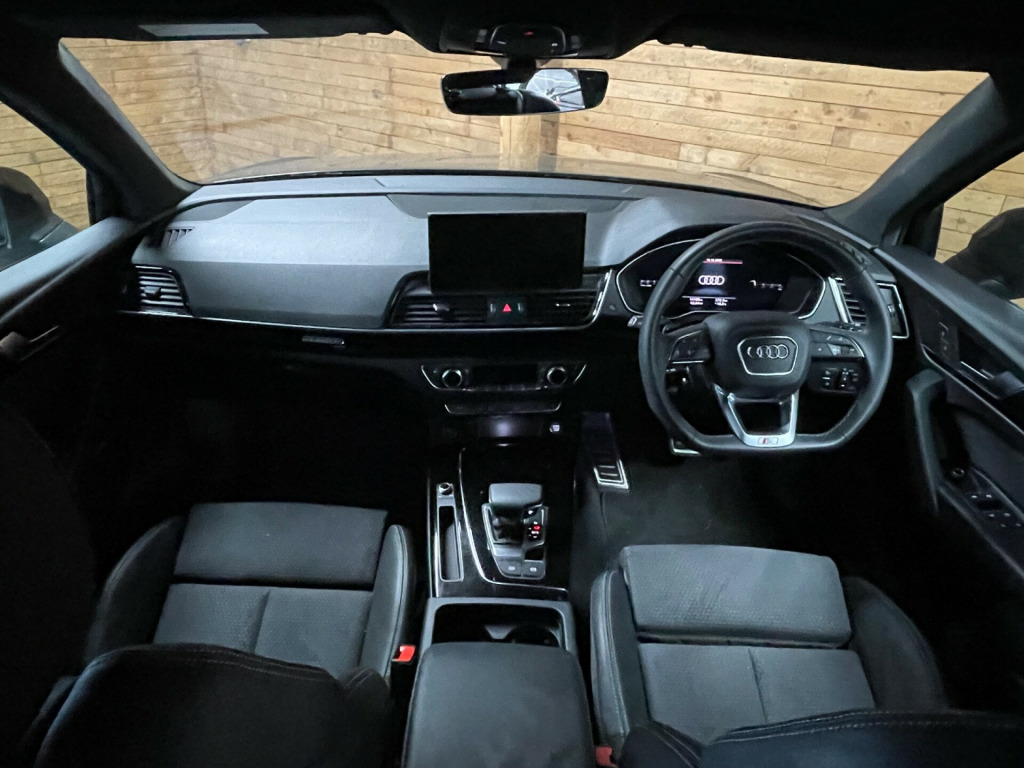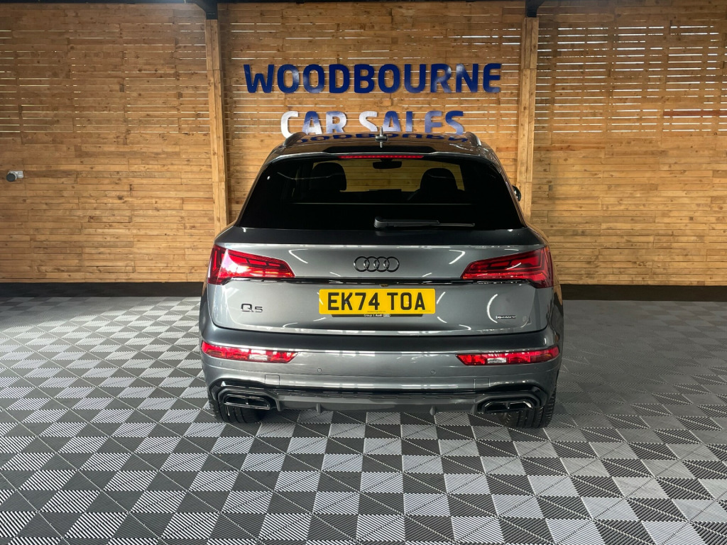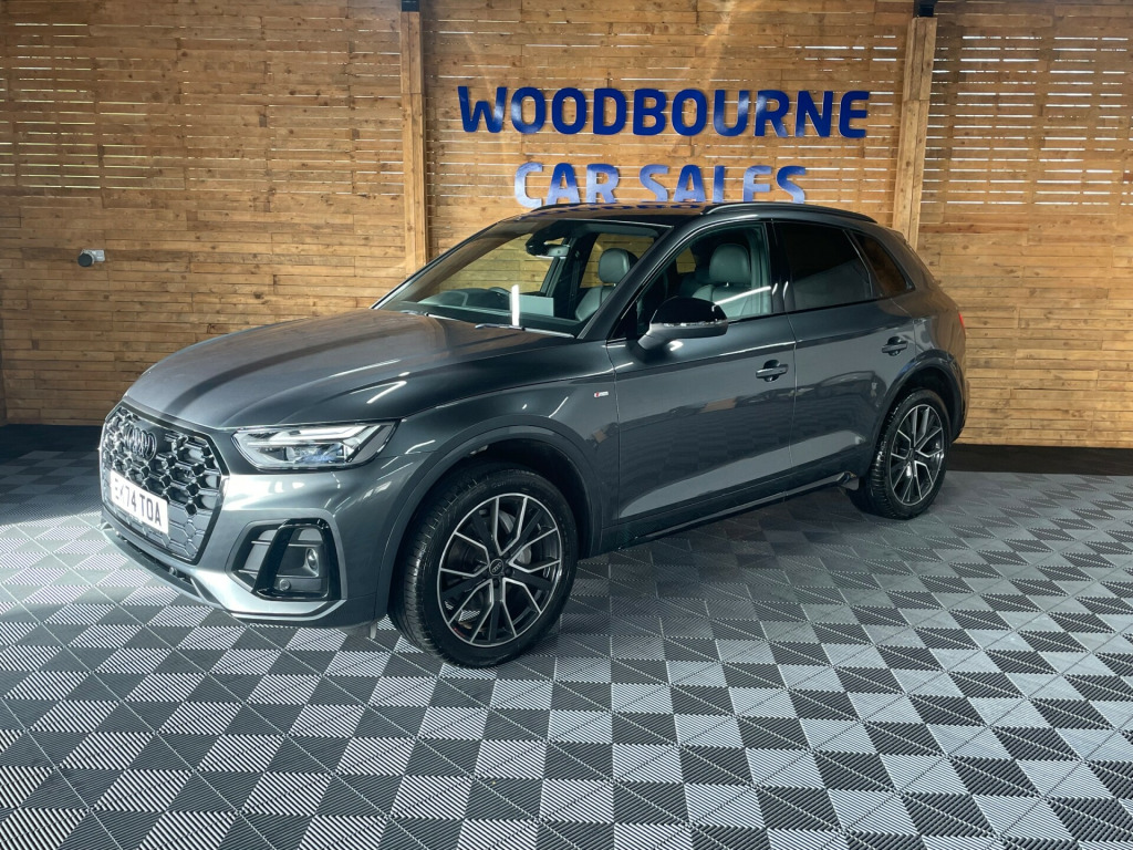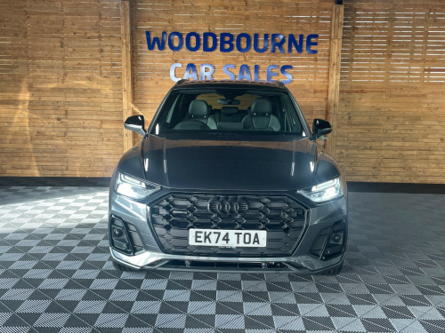 This 2024 Audi Q5 2.0 TFSI 45 S-Line Black Edition SUV has only 9500 miles on the clock and is powered by a petrol engine. This SUV is ULEZ compliant, ensuring it meets the required emissions standards for urban driving. The vehicle comes with modern technology Audi Connect Navigation and Infotainment Services Plus with a 3-year trial, Audi Connect Safety and Service, and Audi Connect with Amazon Alexa Integration. Additionally, it features Audi Wireless Smartphone Interface, keeping you connected and entertained on the go. This stylish and powerful SUV is the perfect choice for those seeking a comfortable and tech-savvy ride. All of our vehicles go through a detailed mechanical and safety inspection and are fully serviced with a 12 month MOT with no advisories prior to collection., eakers x8, 20in alloy wheels - 5-v-spoke star design - anthracite black - audi sport - gloss turned finish, black roof rails, privacy glass - rear and rear-side windows, hill descent control, hill hold assist, audi virtual cockpit plus - 12.3in screen and three different layout designs, heated front seats, front and rear parking sensor with acoustic warning, reversing camera