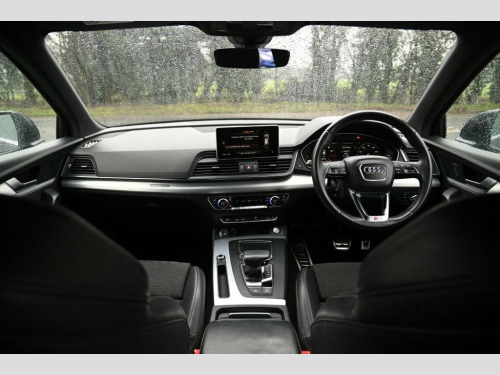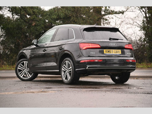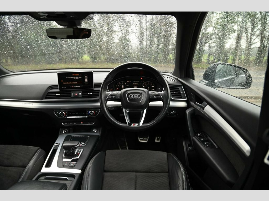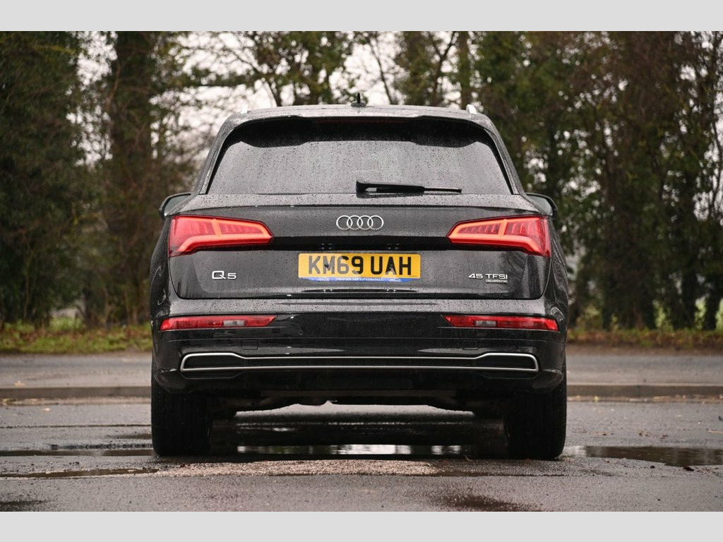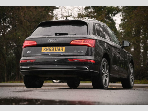 Prestige Car Supermarket in York presents this 2019 Audi Q5 2.0 TFSI 45 S line quattro, finished in Mythos Black metallic with black Leather-Alcantara upholstery highlighted by Rock Grey stitching. Producing 245 ps through a smooth S Tronic automatic gearbox and Audi's quattro on-demand all-wheel drive system, this Q5 delivers confident performance in all conditions. The S line specification gives the car a strong, sporting presence with S line front and rear bumpers, side skirts, roof spoiler, aluminium roof rails and striking 20in 5-segment-spoke alloy wheels, complemented by LED headlights with dynamic rear indicators. Inside, the cabin features S embossed sports seats, a high-quality black headlining, stainless steel pedals, brushed aluminium inlays and illuminated S line door sills. Technology and comfort are well catered for with MMI Navigation, Audi Smartphone Interface, DAB digital radio, Bluetooth connectivity, voice control, three-zone deluxe climate control, heated front seats, keyless go and Audi Drive Select. Practical features include a power operated tailgate, 40-20-40 split folding rear seats, privacy glass, parking system plus and acoustic glass for enhanced refinement. Safety is supported by Audi pre-sense city, multi-collision brake assist, hill hold and descent control, cruise control with speed limiter and a full suite of airbags, making this Q5 a highly capable and premium family SUV. Leather-Alcantara - Black with Rock Grey, Mythos Black, 20in Alloy Wheels - 5-Segment-Spoke Desi, 2 x SDXC Card Readers, 2 x USB Charging Ports and 1 x AUX-IN, 4-Way Electric Lumbar Support, 6-Airbag System, Air Inlets in Matt Titanium Black with B, Aluminium Roof Rails, Anti Theft Locking Wheel Bolts, Anti-Theft Alarm, Audi Connect Safety and Service - e-call, Audi Drive Select, Audi Parking System Plus, Audi Pre-Sense City, Audi Smartphone Interface, Auto-Dimming Rear-View Mirror, Automatic Headlight Adjustment, Bluetooth Interface, Body Coloured Door Mirrors, CD Drive, Chrome-Plated Exhaust Trim, Cloth Headlining in Black, Colour Drivers Information System with 7, Contrast Stitching on Se
