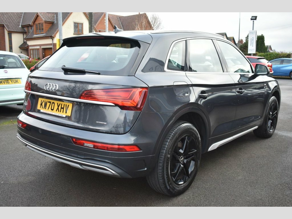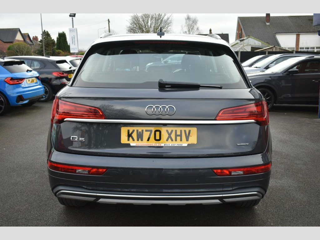 This 2020 Audi Q5 TFSI Sport boasts a clear vehicle history, offering you peace of mind. This four wheel drive model features a 2.0 litre petrol engine, meeting Euro 6 emissions standards. Inside, you'll find comfort with heated front seats and the convenience of a Bluetooth interface. Manoeuvring is made easier with a reversing camera and front and rear parking sensors that provide acoustic warnings. Enjoy a comfortable cabin environment thanks to the Deluxe 3-Zone Electronic Climate Control. The Audi Q5 TFSI Sport offers impressive performance, accelerating from 0-60mph in just 6.1 seconds, demonstrating its dynamic capability. This acceleration figure highlights how this vehicle offers a more engaging driving experience compared to many others in its class. Furthermore, the generous boot space provides ample room for luggage or shopping, making it a practical choice for everyday life and longer journeys. With a towing weight of 2400 kg, this Q5 is also well equipped for towing. 18in Alloy Wheels - 8J 5-Twin-Spoke - Dy, 2 USB Charging Ports -1 x USB-A and 1 x , 3-Spoke Multi-Function Leather Steering , 6-Airbag System, Air Inlets in Matt Titanium Black with B, Aluminium Roof Rails, Amazon Alexa Integration, Anti Theft Locking Wheel Bolts, Anti-Theft Alarm, Audi Connect Navigation and Infotainment, Audi Connect Safety and Service, Audi Drive Select, Audi Pre-Sense City, Audi Virtual Cockpit Plus - 12.3in Scree, Audi Wireless Smartphone Interface, Auto-Dimming Rear-View Mirror, Automatic Headlight Adjustment, Automatic Headlight and Windscreen Wiper, Automatic Start-Stop with Coasting Funct, Bluetooth Interface, Body Coloured Door Mirrors, Chrome-Plated Exhaust Trim,
