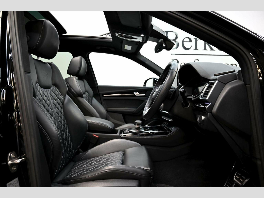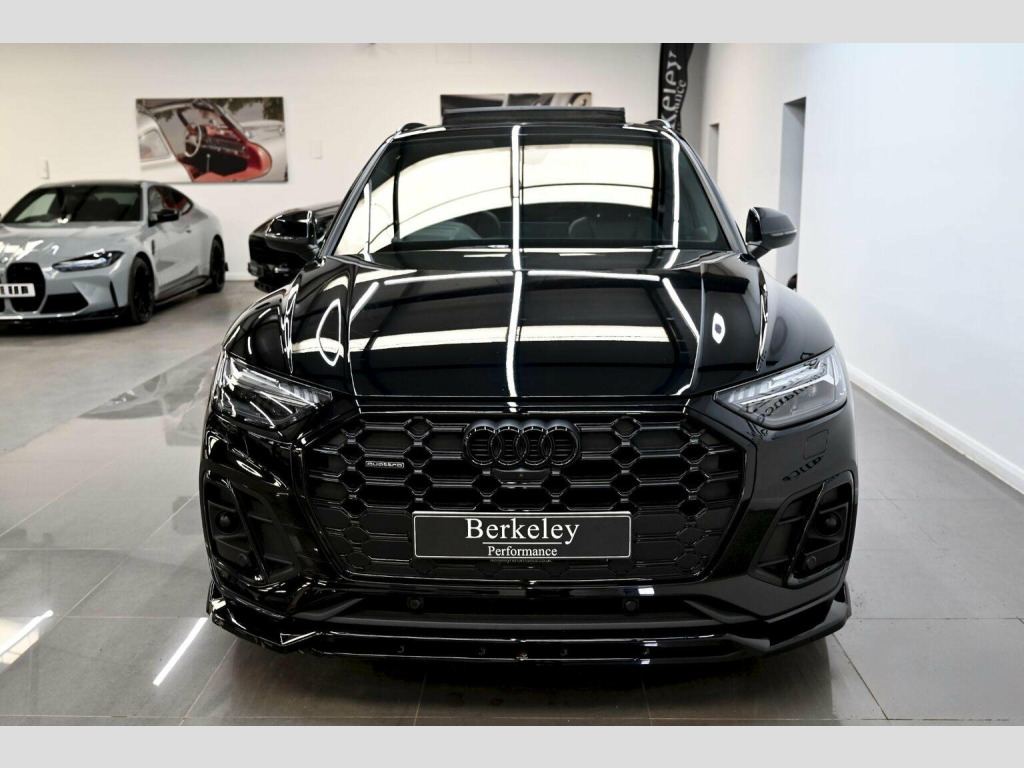 We are pleased to present this stunning Audi Q5 2.0 TFSI 45 Vorsprung finished in Mythos Black Metallic with Black Leather interior. This particular example benefits from a full Audi service history and Audi manufacturer warranty till 11/04/2026. The car also benefits from an exterior Maxton Design Styling kit finished in High Gloss Black. This example being the Vorsprung model comes loaded with a host of features including:, Glass Panoramic sunroof, Bang & Olufsen sound system, 21in Alloy Wheels - 8.5J 5-Twin Spoke - Module Design with Inlays in Matt Grey - Audi Sport, Head up display, Ambient Lighting, Heated front and rear seats, Massage Function for Front Seats with Lumbar Support, Adaptive Air suspension, Front and Rear Parking sensors with surround cameras, Adaptive Cruise Control With Distance Control , 360 Degree Camera, Electrically Adjustable Front Seats with Memory Function for Drivers Side, Apple/Android car play and much more. This vehicle has Audi Manufacturers warranty till 10/04/2026. Finance available from 7.9%apr subject to status, All viewings by appointment only, Visit www.berkeleyperofrmance.co.uk for further details.