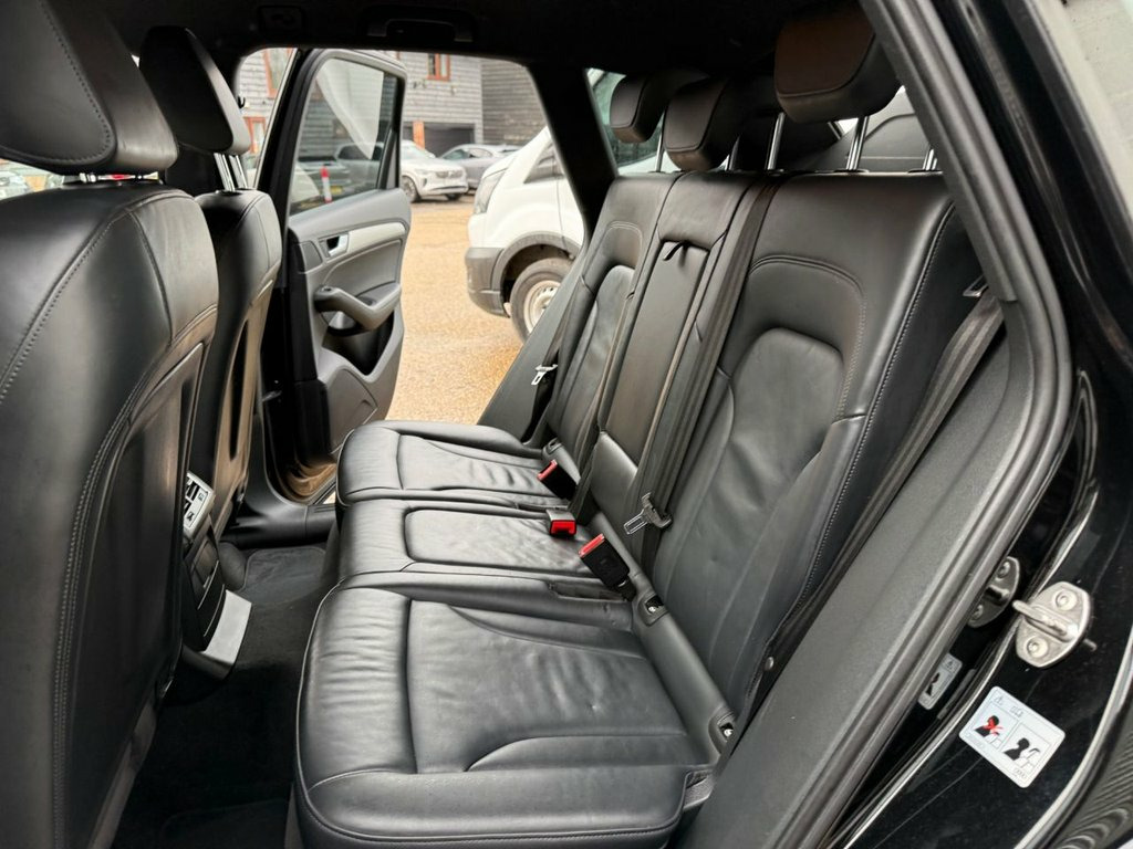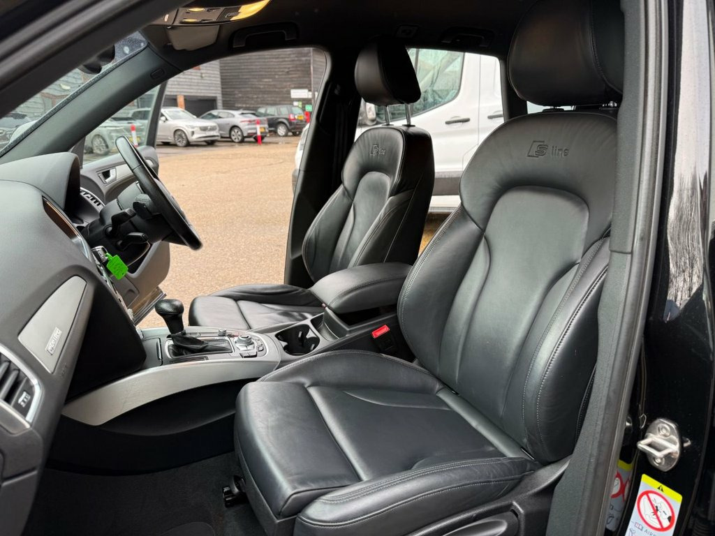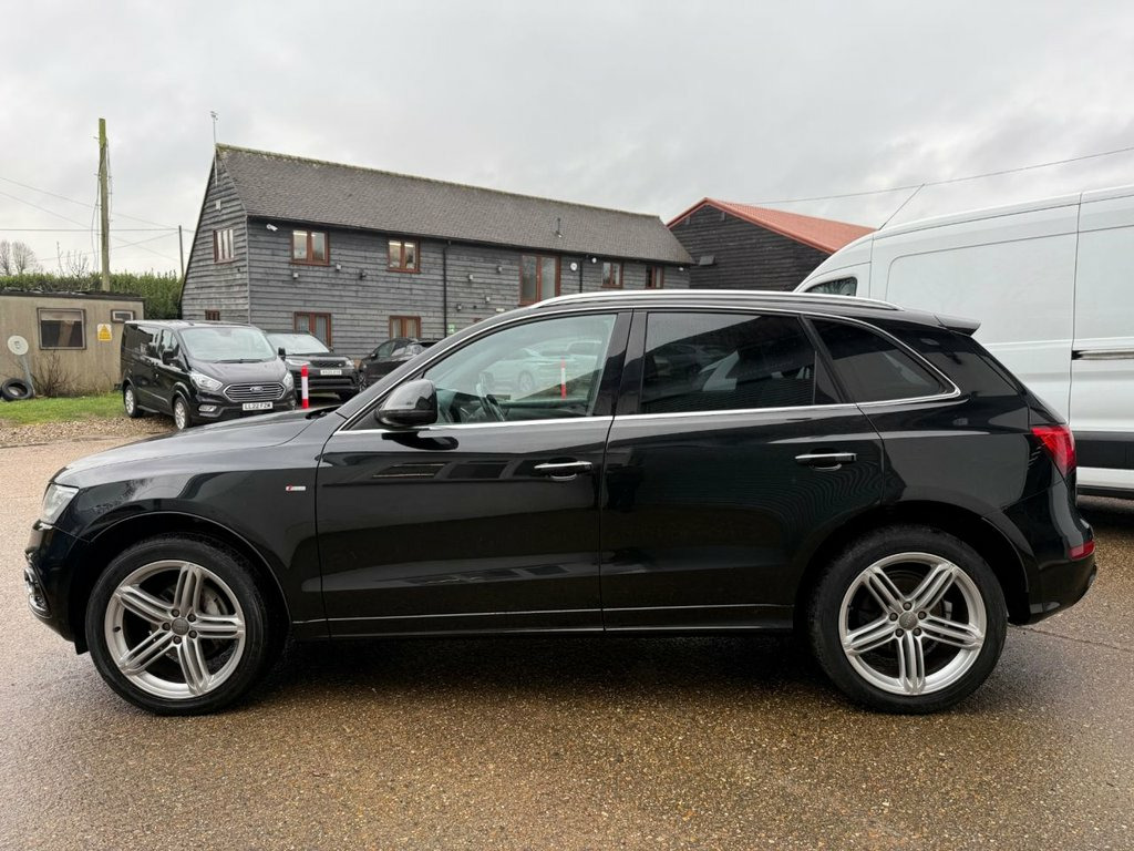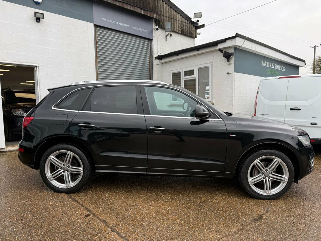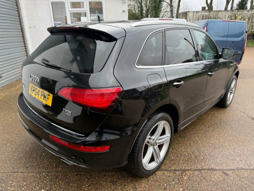 AUTOTRADER award winners for Customer experience 2025 please see over 600 five star reviews from our customers we offer a load deposit flexible finance plans from 9.9% APR This 2014 Audi Q5 TFSI S line Plus boasts exceptionally low mileage for its age, having covered just 58,500 miles, we took in part exchange for another Audi SQ5. This premium SUV features a powerful 2.0 litre petrol engine paired with a four wheel drive system, ensuring confident handling in all conditions. As a Euro 6 emission class vehicle, it meets modern environmental standards. The S line Plus trim enhances its sporty appeal, and notable features include stylish chrome trimmed exhaust pipes with a flat bottom design, deluxe three zone climate control for passenger comfort, and a Bluetooth interface for seamless mobile phone connectivity. For enhanced visibility and convenience, it is equipped with Xenon headlights that automatically activate via a light sensor. The performance of this Q5 is a key highlight, with an impressive 0-60mph acceleration time of just 6.7 seconds, demonstrating its dynamic capabilities. This swift acceleration indicates a superior driving experience compared to many other vehicles in its class. Furthermore, the MOT is valid until January 2027, providing excellent peace of mind for the new owner. This Audi Q5 TFSI S line Plus offers a compelling blend of performance, comfort, and advanced features, making it a distinguished choice. Supplied fully serviced with MOT until Januar 12V Power Socket, 20GB Jukebox for Storing and Managing Mu, 20in Alloy Wheels - 5-Segment-Spoke Desi, ABS - Anti-Lock Braking System, AMI - Audi Music Interface, Acoustic Windscreen, Air Conditioning - Deluxe Automatic at t, Airbags - Driver, Airbags - Front Passenger, Airbags - Front Side, Alarm - Thatcham Category 1, Aluminium Roof Rails, Amplifier - 180 Watt, Amplifier - 6 Channel, Anti Theft Locking Wheel Bolts, Audi Parking System Plus, Audi Sound System, Auto-Dimming Rear-View Mirror, Automatic Headlight Range Adjustment, Automatic Wipers with Rain Sensor, Body Coloured Bumpers, Bumpers - S line Front, Car Jack, Chrome Tailgate Strip, Cloth Headlining in Black, Colour Drivers Informati