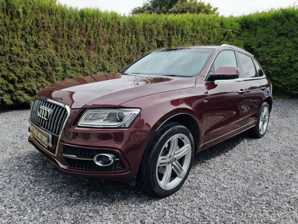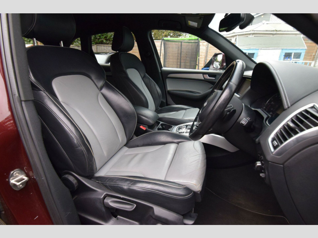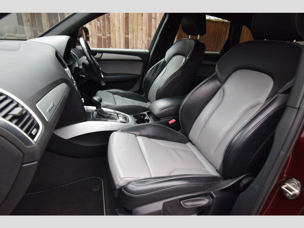 2015/15Audi Q5 2.0 TFSI S line Plus SUV 5dr Petrol Tiptronic quattro Euro 6, Finished In Rare Burgundy Pearl effect With 2 Tone Leather, Contrast White Stitching.Uk Supplied vehicle, Euro 6/Ulez Compliant. Full Service History, 1 OWNER FROM NEW. 2 Remote KeysNext M.O.T Due 26 July 2026Spec Includes - Full leather, Parking Sensors, Cruise Control, Sat Nav. Bluetooth, Power Steering, Electric Tailgate. DAB Digital Radio, Xenon Headlights, Power Fold Mirrors, Privacy Glass, CD Player, Remote Central Locking, Electric Windows, Electric Windows, Power Steering, 2 Remote Keys.Hpi clear, Part exchange welcome, finance, warrantyViewing by appointment only, Nationwide Delivery Available., line sports suspension, fine nappa leather - s line sports seats - black, inlays - aluminium - beaufort, storage package, audi exclusive leather package 2 - fine nappa leather with sports seats - alabaster white, 20in alloy wheels - 5-segment design titanium optic finish, door mirrors - heated-electrically adjustable-folding, audi hill hold assist, mobile telephone preparation - high with audi connect, technology package - advanced, audi parking system advanced, 12v power socket, 20gb jukebox for storing and managing music files - wma and mp3 format, 20in alloy wheels - 5-segment-spoke design, abs - anti-lock braking system, ami - audi music interface, acoustic windscreen, air conditioning - deluxe automatic at the rear, airbags - driver, airbags - front passenger, airbags - front side, alarm - thatcham category 1, aluminium roof rails, amplifier - 180 watt, amplifier - 6 channel, anti theft locking wheel bolts, audi parking system plus, audi sound system, auto-dimming rear-view mirror, automatic headlight range adjustment, automatic wipers with rain sensor, body coloured bumpers, bumpers - s line front, car jack, chrome tailgate strip, cloth headlining in black, colour drivers information system - dis, concert radio - mp3-cd player, cruise control, cup holders - centre console, dab digital radio, deluxe 3-zone climate control, diffuser - platinum grey, display screen colour - 7in tft high resolution and split screen mode for route information, door handles - chrome, door mirrors - electrically adjustable and heated, door or boot open warning, dynamic route guidance - tmc, ebd - electronic brakeforce distribution, esp - electronic stability programme, electric windows - front and rear, electrically adjustable 4-way lumbar support, electromechanical parking brake, electromechanical power steering, european navigation data, exhaust tailpipe - chrome trimmed - flat-bottom design on both sides, first aid kit, front centre armrest, front fog lights, front passenger airbag deactivation switch, front and rear floor mats, hard drive - 40gb, headlight washers, headlights - coming-leaving home function, headlights - light sensor, headlights - xenon, hill descent control, isofix child seat mounting for front passenger, isofix child seat preparation for rear seats with top tether, inlays - matt brushed aluminium, led daytime running lights, led rear lights, leather package - door armrests, mmi navigation plus, mobile telephone preparation - bluetooth interface, outside temperature display, pollen filter, power operated tailgate, privacy glass, radiator grille - s line with chrome vertical bars, rear parking sensors, rear spoiler - body coloured, remote boot release, remote central locking, rest recommendation system, roof bars and storage bag, s line badges on front wings, s line side skirts, s line rear diffuser, s line sill plates and aluminium loading strip for the boot, sd card reader x2, seats - front height adjustment, seats - front with s line embossing, seats - split folding rear - 60-40, seats - sports, single cd-dvd player, speakers x10, steering column - rake and reach adjustment, steering wheel - gear shift paddles, steering wheel - multi-function, steering wheel - s line 3-spoke leather, styling package - s line exterior, tp memo - automatically saves traffic news, tailgate - lid closing assistance unit, tailgate - programmable angle for the luggage compartment lid, technology package, tool kit and car jack, towing equipment - preparation, traction control, tyre pressure loss indicator, tyre repair kit, warning triangle, window surrounds - aluminium