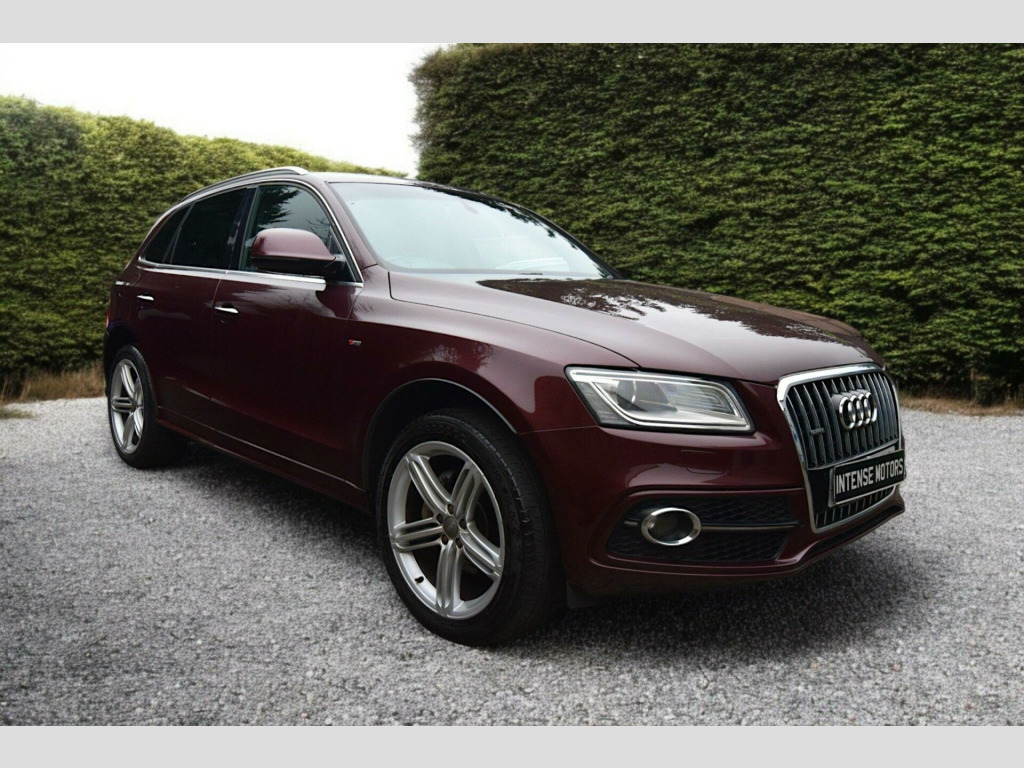 2015/15 Audi Q5 2.0 TFSI S line Plus SUV 5dr Petrol Tiptronic quattro Euro 6, Finished In Rare Burgundy Pearl effect With 2 Tone Leather, Contrast White Stitching.Uk Supplied vehicle, Euro 6/Ulez Compliant. Full Service History, 1 OWNER FROM NEW. 2 Remote KeysNext M.O.T Due 26 July 2026Spec Includes - Full leather, Parking Sensors, Cruise Control, Sat Nav. Bluetooth, Power Steering, Electric Tailgate. DAB Digital Radio, Xenon Headlights, Power Fold Mirrors, Privacy Glass, CD Player, Remote Central Locking, Electric Windows, Electric Windows, Power Steering, 2 Remote Keys.Hpi clear, Part exchange welcome, finance, warrantyViewing by appointment only, Nationwide Delivery Available., v power socket, 20gb jukebox for storing and managing music files - wma and mp3 format, 20in alloy wheels - 5-segment-spoke design, abs - anti-lock braking system, ami - audi music interface, acoustic windscreen, air conditioning - deluxe automatic at the rear, airbags - driver, airbags - front passenger, airbags - front side, alarm - thatcham category 1, aluminium roof rails, amplifier - 180 watt, amplifier - 6 channel, anti theft locking wheel bolts, audi parking system plus, audi sound system, auto-dimming rear-view mirror, automatic headlight range adjustment, automatic wipers with rain sensor, body coloured bumpers, bumpers - s line front, car jack, chrome tailgate strip, cloth headlining in black, colour drivers information system - dis, concert radio - mp3-cd player, cruise control, cup holders - centre console, dab digital radio, deluxe 3-zone climate control, diffuser - platinum grey, display screen colour - 7in tft high resolution and split screen mode for route information, door handles - chrome, door mirrors - electrically adjustable and heated, door or boot open warning, dynamic route guidance - tmc, ebd - electronic brakeforce distribution, esp - electronic stability programme, electric windows - front and rear, electrically adjustable 4-way lumbar support, electromechanical parking brake, electromechanical power steering, european navigation data, exhaust tailpipe - chrome trimmed - flat-bottom design on both sides, first aid kit, front centre armrest, front fog lights, front passenger airbag deactivation switch, front and rear floor mats, hard drive - 40gb, headlight washers, headlights - coming-leaving home function, headlights - light sensor, headlights - xenon, hill descent control, isofix child seat mounting for front passenger, isofix child seat preparation for rear seats with top tether, inlays - matt brushed aluminium, led daytime running lights, led rear lights, leather package - door armrests, mmi navigation plus, mobile telephone preparation - bluetooth interface, outside temperature display, pollen filter, power operated tailgate, privacy glass, radiator grille - s line with chrome vertical bars, rear parking sensors, rear spoiler - body coloured, remote boot release, remote central locking, rest recommendation system, roof bars and storage bag, s line badges on front wings, s line side skirts, s line rear diffuser, s line sill plates and aluminium loading strip for the boot, sd card reader x2, seats - front height adjustment, seats - front with s line embossing, seats - split folding rear - 60-40, seats - sports, single cd-dvd player, speakers x10, steering column - rake and reach adjustment, steering wheel - gear shift paddles, steering wheel - multi-function, steering wheel - s line 3-spoke leather, styling package - s line exterior, tp memo - automatically saves traffic news, tailgate - lid closing assistance unit, tailgate - programmable angle for the luggage compartment lid, technology package, tool kit and car jack, towing equipment - preparation, traction control, tyre pressure loss indicator, tyre repair kit, warning triangle, window surrounds - aluminium, s line sports suspension, inlays - audi exclusive carbon, inlays - aluminium - beaufort, fine nappa leather - s line sports seats - black, 20in alloy wheels - 5-segment design titanium optic finish, mobile telephone preparation - high with audi connect, technology package - advanced, door mirrors - heated-electrically adjustable-folding, audi parking system advanced