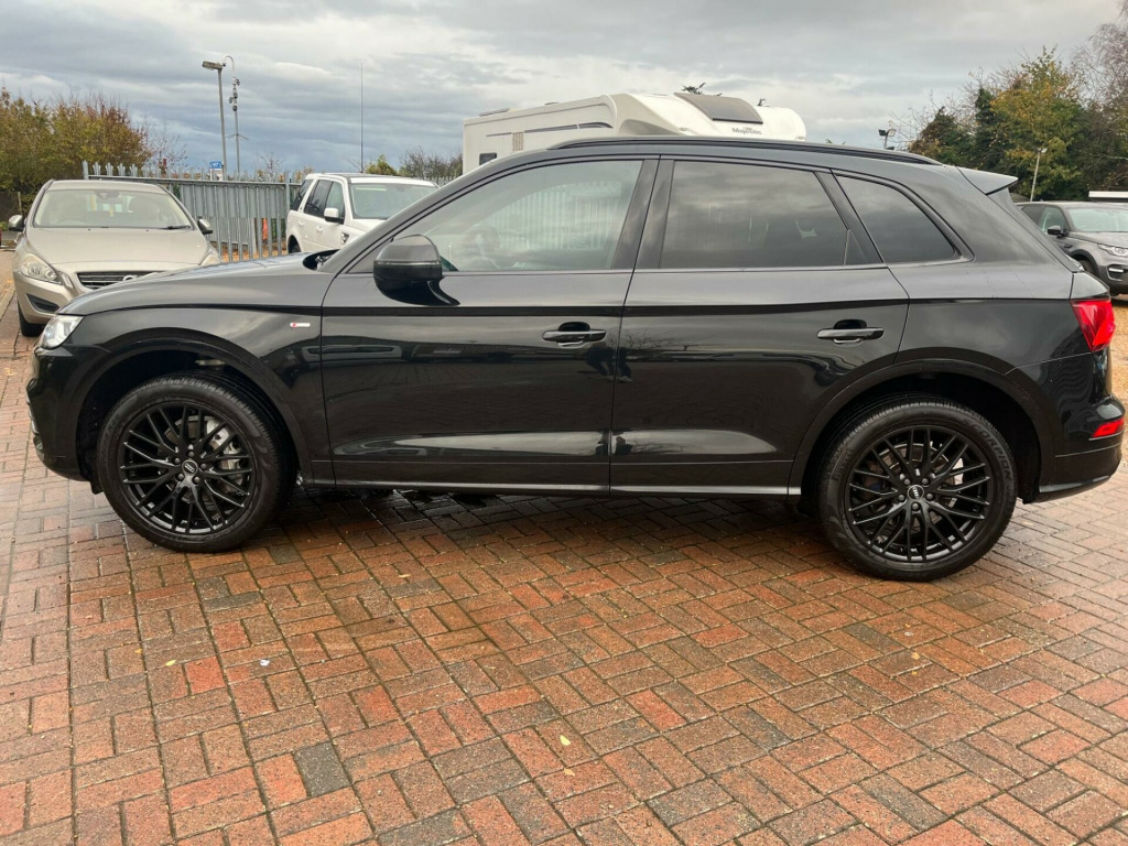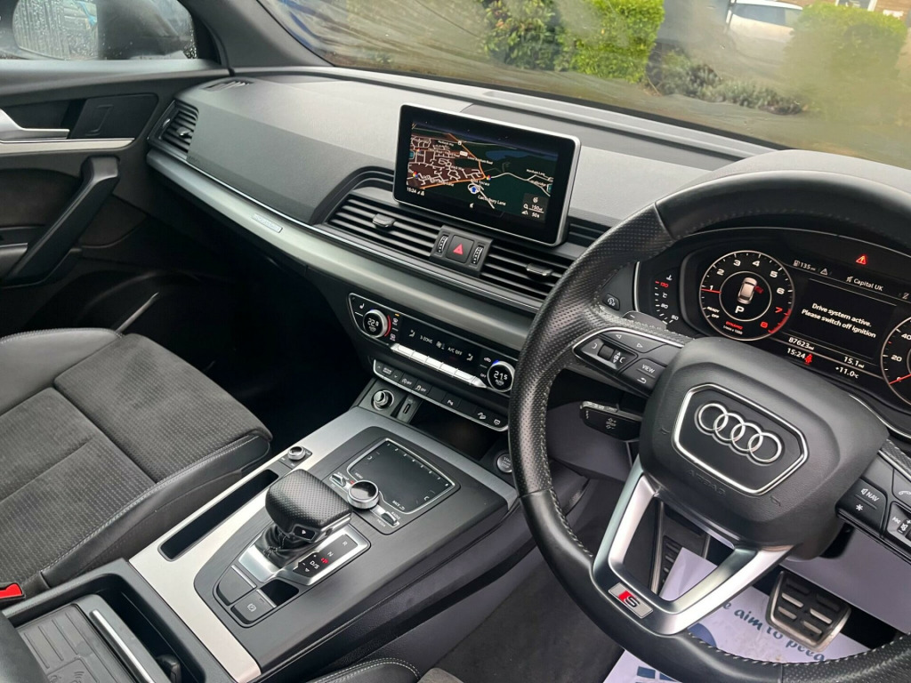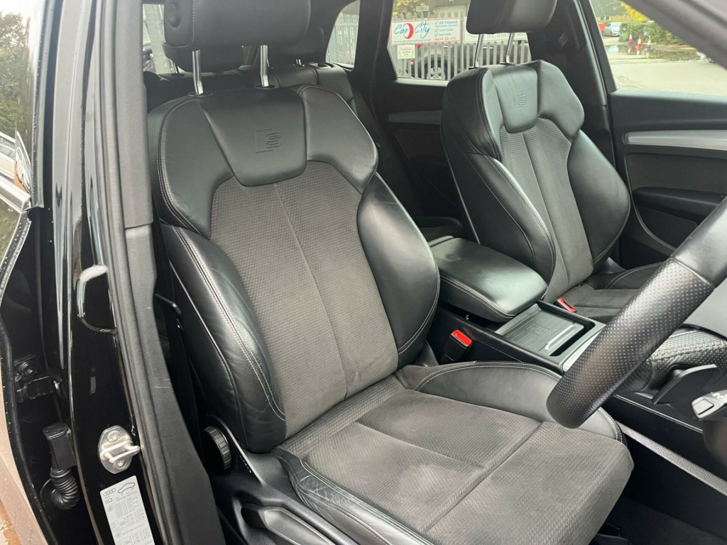 SUPERB CONDITION 2.0TFSi Q5 S-LINE QUATTRO, IN BLACK WITH BLACK SPORTS S-LINE SEATS, HEATED FRONT SEATS, PRIVACY GLASS, 89,000 MILES WITH SERVICE HISTORY & 2 x KEYS, 20'' GLOSS BLACK Y DESIGN ALLOYS, SAT NAV & MORE. in alloy wheels - 5-twin-spoke star design - diamond cut finish, 2 x sdxc card readers, 2 x usb charging ports and 1 x aux-in, 4-way electric lumbar support, 6-airbag system, aluminium roof rails, anti theft locking wheel bolts, anti-theft alarm, audi connect infotainment services - 3 month trial, audi connect safety and service - e-call, audi drive select, audi parking system plus, audi pre-sense city, audi smartphone interface, audi sound system, auto-dimming rear-view mirror, automatic headlight adjustment, bluetooth interface, body coloured door mirrors, cd drive, cloth headlining in black, colour drivers information system with 7in display, contrast stitching on seats - steering wheel and gear lever gaiter, cruise control with speed limiter, dab digital radio, deluxe 3-zone climate control, door mirrors - electrically adjustable and heated with integrated led side indicators, dynamic suspension, esc - electronic stabilisation control inc abs - asr and edl, electric boot lid release, electric windows - front and rear, electromechanical parking brake, electromechanical power steering, email - calendar and text messages can be displayed on your vehicles mmi, first aid kit and warning triangle, front centre armrest, front sports seats with s embossed logo, front and rear floor mats, gear lever knob in black perforated leather, heated front seats, high multi-function 3-spoke leather steering wheel with grips in perforated leather and s badging with gear-shift paddles, high-gloss package, hill descent control, hill hold assist, isofix child seat mounting and top tether, illuminated door sill trims with s logo, inlays - matt brushed aluminium, keyless go, led headlights with led rear lights and dynamic rear indicators, led interior lighting pack, led rear lights, light and rain sensor, mmi navigation - sd card based, mmi radio plus with 7in colour mmi screen and mmi controller, manual seat adjustment, pedals in stainless steel, pop-up bonnet for pedestrian protection, power operated tailgate, privacy glass with acoustic glazing for front windows, radiator grille in twilight grey with horizontal matt aluminium struts, rear diffuser in body colour with matt aluminium silver surrounds, remote central locking, removable luggage compartment floor, removable net partition, s line badges on the front wing panels, s line front and rear bumpers, s line roof spoiler, s line side skirts, seat belt monitoring, side and rear windows in heat-insulating glass, split folding rear seat bench - 40-20-40 with rear seat armrest, stainless steel loading sill protector, tool kit and car jack, tow bar preparation, tyre pressure warning light, tyre repair kit, underbody protection in body colour, voice control system, windscreen with acoustic glass, quattro on demand, rear-view camera, 20in alloy wheels - 10-y-spoke design - cast aluminium, door mirrors - folding