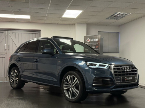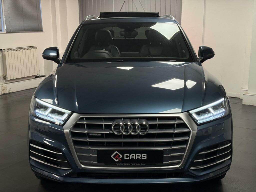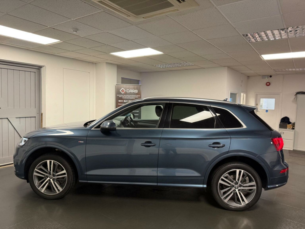 We have just bought this well maintained Q5 directly from the previous owner, registration EL04 RAN (this is staying on the car although can be removed if preferred). This is the S line 2.0 TFSI quattro 252ps with S tronic gearbox finished in Utopia blue metallic with the rare black S line quilted full leather upholstery. Other features include:, >Adaptive air suspension, >Panoramic Sunroof, >Technology Pack with Virtual cockpit, >20 alloy upgrade, >Electric tailgate, >Front and rear parking sensors, >Apple car play or Android auto, >Heated front seats, Plus more!, This Q5 has 2 owners from new and the following service history;, 1st service 19/03/2019 at 5,544 miles at Audi, 2nd service 25/02/2020 at 10,816 miles at Audi, 3rd service 10/03/2021 at 17,124 miles at Audi, 4th service 23/02/2022 at 23,571 miles at Audi, 5th service 17/04/2023 at 33,968 miles at Audi, 06/09/2023 at 33,970 miles - brake fluid change and gearbox oil service at Audi, 6th service 17/11/2023 at 42,437 miles at Audi, We will carry out the next service prior to sale including pollen filter, air filter, spark plugs, brake fluid change, sunroof service and gearbox oil service. , Please do call for more information and to discuss this car in more detail, do also make sure you watch our detailed walk-around video on the video tab in the Gallery! We offer competitive finance options with APRs starting from 9.9% over 2-5 years, and can provide any quotations required. All of this can also be done online. We take any make in part exchange - while we only retail VAG product we will still seek the best value we can for your car. If it is easier you can text or WhatsApp on 07564 053855 or go to our website www.qtcars.co.uk and use the WhatsApp icon. We ensure the car receives a structured mechanical check, 12 months MOT upon arrival and 6 months warranty which can be used at any VAT registered garage nationally. Please take a moment to read our reviews to see what our customers are saying.