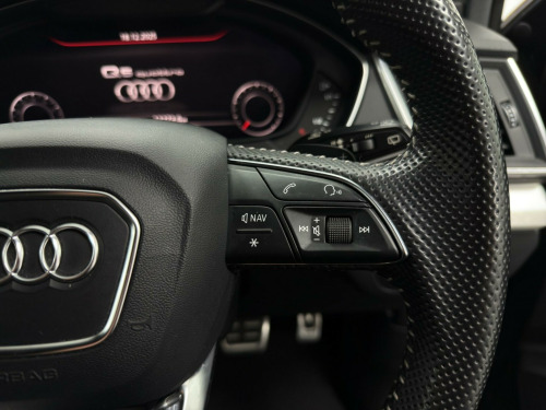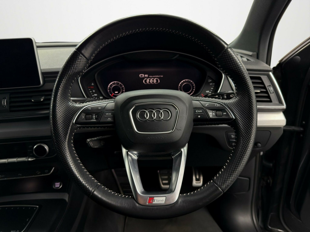 This Audi Q5 TFSI S line from 2017 offers a remarkable ownership history, having been with only two previous owners. It features a powerful 2.0 litre petrol engine paired with a four wheel drive system, ensuring excellent performance and grip in all conditions. This Euro 6 compliant vehicle is equipped with the desirable Technology Package, which includes Bluetooth connectivity and wireless phone charging, alongside the Audi Side Assist with Pre Sense Rear, incorporating Blind Spot Assistance for enhanced safety. The Parking Assistance Pack Advanced further aids manoeuvrability with a 360 degree camera and additional blind spot monitoring.Experience the future of driving with the Audi Virtual Cockpit, providing a fully digital instrument display. This Q5 also benefits from Camera Based Traffic Sign Recognition, keeping you informed of road conditions. With a substantial towing weight of 2400 kg and generous boot space, it is as practical as it is sophisticated. The impressive acceleration of 0 to 62 miles per hour in just 6.3 seconds demonstrates its dynamic capabilities, setting it apart from other vehicles in its class. di side assist including pre-sense rear, technology package, camera-based traffic sign recognition, audi virtual cockpit, parking assistance pack advanced, 19in alloy wheels - 5-twin-spoke star design - diamond cut finish, 2 x sdxc card readers, 2 x usb charging ports and 1 x aux-in, 4-way electric lumbar support, 6-airbag system, air inlet horizontal inlay in matt aluminium, aluminium roof rails, anti theft locking wheel bolts, anti-theft alarm, audi connect infotainment services - 3 month trial, audi connect safety and service - e-call, audi drive select, audi parking system plus, audi pre-sense city, audi smartphone interface, audi sound system, auto-dimming rear-view mirror, automatic headlight adjustment, bluetooth interface, body coloured door mirrors, cd drive, cloth headlining in black, colour drivers information system with 7in display, comfort dynamic suspension, contrast stitching on seats - steering wheel and gear lever gaiter, cruise control with speed limiter, dab digital radio, deluxe 3-zone climate control, door inserts in matt selenite silver, door mirrors - electrically adjustable and heated with integrated led side indicators, esc - electronic stabilisation control inc abs - asr and edl, electric windows - front and rear, electromechanical parking brake, electromechanical power steering, first aid kit and warning triangle, front centre armrest, front and rear floor mats, gear lever knob in black perforated leather, heated front seats, high multi-function 3-spoke leather steering wheel with grips in perforated leather and s badging with gear-shift paddles, high-gloss package, honeycomb side air inlet grille in titanium black, isofix child seat mounting and top tether, illuminated door sill trims with s logo, inlays - matt brushed aluminium, keyless go, led headlights featuring q signature design with led rear lights and dynamic rear indicators, led interior lighting pack, led rear lights, light and rain sensor, luggage compartment cover, luggage compartment mat, mmi navigation - sd card based, mmi radio plus with 7in colour mmi screen and mmi controller, manual seat adjustment, non-smoking package, pedals in stainless steel, pop-up bonnet for pedestrian protection, power operated tailgate, privacy glass with acoustic glazing for front windows, radiator grille in matt twilight grey with horizontal matt aluminium struts, rear diffuser in body colour with matt aluminium silver surrounds, remote central locking, removable luggage compartment floor, removable net partition, s line badges on the front wing panels, s line front and rear bumpers, s line side skirts, s line rear spoiler, seat belt monitoring, side and rear windows in heat-insulating glass, split folding rear seat bench, stainless steel loading sill protector, tool kit and car jack, towbar preparation, tyre pressure warning light, tyre repair kit, underbody protection in matt selenite silver, voice control system, windscreen with acoustic glass, quattro on demand