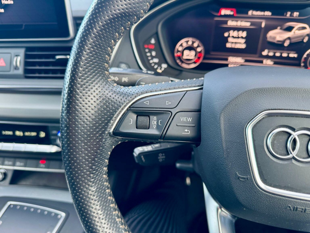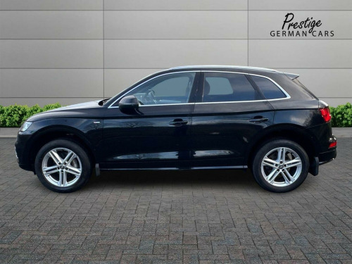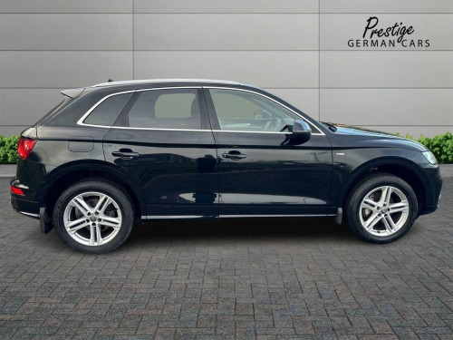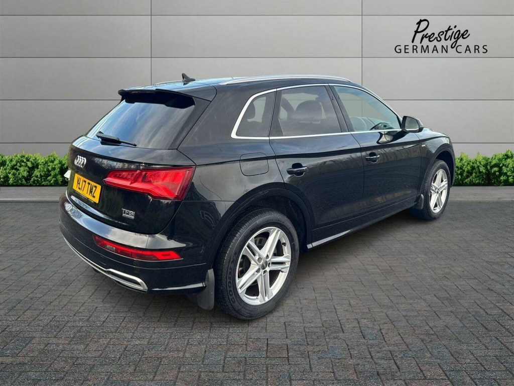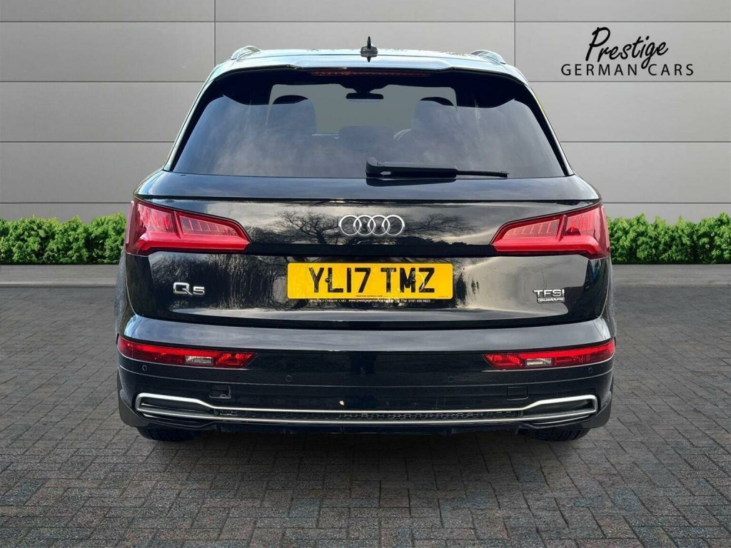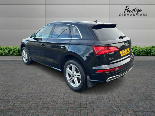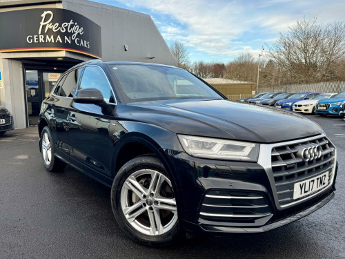 This Audi Q5 TFSI S line from 2017 boasts a single owner from new, offering excellent provenance. Powered by a 2.0 litre petrol engine and featuring four wheel drive, this Euro 6 compliant model is equipped with S line trim for a sporty aesthetic. Inside, youll find comfort and convenience with Deluxe 3-zone climate control and heated front seats. The Light and Rain Sensor automatically manages headlights, while the striking LED headlights with their signature Q design and dynamic rear indicators ensure visibility and style. Connectivity is made easy with the Bluetooth interface. The Q5 TFSI S line offers impressive performance, accelerating from 0 to 62 miles per hour in just 6.3 seconds, demonstrating its dynamic capabilities. This vehicle also provides a generous boot space, making it practical for all your needs. With a towing weight of 2400 kg, it is well suited for a variety of tasks. These highlights collectively indicate a superior driving experience and enhanced utility compared to other vehicles in its class.