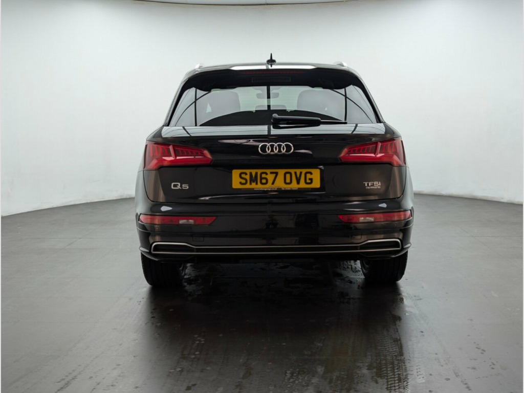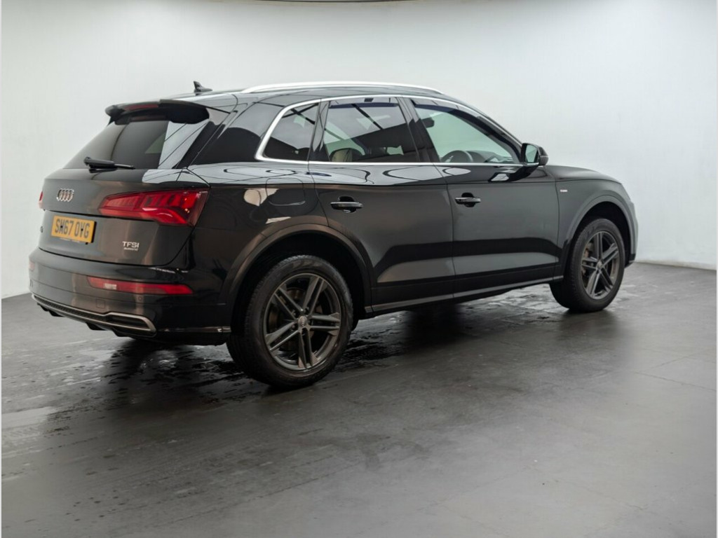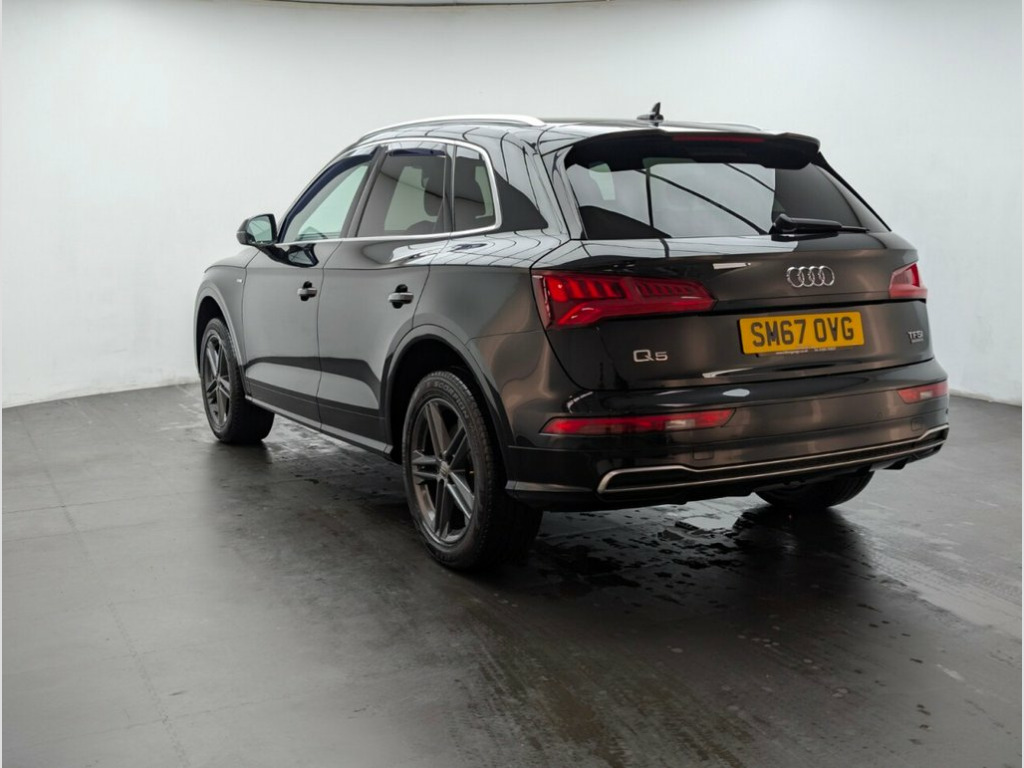 19" alloys, Navigation, Heated front seats, Cruise control and Audi Drive Select. Last service done at 44274 miles on 11/01/2024. This 2018 Audi Q5 TFSI S line presents an exceptional opportunity with remarkably low mileage for its age, having covered just 51,500 miles. This Four Wheel Drive model boasts a powerful 2.0 litre petrol engine and meets Euro 6 emissions standards. For peace of mind, its MOT is valid until January 2026. The S line trim enhances its appeal, and you'll appreciate the convenience of the Light and Rain Sensor, Bluetooth interface for seamless connectivity, and the Audi Parking System Plus with front and rear sensors to aid manoeuvring. Experience the dynamic performance of this Q5, capable of accelerating from 0 to 60mph in a swift 6.3 seconds, a figure that highlights its impressive capability compared to many similar vehicles. The striking LED headlights and dynamic rear indicators ensure excellent visibility, while the heated front seats offer added comfort during colder journeys. Furthermore, the generous boot space provides ample room for luggage or shopping, making this Audi Q5 a practical and desirable choice. With a towing weight of 2400 kg, it is also well equipped for towing. 19in Alloy Wheels - 5-Twin-Spoke Star De, 2 x SDXC Card Readers, 2 x USB Charging Ports and 1 x AUX-IN, 4-Way Electric Lumbar Support, 6-Airbag System, Aluminium Roof Rails, Anti Theft Locking Wheel Bolts, Anti-Theft Alarm, Audi Connect Infotainment Services - 3 M, Audi Connect Safety and Service - e-call, Audi Drive Select, Audi Parking System Plus, Audi Pre-Sense City, Audi Smartphone Interface, Audi Sound System, Auto-Dimming Rear-View Mirror, Automatic Headlight Adjustment, Bluetooth Interface, Body Coloured Door Mirrors, CD Drive, Cloth Headlining in Black, Colour Drivers Information System with 7, Contrast Stitching on Seats - Steering W, Cruise Control with Speed Limiter, DAB Digital