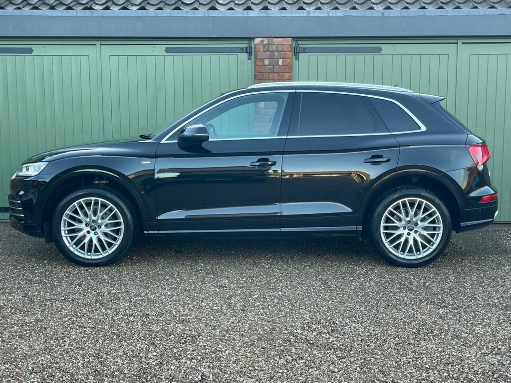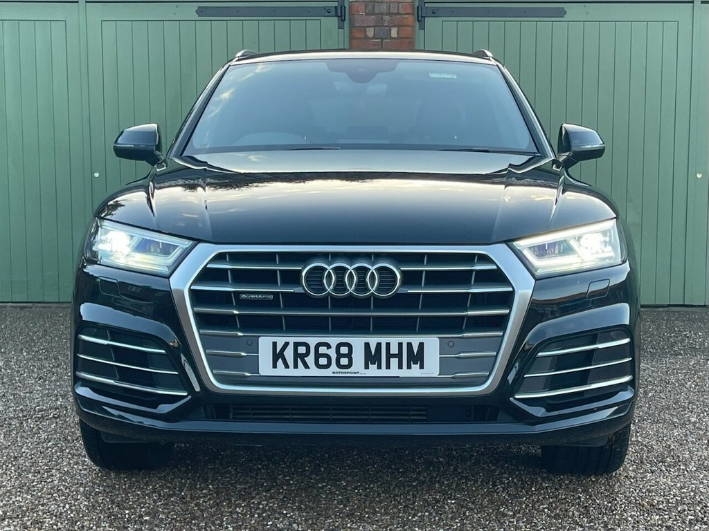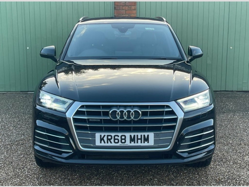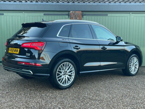 Boasting exceptionally low mileage for its age, this 2018 Audi Q5 TFSI S line presents a superb ownership proposition. This four wheel drive model, powered by a 2.0 litre petrol engine, meets Euro 6 emissions. Its vehicle history check is clear, providing peace of mind. Key features include the Comfort and Sound Package with keyless entry, a rear view camera with parking assistance, folding door mirrors, and automatic headlights activated by the light and rain sensor. The Q5 TFSI S line excels with its impressive acceleration, reaching 0 to 60 miles per hour in just 6.3 seconds, demonstrating its dynamic performance. This particular model also benefits from deluxe 3 zone climate control, ensuring comfort for all occupants. Furthermore, the generous boot space offers practicality for everyday needs and longer journeys, setting it apart from many other vehicles in its class. Comfort and Sound Package, Door Mirrors - Folding, Rear-View Camera, 19in Alloy Wheels - 5-Twin-Spoke Star De, 2 x SDXC Card Readers, 2 x USB Charging Ports and 1 x AUX-IN, 4-Way Electric Lumbar Support, 6-Airbag System, Aluminium Roof Rails, Anti Theft Locking Wheel Bolts, Anti-Theft Alarm, Audi Connect Infotainment Services - 3 M, Audi Connect Safety and Service - e-call, Audi Drive Select, Audi Parking System Plus, Audi Pre-Sense City, Audi Smartphone Interface, Audi Sound System, Auto-Dimming Rear-View Mirror, Automatic Headlight Adjustment, Bluetooth Interface, Body Coloured Door Mirrors, CD Drive, Cloth Headlining in Black, Colour Drivers Information System with 7, Contrast Stitching o