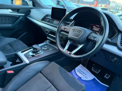 This 2018 Audi Q5 TFSI S line boasts a full service history and a clear vehicle history check, offering you peace of mind. This four wheel drive model is powered by a 2.0 litre petrol engine and meets Euro 6 emissions standards. It comes with a 3 month warranty and a 12 month MOT will be provided on purchase. Notable features include Deluxe 3-Zone Climate Control, LED headlights and rear lights with dynamic rear indicators, a Bluetooth interface, heated front seats, and the Audi Parking System Plus with front and rear sensors. The Audi Q5 TFSI S line offers an impressive 0-60mph acceleration time of just 6.3 seconds, demonstrating its strong performance compared to other vehicles in its class. With a towing weight of 2400 kg, this Q5 is also a capable choice for those needing to tow. The combination of its S line trim, advanced features, and robust performance makes this Audi Q5 a compelling option. 19in Alloy Wheels - 5-Twin-Spoke Star De, 2 x SDXC Card Readers, 2 x USB Charging Ports and 1 x AUX-IN, 4-Way Electric Lumbar Support, 6-Airbag System, Aluminium Roof Rails, Anti Theft Locking Wheel Bolts, Anti-Theft Alarm, Audi Connect Infotainment Services - 3 M, Audi Connect Safety and Service - e-call, Audi Drive Select, Audi Parking System Plus, Audi Pre-Sense City, Audi Smartphone Interface, Audi Sound System, Auto-Dimming Rear-View Mirror, Automatic Headlight Adjustment, Bluetooth Interface, Body Coloured Door Mirrors, CD Drive, Cloth Headlining in Black, Colour Drivers Information System with 7, Contrast Stitching on Seats - Steering W, Cruise Control with Speed Limiter, DAB Digital
