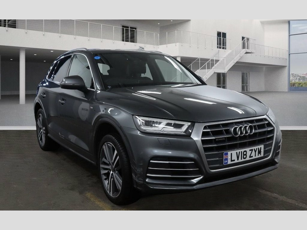 This 2018 Audi Q5 TFSI S line offers excellent peace of mind with fresh MOT and a clear vehicle history check. 1 owner from new , Parking sensors, This Four Wheel Drive SUV is powered by an efficient 2.0 litre Euro 6 petrol engine, Inside, you'll find a luxurious cabin featuring Fine Nappa Leather upholstery in Black with Rock Grey stitching, complemented by 20 inch alloy wheels in a 5 segment spoke design with a contrasting grey diamond cut finish. The S line trim ensures a sporty aesthetic, while the panoramic glass sunroof, which includes an opening function, adds an open and airy feel to your journeys. Experience enhanced comfort with heated front and outer rear seats, perfect for those colder days. The Audi Matrix LED headlights, paired with LED rear lights and dynamic front and rear indicators, provide superior visibility and a distinctive look. This Q5 also boasts a large boot space, making it ideal for families or those who need ample room for luggage or shopping. While the vehicle has partial service history, its overall condition and the included features demonstrate its quality and appeal compared to other vehicles in its class. Fine Nappa Leather - Black with Rock Gre, Audi Matrix LED Headlights with LED Rear, Manhattan Grey, Rear Side Airbags, Inlays - Piano Finish - Black, Heated Front and Outer Rear Seats, Flat-Bottomed 3-Spoke Leather High Multi, Extended LED Interior Lighting Package -, Door Mirrors - Folding with Auto-Dimming, Panoramic Glass Sunroof, 20in Alloy Wheels - 10-Y-Spoke Design - , 19in Alloy Wheels - 5-Twin-Spoke Star De, 2 x SDXC Card Readers, 2 x USB Charging Ports and 1 x AUX-IN, 4-Way Electric Lumbar Support, 6-Airbag System, Aluminium Roof Rails, Anti Theft Locking Wheel Bolts, Anti-Theft Alarm, Audi Connect Infotainment Services - 3 M, Audi Connect Safety and Service - e-call, Audi Drive Sel