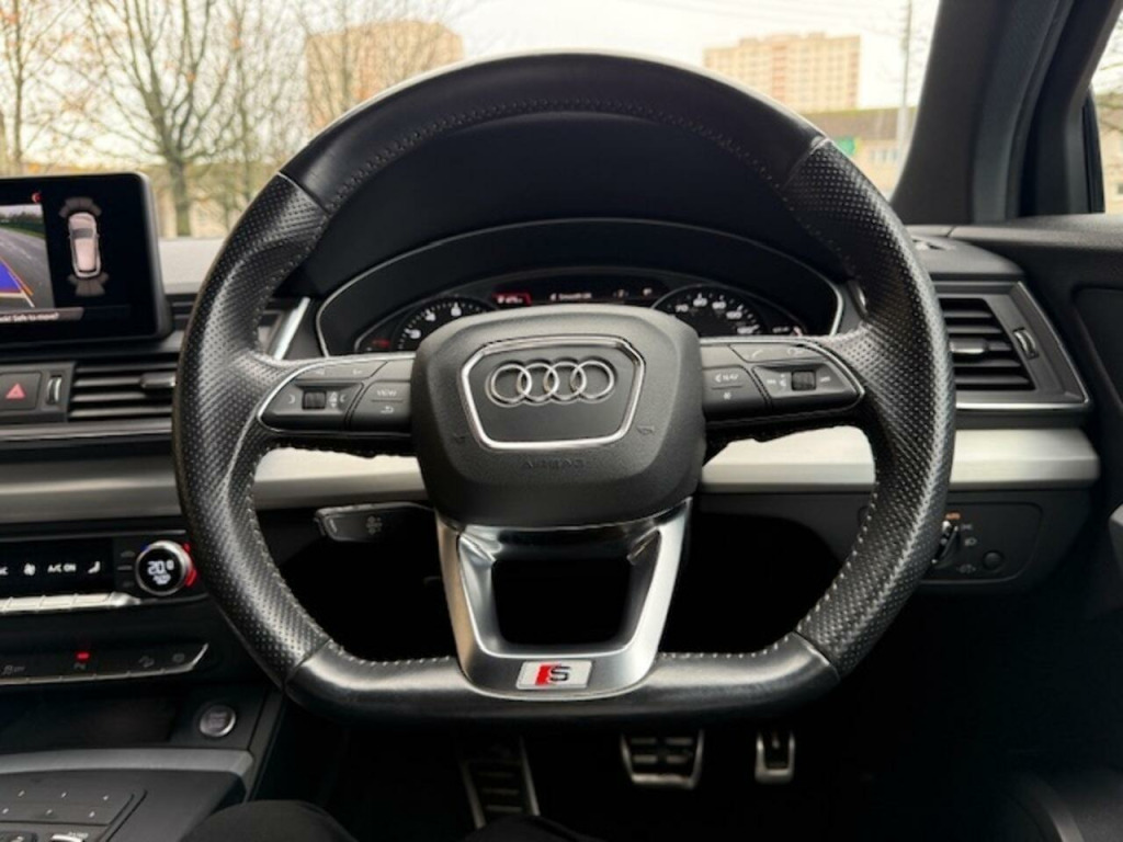 This 2018 Audi Q5 TFSI S line boasts a full service history, with its last service completed on 29th April 2025 at 70,583 miles, and comes with a clear vehicle history check for your peace of mind. This Euro 6 compliant, four wheel drive model is powered by a 2.0 litre petrol engine, offering an impressive 0-62mph acceleration in just 6.3 seconds. It also features a substantial towing weight of 2400 kg, a generous boot space, and is supplied with a 6 month warranty and 12 months MOT.The S line trim enhances the driving experience with a flat-bottomed 3-spoke leather steering wheel and an extended multi-coloured LED interior lighting package. For convenience and safety, this Q5 includes Audi Parking System Plus with front and rear sensors, a rear view camera for enhanced parking assistance, and Audi Hill Hold Assist. These features, combined with its brisk acceleration and robust towing capability, position this Audi Q5 as a superior choice for those seeking performance, practicality, and advanced technology in an SUV.. 2 x SDXC Card Readers, 2 x USB Charging Ports and 1 x AUX-IN, Audi Connect Infotainment Services - 3 Month Trial, Audi Connect Safety and Service - e-call, Audi Smartphone Interface, Audi Sound System, Bluetooth Interface, CD Drive, DAB Digital Radio, MMI Navigation - SD Card Based, MMI Radio Plus with 7in Colour MMI Screen and MMI Controller, Tow Bar Preparation, Audi Drive Select, Audi Parking System Plus, Colour Drivers Information System with 7in Display, Cruise Control with Speed Limiter, quattro On Demand, Tyre Pressure Warning Light, Voice Control System, 19in Alloy Wheels - 5-Twin-Spoke Star Design - Diamond Cut Finish, Aluminium Roof Rails, Anti Theft Locking Wheel Bolts, Body Coloured Door Mirrors, Door Mirrors - Electrically Adjustable and Heated with Integrated LED Side Indicators, Electric Windows - Front and Rear, High-Gloss Package, Privacy Glass with Acoustic Glazing For Front Windows, Radiator Grille in Twilight Grey with Horizontal Matt Aluminium Struts, Rear Diffuser in Body Colour with Matt Aluminium Silver Surrounds, S Line Badges on the Front Wing Panels, S Line Front and Rear Bumpers, S Line Roof Spoiler, S Line Side Skirts, Side and Rear Windows in Heat-Insulating Glass, Tyre Repair Kit, Windscreen with Acoustic Glass, Automatic Headlight Adjustment, LED Headlights with LED Rear Lights and Dynamic Rear Indicators, LED Rear Lights, Light and Rain Sensor, 4-Way Electric Lumbar Support, Auto-Dimming Rear-View Mirror, Cloth Headlining in Black, Contrast Stitching on Seats - Steering Wheel and Gear Lever Gaiter, Deluxe 3-Zone Climate Control, Electric Boot Lid Release, Email - Calendar and Text Messages can be Displayed on your Vehicles MMI, Front and Rear Floor Mats, Front Centre Armrest, Front Sports Seats with S Embossed Logo, Gear Lever Knob in Black Perforated Leather, Heated Front Seats, High Multi-function 3-Spoke Leather Steering Wheel with Grips in Perforated Leather and S Badging with Gear-Shift Paddles, Illuminated Door Sill Trims with S Logo, Inlays - Matt Brushed Aluminium, Keyless Go, LED Interior Lighting Pack, Manual Seat Adjustment, Pedals in Stainless Steel, Power Operated Tailgate, Removable Luggage Compartment Floor, Removable Net Partition, Split Folding Rear Seat Bench - 40-20-40 with Rear Seat Armrest, Stainless Steel Loading Sill Protector, Tool Kit and Car Jack, Dynamic Suspension, Electromechanical Power Steering, 6-Airbag System, Anti-Theft Alarm, Audi Pre-Sense City, Electromechanical Parking Brake, ESC - Electronic Stabilisation Control inc ABS - ASR and EDL, First Aid Kit and Warning Triangle, Hill Descent Control, Hill Hold Assist, ISOFIX Child Seat Mounting and Top Tether, Pop-Up Bonnet for Pedestrian Protection, Remote Central Locking, Seat Belt Monitoring, Underbody Protection in Body Colour, Rear-View Camera, Extended LED Interior Lighting Package - Multi-Coloured, Flat-Bottomed 3-Spoke Leather High Multi-Function Steering Wheel, Audi Hill Hold Assist. Full service history