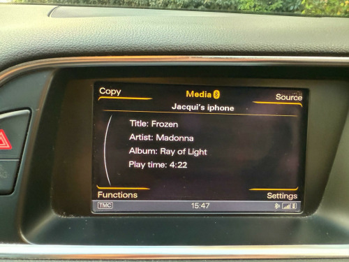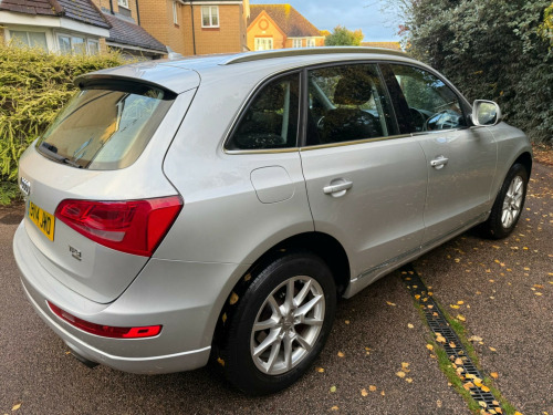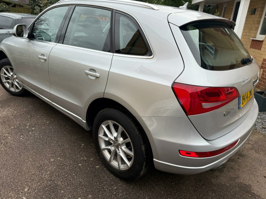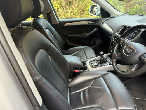 We are delighted to offer you this stunning Q5Full service history very long MOT we have bushes replaced. Only 2 previous owners Three months warranty included with Warranty First, top cover can be upgraded to a year for minimal cost.It drives really well front and rear Parking sensors, cruise control, full leather heated front seatsMedia sound system and Bluetooth connectivityHot and cold cup holder! Lots of paperwork for service history first few years all Audi.Two keys and book packThe car is available to view and test drive seven days a week including evenings and weekends by appointment only.Part exchange welcomeFantastic finance options with Meridian FinanceFamily run business please read our reviews. di parking system advanced, ami - audi music interface, technology package - advanced, mobile telephone preparation - high with audi connect, alcantara - leather - sports seats - black, 12v power socket, 18in alloy wheels - 10-spoke-v design, 6.5in display screen, abs - anti-lock braking system, aux-in socket, acoustic windscreen, air conditioning - deluxe automatic at the rear, airbags - driver, airbags - front passenger, airbags - front side, airbags - head system, alarm - thatcham category 1, aluminium roof rails, amplifier - 6 channel, anti theft locking wheel bolts, audi sound system, audio sound system, auto-dimming rear-view mirror, automatic wipers with rain sensor, body coloured bumpers, car jack, collapsible spare wheel, colour drivers information system - dis, concert radio, cruise control, cup holders - centre console, dab digital radio, daytime running lights, deluxe 3-zone climate control, door mirrors - electrically adjustable and heated, ebd - electronic brakeforce distribution, esp - electronic stability programme, electric windows - front and rear, electromechanical parking brake, electromechanical power steering, first aid kit, front centre armrest, front fog lights, front passenger airbag deactivation switch, front and rear floor mats, halogen headlights, headlights - coming-leaving home function, headlights - light sensor, hill descent control, isofix child seat preparation front and rear, inlays - aluminium satellite, misfuelling inhibition, mobile telephone preparation - bluetooth interface, pollen filter, rear parking sensors, remote boot release, remote central locking, rest recommendation system, roof bars and storage bag, sdhc card reader, seats - front height adjustment, seats - split folding rear - 60-40, spoiler, steering column - rake and reach adjustment, steering wheel - 4-spoke leather trimmed/multifunction, steering wheel - multi-function, tp memo - automatically saves traffic news, tool kit, traction control, warning triangle, window surrounds - aluminium