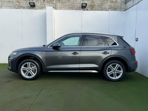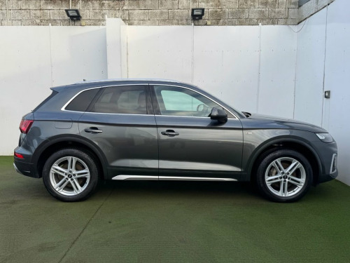 This 2021 Audi Q5 TFSIe S line offers a unique blend of performance and efficiency, having been owned by just one careful keeper. As a Euro 6 compliant model, it features a sophisticated 2.0 litre petrol plug-in hybrid engine paired with Audi's renowned Four Wheel Drive system, ensuring excellent traction and a smooth driving experience. This S line trim level comes equipped with a Rear Spoiler for enhanced aerodynamics, a versatile Rear Bench Seat Plus for passenger comfort, and Dynamic Suspension for adaptable handling. For convenient charging, it includes both a 3 Pin 10amp Domestic Charging Cable and a Type 2 Mode 3 32 Amp Charging cable. Experience the impressive acceleration of this Q5, reaching 0-60mph in a swift 6.1 seconds, a testament to its powerful hybrid powertrain. This performance, combined with its plug-in hybrid technology, positions it as a compelling choice for those seeking a premium SUV that balances spirited driving with the potential for reduced running costs. The combination of its advanced engineering, S line styling, and comprehensive charging solutions makes this Audi Q5 TFSIe a standout option in its class. Daytona Grey, 19in Alloy Wheels - 5-Twin-Spoke Star De, 2 USB Charging Ports -1 x USB-A and 1 x , 3 Pin 10amp Domestic Charging Cable, 3-Spoke Multi-Function Leather Steering , 6-Airbag System, Aluminium Roof Rails, Amazon Alexa Integration, Anti Theft Locking Wheel Bolts, Anti-Theft Alarm, Audi Connect Navigation and Infotainment, Audi Connect with Amazon Alexa Integrati, Audi Drive Select, Audi Pre-Sense City, Audi Virtual Cockpit Plus - 12.3in Scree, Audi Wireless Smartphone Interface, Auto-Dimming Rear-View Mirror, Automatic Headlight Adjustment, Automatic Headlight and Windscreen Wiper, Automatic Start-Stop with Coasting Funct, Bluetooth Interface, Body Coloured Door Mirrors, Chrome-Pla