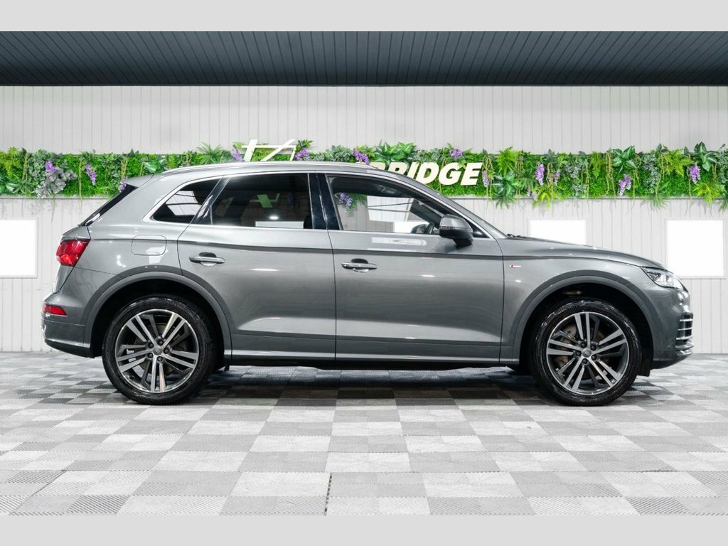 Kingsbridge Autos are very pleased to bring this fabulous Audi Q5 2.0 Hybrid S-Line Competition Quattro 4WD finished in Daytona grey metallic paint to the market. With this example being the S-Line Competition it is complete with the S-Line exterior styling and suspension, Matrix LED headlights, 20'' alloy wheels, MMI Navigation Plus, Flat bottom steering, electric boot lid and much more. This car is in great condition and benefits from a full service history, don't miss out on your chance to own this lovely Audi Q5 S-Line Competition.  The 2.0 Hybrid offers a combined power of 367 PS and 500 Nm of torque, achieving 0-62 mph in around 5.3 seconds, with an electric-only range of up to 26 miles on the WLTP cycle. A full charge can be achieved in approximately six hours with a standard domestic socket or 2.5 hours using a 7kW home wallbox. Audi reckon on the WLTP cycle it'll achieve 113mpg.  One of the stand out features of this car are the Full Valcona quilted leather seats which are electrically adjustable, heated and have a full Massage function!  This example has a complete annual service history and just 2 owners from new.  Fine Nappa Leather - Black with Rock Gre, Daytona Grey, 2 x SDXC Card Readers, 2 x USB Charging Ports and 1 x AUX-IN, 20in Alloy Wheels - 5-Segment-Spoke Desi, 3 Pin 10amp Domestic Charging Cable, 4-Way Electric Lumbar Support, 6-Airbag System, Advanced Key with Electric Hands-Free Bo, Aluminium Roof Rails, Anti Theft Locking Wheel Bolts, Anti-Theft Alarm, Audi Beam, Audi Connect Safety and Service - e-call, Audi Drive Select, Audi Parking System Plus, Audi Pre-Sense City, Audi Smartphone Interface, Auto-Dimming Rear-View Mirror, Automatic Headlight Adjustment, Bluetooth Interface, Body Coloured Door Mirrors, CD Drive, Chrome-Plated Exhaust Trim, Cloth Headlining in Black, Colour Drivers Inf