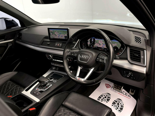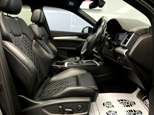 REF : AUDI Q5 3.0 TFSI V6 SUV 5DR PETROL TIPTRONIC QUATTRO EURO 6 354BHP FINISHED IN STUNNING GREY WITH FULL BLACK LEATHER INTERIOR. THIS HIGH SPECIFICATION EXAMPLE BOASTS THE 1 PREV OWNER FROM BRAND NEW AND A FULL SERVICE RECORD EQUIPPED WITH OVER ?10K OF FACTORY EXTRAS WHICH INCLUDE | AUDI VIRTUAL COCKPIT | FULL BLACK LEATHER SEATS | 20INCH ALLOY WHEELS | TILT AND SLIDE PANORAMIC GLASS ROOF | TECHNOLOGY PACK | KEYLESS START | ELECTRIC OPENING TAIL GATE | 2 KEYS | HEATED FRONT SEATS | FRONT ELECTRIC SEATS | FRONT AND RAER PARKING SENSORS | HEATED AND FOLDING MIRRORS | FULL BLACK PACK | APPLE CAR PLAY | ANDROID AUTO | BE FAST - A RARE FIND IN THIS SPECIFICATION AND NOT TO BE MISSED.... Further to this all vehicles are provided with a comprehensive AA Dealer Care Extended Guarantee and Full AA Roadside, Recovery and Home Start & Onward travel (where not covered under the manufactures own warranty). HPI checks are carried out making sure all cars are clear from any concern, offering you total piece of mind. Every vehicle's mileage is fully guaranteed as genuine. Included with your purchase you will receive a minimum of 3 months Warranty with the option to extended and tailor your package at the time of purchase. Our vehicles are supplied fully valeted to the highest standards and include up to date servicing with a minimum of 9 months MOT. We are regulated by the FCA and can provide a range of flexible finance options, tailoring a package to your needs. We aim to a mak 2 x SDXC Card Readers, 2 x USB Charging Ports and 1 x AUX-IN, 20in Alloy Wheels - 5-Twin-Spoke Star De, 4-Way Electric Lumbar Support, 6-Airbag System, Aluminium Roof Rails, Aluminium-Effect Door Mirror Housings, Anti Theft Locking Wheel Bolts, Anti-Theft Alarm, Audi Beam, Audi Connect Infotainment Services - 3 M, Audi Connect Safety and Service - e-call, Audi Drive Select, Audi Parking System Plus, Audi Phone Box with Wireless Charging, Audi Pre-Sense City, Audi Smartphone Interface, Audi Sound System, Audi Virtual Cockpit, Auto-Dimming Rear-View Mirror, Automatic Headlight Adjustment, Bluetooth Interface, Brake Calipers Painted in Black with SQ5, CD Drive, Cloth Headlining in Black, Colour