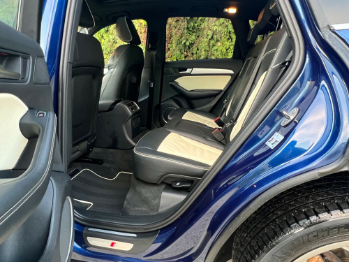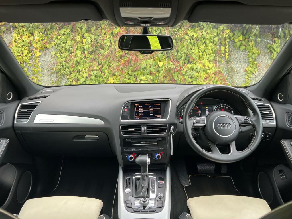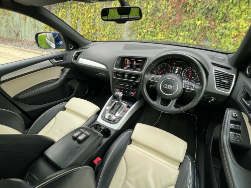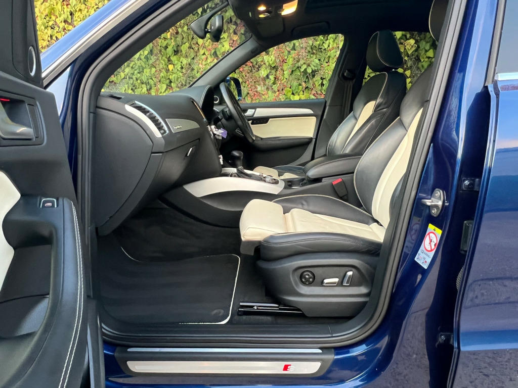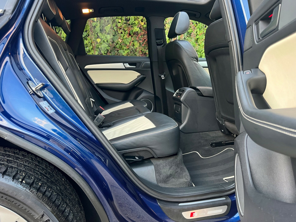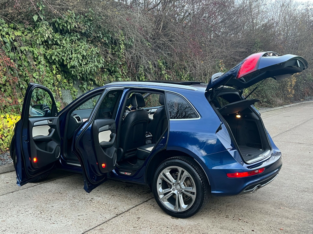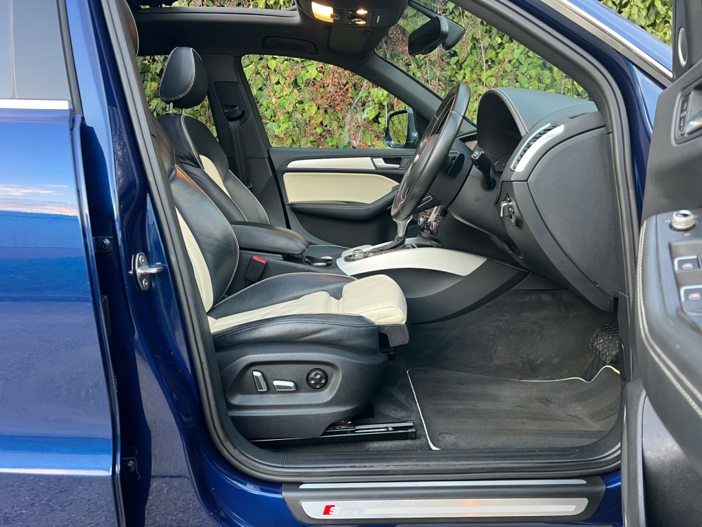 Beautifully Presented Audi Q5 3.0 TDI S Line Plus In Blue With A Two Tone Black And Ivory Napa Leather Interior, With Extended Leather And Contrast Stitching On The Dashboard As Well As The Steering Wheel, Main Dealer Full Service History, Just Had A Service, Big Spec, Leather Heated Seats, Electric Memory Seats,Full Leather Multifunctional Steering Wheel, Bang & Olufsen Sound System, MultiMedia Interface, FM, DAB, Bluetooth Connectivity, CD Player, SatNav, Cruise Control, Speed Limiter, Multiple Driving Modes, Reversing Camera, Parking Aid, Keyless Entry, Rain Sensors, Xenon Lights, Automatic Day Running Lights, Electric Folding Mirrors, Heated Mirrors, Electric Windows, Electric Tailgate, Electric Panoramic Roof, Electric Roof Blind, 4 Matching Michelin Tires, 2 Keys. UK HOME DELIVERY AVAILABLE.FINANCE AVAILABLE.We Take Great Pride In Preparing And Detailing Our Vehicles To The Highest Of Standards As Well As Having 6 Months Warranty With A Fresh MOT And Health Check For Additional Peace Of MindFor Viewings And Enquiries Please Contact:Tel: 07827975566 v power socket, 20gb jukebox for storing and managing music files - wma and mp3 format, ami - audi music interface, aux-in socket, amplifier - 6 channel, audi sound system, audio sound system, concert radio, dab digital radio, display screen colour 7in high resolution, european navigation data, hard disk navigation with topographical map display, mobile telephone preparation - bluetooth interface, sd card reader x2, sdhc card reader, 20in alloy wheels - 5-segment-spoke design, acoustic windscreen, aluminium roof rails, anti theft locking wheel bolts, body coloured bumpers, bumpers - s line front, collapsible spare wheel, diffuser - platinum grey, door mirrors - electrically adjustable and heated, electric windows - front and rear, privacy glass, radiator grille - s line with chrome vertical bars, roof bars and storage bag, s line side skirts, spoiler, styling package - s line exterior, abs - anti-lock braking system, airbags - driver, airbags - front passenger, airbags - front side, airbags - head system, alarm - thatcham category 1, ebd - electronic brakeforce distribution, esp - electronic stability programme, electromechanical parking brake, first aid kit, front passenger airbag deactivation switch, hill descent control, isofix child seat preparation front and rear, misfuelling inhibition, remote central locking, traction control, warning triangle, air conditioning - deluxe automatic at the rear, auto-dimming rear-view mirror, automatic wipers with rain sensor, car jack, cloth headlining in black, cup holders - centre console, deluxe 3-zone climate control, electrically adjustable 4-way lumbar support, front centre armrest, front and rear floor mats, inlays - matt brushed aluminium, leather package - door armrests, pollen filter, power operated tailgate, remote boot release, s line sill plates and aluminium loading strip for the boot, seats - front height adjustment, seats - split folding rear - 60-40, steering column - rake and reach adjustment, steering wheel - 3-spoke leather - multi-function - sports - shift paddles, steering wheel - gear shift paddles, steering wheel - multi-function, tp memo - automatically saves traffic news, tailgate - lid closing assistance unit, tailgate - programmable angle for the luggage compartment lid, technology package, tool kit, audi parking system plus, colour drivers information system - dis, cruise control, electromechanical power steering, rear parking sensors, rest recommendation system, automatic headlight range adjustment, front fog lights, headlight washers, headlights - bi-xenon plus, headlights - coming-leaving home function, headlights - light sensor, led daytime running lights, led rear lights