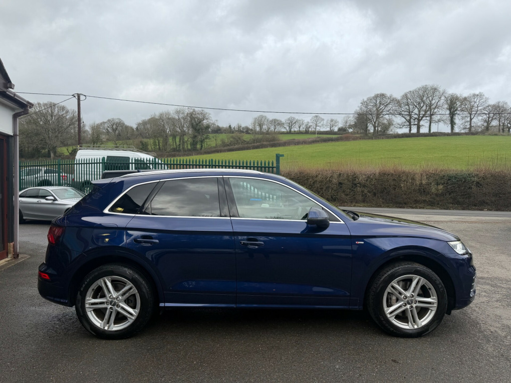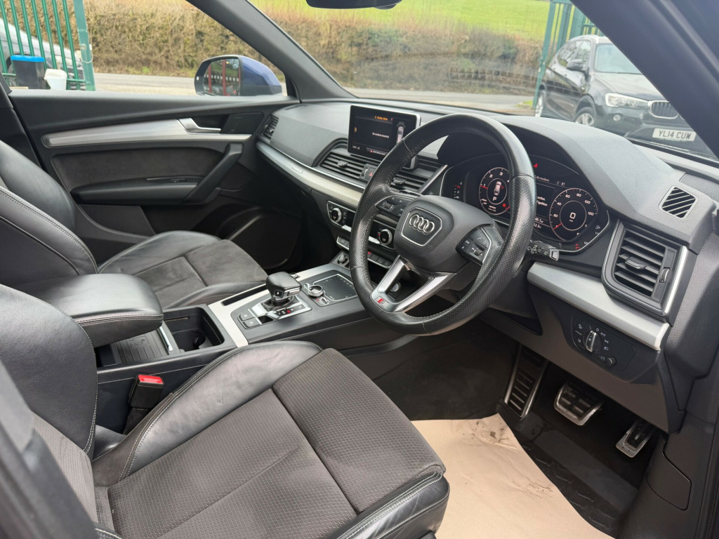 This 2018 Audi Q5 3.0 TDI V6 S line SUV, with 108881 miles on the odometer, is a sleek and powerful Diesel vehicle that boasts 5 seats and 5 doors, making it the perfect family SUV. With a fresh MOT on sale and ULEZ compliance, this Audi Q5 is ready to hit the road with confidence. The 3.0 TDI V6 engine delivers a robust 286 PS, while the S Tronic quattro Euro 6 ensures a smooth and efficient drive. It comes with 19-inch Alloy Wheels, Aluminium Roof Rails, Anti Theft Locking Wheel Bolts, as well as Body Coloured Door Mirrors and Electrically Adjustable and Heated with Integrated LED Side Indicators. Whether you're navigating city streets or venturing off-road, this Audi Q5 has the power, comfort, and style to handle it all with ease.- 2 keys - Good service history - Part Exchange Welcome- Extended Warranties Available- Finance Available, in alloy wheels - 5-twin-spoke star design - diamond cut finish, aluminium roof rails, anti theft locking wheel bolts, body coloured door mirrors, door mirrors - electrically adjustable and heated with integrated led side indicators, electric windows - front and rear, high-gloss package, privacy glass with acoustic glazing for front windows, radiator grille in twilight grey with horizontal matt aluminium struts, rear diffuser in body colour with matt aluminium silver surrounds, s line badges on the front wing panels, s line front and rear bumpers, s line roof spoiler, s line side skirts, side and rear windows in heat-insulating glass, tyre repair kit, windscreen with acoustic glass, 2 x sdxc card readers, 2 x usb charging ports and 1 x aux-in, audi connect infotainment services - 3 month trial, audi connect safety and service - e-call, audi smartphone interface, audi sound system, bluetooth interface, cd drive, dab digital radio, mmi navigation - sd card based, mmi radio plus with 7in colour mmi screen and mmi controller, tow bar preparation, 4-way electric lumbar support, auto-dimming rear-view mirror, cloth headlining in black, contrast stitching on seats - steering wheel and gear lever gaiter, deluxe 3-zone climate control, electric boot lid release, email - calendar and text messages can be displayed on your vehicles mmi, front centre armrest, front sports seats with s embossed logo, front and rear floor mats, gear lever knob in black perforated leather, heated front seats, high multi-function 3-spoke leather steering wheel with grips in perforated leather and s badging with gear-shift paddles, illuminated door sill trims with s logo, inlays - matt brushed aluminium, keyless go, led interior lighting pack, manual seat adjustment, pedals in stainless steel, power operated tailgate, removable luggage compartment floor, removable net partition, split folding rear seat bench - 40-20-40 with rear seat armrest, stainless steel loading sill protector, tool kit and car jack, 6-airbag system, anti-theft alarm, audi pre-sense city, esc - electronic stabilisation control inc abs - asr and edl, electromechanical parking brake, first aid kit and warning triangle, hill descent control, hill hold assist, isofix child seat mounting and top tether, pop-up bonnet for pedestrian protection, remote central locking, seat belt monitoring, underbody protection in body colour, audi drive select, audi parking system plus, colour drivers information system with 7in display, cruise control with speed limiter, dynamic suspension, electromechanical power steering, tyre pressure warning light, voice control system, quattro on demand, automatic headlight adjustment, led headlights with led rear lights and dynamic rear indicators, led rear lights, light and rain sensor