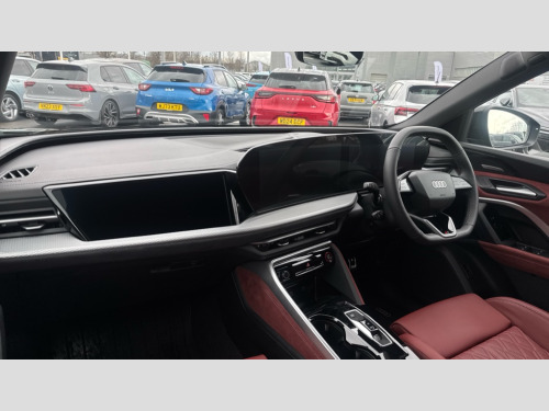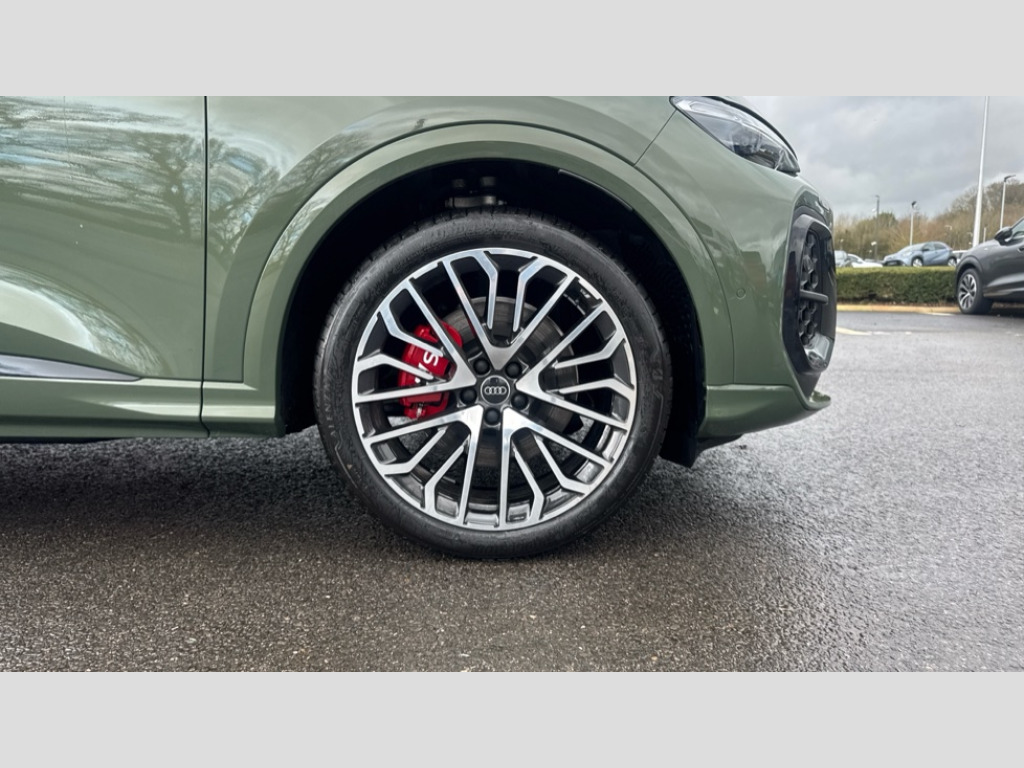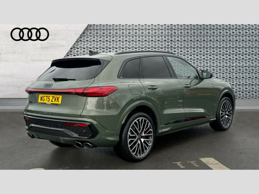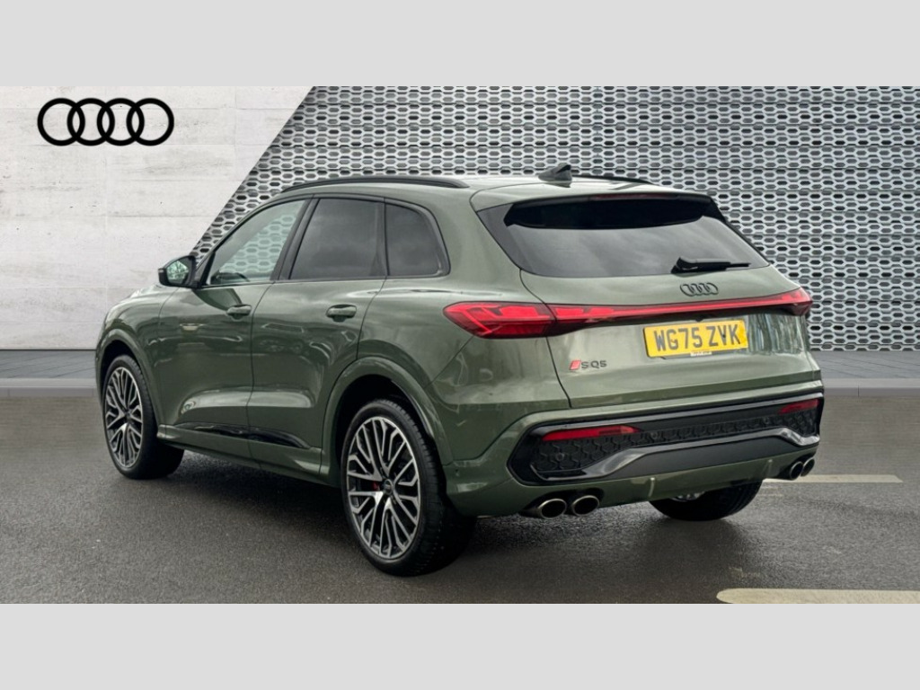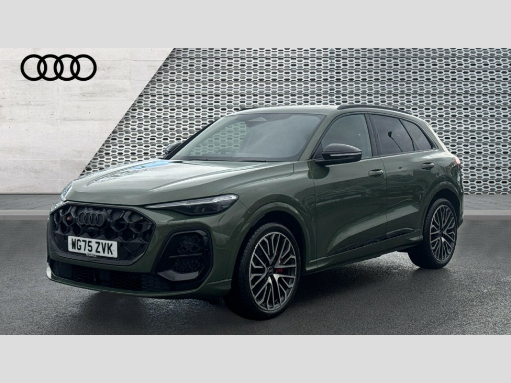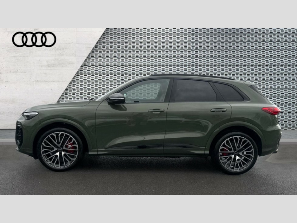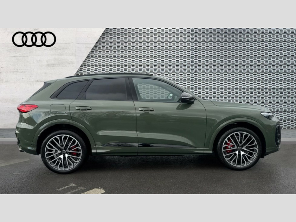 Audi Q5 SQ5 TFSI Quattro Edition 1 5dr S Tronic Adaptive cruise assist plus with steering intervention, Attention and drowsiness detection with driver observation, Audi application store, Audi connect emergency call and service, Audi digital key, Audi drive select, Audi smartphone interface, Audi virtual cockpit plus with 11.9" OLED colour display, Camera based traffic sign recognition, Front cross traffic intersection assist, Garage door opener, Lane change assistant with exit warning system, rear cross traffic alert and rear turn assist, Lane departure warning with emergency assist, MMI 10.9" front passenger touch display, MMI navigation plus with high resolution 14.5" OLED touchscreen colour display, Park assist pro with remote function, PAS, Reversing camera, Swerve assist and front turn assist, Traffic sign based speed limiter, S adaptive air suspension, DAB Digital radio, Smartphone compartment with wireless charging, Acoustic glass for front door windows, Active digital light signatures - Six additional combinations of active daytime running light signature, All weather light, Auto dimming rear view mirror, Automatic dynamic headlight range control, Black roof rails, Digital OLED tail lights including communication light, Dynamic light scenarios of the coming home/leaving home function when stationary, Electrically adjustable heated and folding + automatically dimming exterior mirrors, Exhaust tailpipes in dark chrome, Front and rear electric windows, Front door sill trims with aluminium inlays, illuminated with 'S' logo, Full body paint finish, Grill frame, inlay and front air inlets in matt anthracite chrome, Headlight cleaning system, Heated rear window, High beam assist, High gloss window surrounds, LED daytime running light with 8 digital light signature, Logo projection light in exterior mirrors, Manoeuvring light, Matrix LED headlights, Memory function for door mirrors, Motorway light, Opening panoramic sunroof, Privacy glass, Projection third brake light for rear window in LED, Radiator grille in phantom black, Rear and side windows with heat insulating glass, Rear honeycombe grille in matt black with inlay in matt anthracite chrome, Rear side wing doors, Rear wash/wipe, Red S rhombus badging with 'S' lettering on rear, S exterior styling, Static cornering light, Turning light, Windscreen with acoustic glazing, 3 rear head restraints, 3 seat bench in 2nd row, 3 spoke leather steering wheel with multi-function buttons with touch control, flattened on top and bottom, with S badging and contrast stitching, Black carpets, Comfort centre armrest front, Deluxe 3 zone electronic climate control, Electric steering wheel adjustment, Electrically adjustable front seats with memory function for driver's side, Front and rear floor mats, Front sport seats with integrated head restraints, Headlining in black cloth, Heated front seats, Heated outer rear seats, Heated steering wheel, i-Size child seat mounting on the front passenger side and outer rear seats, i-Size and top tether on the outer rear seats, Interior trim in aluminium look, Luggage compartment lid, electrically opening and closing, Perforated fine nappa leather upholstery with diamond stitching incl ventilation and massage function for front seats, Pneumatically adjustable lumbar support for front seats, S embossed logo on front sport seats, Single front passenger seat, Softwrap in black, Softwrap in Dinamica, Stainless steel pedals and footrest, Steering wheel grips in perforated leather and shift paddles, Ambient lighting package plus - Q5, Black styling package plus - Q5, Rear seat bench plus pack - Q5, Sound and Vision pack - Q5, Storage and luggage compartment pack with luggage net - Q5, 3x3 point rear seatbelts, ABS, Acoustic vehicle alerting system, Convenience key with safelock, Driver and front passenger airbag with passenger airbag deactivation, Electric child safety locks, First aid kit with warning triangle and high visibility vests, Front and rear emergency brake assist, Hill hold assist, Proactive passenger protection system for front, sides and rear, Rear seat occupant reminder, Red brake calipers, Side airbags in front and rear with head airbag system and front interaction airbag, Tyre pressure loss indicator, Anti-theft wheel bolts, Thatcham approved category 1 anti theft alarm, Black dashboard with contrast stitching, Upper and lower interior elements in dinamica microfiber, Tyre repair kit