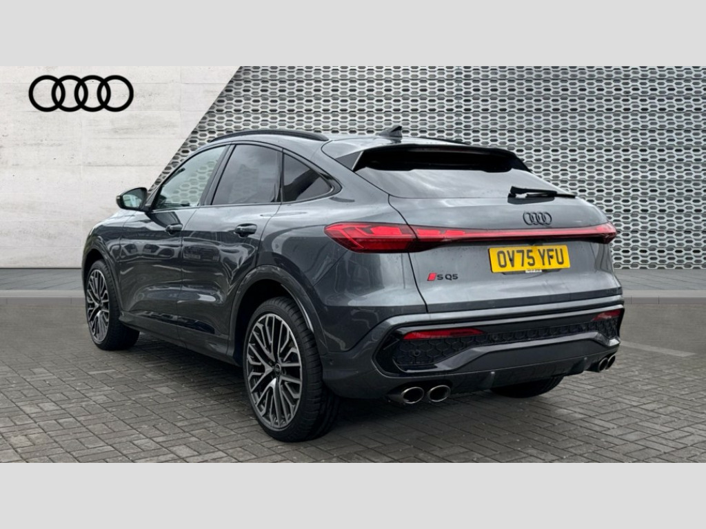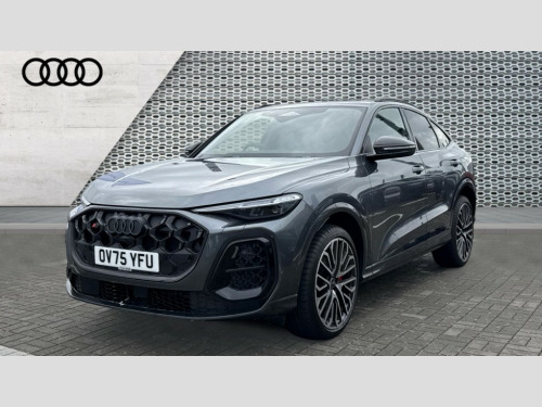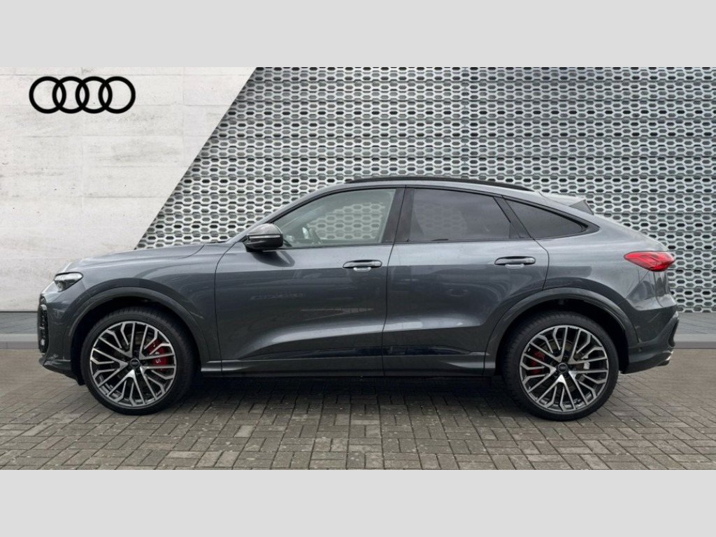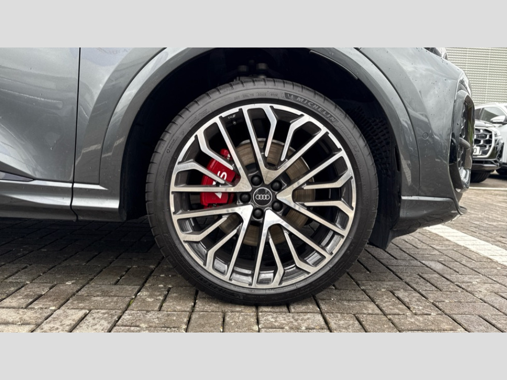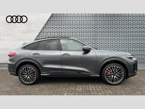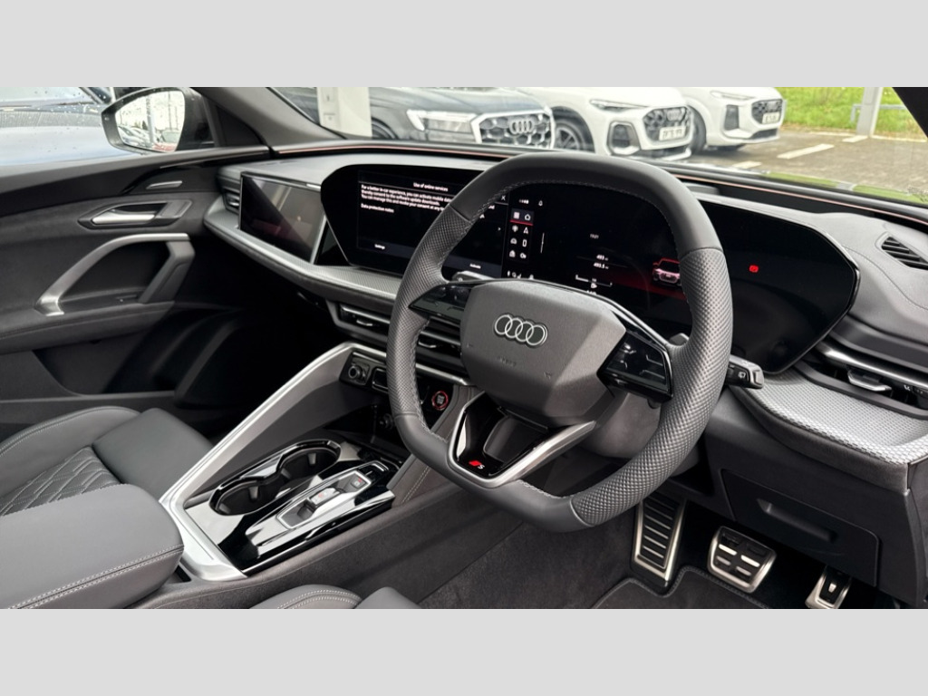 Audi Q5 SQ5 TFSI Quattro Launch Edition 5dr S Tronic Adaptive cruise assist plus with steering intervention, Advanced driver attention alert, Audi application store, Audi connect emergency call and service, Audi digital key, Audi drive select, Audi smartphone interface, Audi virtual cockpit plus with 11.9" OLED colour display, Camera based traffic sign recognition, Fatigue monitor, Front cross traffic intersection assist, Garage door opener, Lane change assistant with exit warning system, rear cross traffic alert and rear turn assist, Lane departure warning with emergency assist, MMI 10.9" front passenger touch display, MMI navigation plus with high resolution 14.5" OLED touchscreen colour display, Park assist plus, Parking system plus with 360 display, PAS, Reversing camera, Swerve assist and turn assist, Top view camera, Traffic sign based speed limiter, S adaptive air suspension, 2 USB-C ports in both the front and rear, DAB Digital radio, Smartphone compartment with wireless charging, Acoustic glass for front door windows, Active digital light signatures - Six additional combinations of active daytime running light signature, Auto dimming rear view mirror, Black door mirrors, Black roof rails, Coming/leaving home lighting function, Contrast bumpers in mythos black metallic paint finish, Digital OLED tail lights including communication light, Electrically adjustable heated and folding + automatically dimming exterior mirrors, Entry LED with red and white rhombus S logo projection, Exhaust tailpipes in dark chrome, Front and rear electric windows, Front door sill trims with aluminium inlays, illuminated with 'S' logo, Grill frame, inlay and front air inlets in matt anthracite chrome, Headlight cleaning system, Heated rear window, High beam assist, High gloss window surrounds, Logo projection light in exterior mirrors, Matrix LED headlights, Memory function for door mirrors, Privacy glass, Projection third brake light for rear window in LED, Radiator grille in phantom black, Rear and side windows with heat insulating glass, Rear honeycombe grille in matt black with inlay in matt anthracite chrome, Rear side wing doors, Rear wash/wipe, Red S rhombus badging with 'S' lettering on rear, S exterior styling, Towbar preparation, Windscreen with acoustic glazing, 3 rear head restraints, 3 seat bench in 2nd row, 3 spoke leather steering wheel with multi-function buttons with touch control, flattened on top and bottom, with S badging and contrast stitching, 40:20:40 split folding rear seat bench with centre armrest and cup holders, Comfort centre armrest, Deluxe 3 zone electronic climate control, Electric steering wheel adjustment, Electrically adjustable front seats with memory function for driver's side, Front and rear floor mats, Front seat ventilation, Front sport seats with integrated head restraints, Headlining in black cloth, Heated front seats, Heated outer rear seats, Heated steering wheel, i-Size child seat mounting on the front passenger side and outer rear seats, i-Size and top tether on the outer rear seats, Interior trim in aluminium look, Luggage compartment lid, electrically opening and closing, Perforated fine nappa leather with diamond stitching incl ventilation and massage function for front seats, Pneumatically adjustable lumbar support with massage function for front seats, Single front passenger seat, Softwrap in Dinamica, Stainless steel pedals and footrest, Steering wheel grips in perforated leather and shift paddles, Ambient lighting package plus - Q5, Black styling package plus - Q5, Sound and Vision pack - Q5, Storage and luggage compartment pack - Q5, Vanadium pack - Q5, 3x3 point rear seatbelts, ABS, Acoustic vehicle alerting system, Convenience key with safelock, Driver and front passenger airbag with passenger airbag deactivation, Electric child safety locks, First aid kit with warning triangle and high visibility vests, Front emergency brake assist, Front side airbags with head airbag system and front interaction airbag, Hill hold assist, Occupant detection in rear seat area, Proactive passenger protection system for front, sides and rear, Red brake calipers, Side airbags in front and rear with head airbag system and front interaction airbag, Tyre pressure loss indicator, Anti theft alarm, Anti-theft wheel bolts, Remote control key with SAFELOCK and keyless go, Black dashboard with contrast stitching, Carbon micro twill structure inlay, Steel grey seat stitching, Upper and lower interior elements in dinamica microfiber, 21" 5 arm split black metallic, gloss turned finish Audi sport alloy wheels, Tyre repair kit