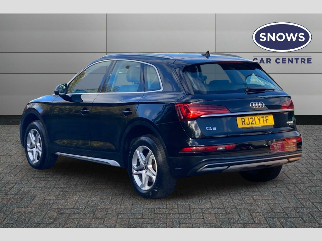 We are pleased to offer this 2 owner Audi Q5 2.0 TDI 40 Sport finished in Black with Black leather upholstery. Its comes complete with a full service history completed October 2021 @ 12907 miles, July 2023 @ 23903 miles, October 2024 @ 43307 miles and last completed June 2025 @ 51444 miles. This Q5 is equipped with a powerful 2.0 litre diesel engine and Audi's renowned four wheel drive system, ensuring confident performance in all conditions. Inside, you'll find the convenience of the Audi Phone Box with wireless charging, alongside the Audi Wireless Smartphone Interface which seamlessly integrates your Android Auto or Apple CarPlay. Parking is made effortless with front and rear parking sensors, acoustic warnings, and a reversing camera, all contributing to the vehicle's practical appeal. Experience a refined driving environment with the Deluxe 3-Zone Electronic Climate Control, allowing personalised comfort for all occupants. The Q5 TDI Sport boasts a generous boot space, perfect for luggage or shopping. With a fuel economy of 45 mpg, this Audi offers an efficient way to travel. Furthermore, its acceleration from 0 to 62 mph in just 7.6 seconds demonstrates a responsive and engaging driving experience, setting it apart from other vehicles in its class. Every Snows Car Centre vehicle we supply is hand picked by our team from the many part exchanges we generate from our manufacturer sites or sourced by our expert buying team. For further peace of mind why not protect your car with Snows market leading comprehensive extended warranties, finance packages G3 Paint Protection and insurance products. All of our vehicles are fully inspected & prepared to a high standard through our Snows franchise workshop. Snows Group, the driving spirit for over 50 years. PART EXCHANGE WELCOME AND NO ADMIN FEES. Audi Phone Box with Wireless Charging, 18in Alloy Wheels - 8J 5-Twin-Spoke - Dynamic Design, 2 USB Charging Ports -1 x USB-A and 1 x USB-C Port, 3-Spoke Multi-Function Leather Steering Wheel with Paddles, 6-Airbag System, Air Inlets in Matt Titanium Black with Blades in Matt Aluminium Silver, Aluminium Roof Rails, Anti Theft Locking Wheel Bolts, Anti-Theft Alarm, Audi Connect Navigation and Infotainment Services Plus - 3 Year Trial, Audi Connect Safety and Service, Audi Drive Select, Audi Pre-Sense City, Audi Virtual Cockpit Plus - 12.3in Screen and Three Different Layout Designs, Audi Wireless Smartphone Interface, Auto-Dimming Rear-View Mirror, Automatic Headlight Adjustment, Automatic Headlight and Windscreen Wiper Activation, Automatic Start-Stop with Coasting Functionality and Efficiency Programme, Bluetooth Interface, Body Coloured Door Mirrors, Chrome-Plated Exhaust Trim, Cloth Headlining in Silver, Cruise Control System with Speed Limiter, DAB Digital Radio, Deluxe 3-Zone Electronic Climate Control, Door Mirrors - Electrically Folding and Heated and Auto Dimming, Door Sill Trims with Aluminium Inlays, Dynamic Suspension, ESC - Electronic Stabilisation Control inc ABS - ASR and EDL, Electric Child Locks for Rear Doors, Electric Windows - Front, Electromechanical Parking Brake, Electromechanical Power Steering, First Aid Kit and Warning Triangle, Front Centre Armrest, Front and Rear Floor Mats, Front and Rear Parking Sensor with Acoustic Warning, Heated Front Seats, High Gloss Package, Hill Descent Control, Hill Hold Assist, ISOFIX Child Seat Mounting and Top Tether, Inlays - Aluminium Rhombus, Keyless Go, LED Headlights with LED Tail Lights, LED Interior Lighting Pack, MMI Navigation Plus with 10.1in Touchscreen, Manual Seat Adjustment with 4-Way Electric Lumbar Support, Matt Twilight Grey Radiator Grille with Chrome Vertical Struts, Multi Collision Brake Assist, Pop-Up Bonnet for Pedestrian Protection, Power Operated Tailgate, Rear Chrome Trim Strips Below Lights, Rear Diffuser Strip in Selenite Silver, Rear Spoiler, Removable Luggage Compartment Floor, Reversing Camera, Roof Bars, Seat Belt Monitoring, Side Skirts in Matt Selentine Silver, Split Folding 3 Seater - Rear Seat Bench in 3 Parts - 40-20-40 with Rear Centre Armrest, Sun Visors - with Vanity Mirror, Tool Kit, Trunk Roller Cover, Tyre Pressure Warning Light, Tyre Repair Kit, Underbody Protection in Matt Selenite Silver, Voice Control System, Windscreen with Acoustic Glass, quattro On Demand