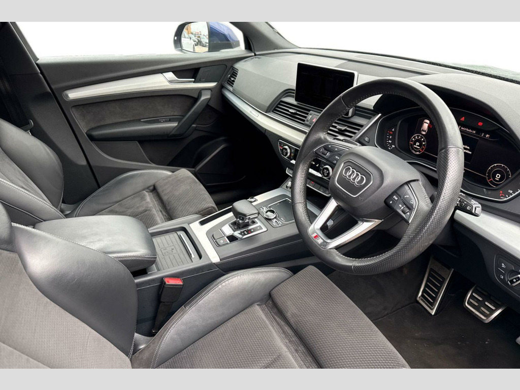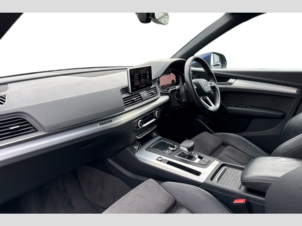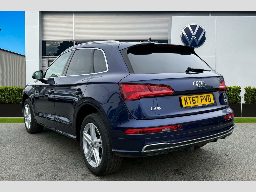 Inside, the Q5 offers a comfortable and refined experience. The Deluxe 3 zone climate control allows everyone to set their preferred temperature, while the heated front seats provide extra comfort on colder days. Parking is made effortless thanks to the Audi Parking System Plus, which includes front and rear sensors. With a substantial boot space, this Q5 is practical for all your needs, and its impressive 0-62mph acceleration in just 6.3 seconds demonstrates its dynamic capabilities. Furthermore, its towing weight of 2400 kg makes it a versatile choice for those who need to tow. Audi Phone Box with Wireless Charging, Technology Package, Door Mirrors - Folding, Audi Virtual Cockpit, 19in Alloy Wheels - 5-Twin-Spoke Star Design - Diamond Cut Finish, 2 x SDXC Card Readers, 2 x USB Charging Ports and 1 x AUX-IN, 4-Way Electric Lumbar Support, 6-Airbag System, Air Inlet Horizontal Inlay in Matt Aluminium, Aluminium Roof Rails, Anti Theft Locking Wheel Bolts, Anti-Theft Alarm, Audi Connect Infotainment Services - 3 Month Trial, Audi Connect Safety and Service - e-call, Audi Drive Select, Audi Parking System Plus, Audi Pre-Sense City, Audi Smartphone Interface, Audi Sound System, Auto-Dimming Rear-View Mirror, Automatic Headlight Adjustment, Bluetooth Interface, Body Coloured Door Mirrors, CD Drive, Cloth Headlining in Black, Colour Drivers Information System with 7in Display, Comfort Dynamic Suspension, Contrast Stitching on Seats - Steering Wheel and Gear Lever Gaiter, Cruise Control with Speed Limiter, DAB Digital Radio, Deluxe 3-Zone Climate Control, Door Inserts in Matt Selenite Silver, Door Mirrors - Electrically Adjustable and Heated with Integrated LED Side Indicators, ESC - Electronic Stabilisation Control inc ABS - ASR and EDL, Electric Windows - Front and Rear, Electromechanical Parking Brake, Electromechanical Power Steering, First Aid Kit and Warning Triangle, Front Centre Armrest, Front and Rear Floor Mats, Gear Lever Knob in Black Perforated Leather, Heated Front Seats, High Multi-function 3-Spoke Leather Steering Wheel with Grips in Perforated Leather and S Badging with Gear-Shift Paddles, High-Gloss Package, Honeycomb Side Air Inlet Grille in Titanium Black, ISOFIX Child Seat Mounting and Top Tether, Illuminated Door Sill Trims with S Logo, Inlays - Matt Brushed Aluminium, Keyless Go, LED Headlights featuring Q Signature Design with LED Rear Lights and Dynamic Rear Indicators, LED Interior Lighting Pack, LED Rear Lights, Light and Rain Sensor, Luggage Compartment Cover, Luggage Compartment Mat, MMI Navigation - SD Card Based, MMI Radio Plus with 7in Colour MMI Screen and MMI Controller, Manual Seat Adjustment, Non-Smoking Package, Pedals in Stainless Steel, Pop-Up Bonnet for Pedestrian Protection, Power Operated Tailgate, Privacy Glass with Acoustic Glazing For Front Windows, Radiator Grille in Matt Twilight Grey with Horizontal Matt Aluminium Struts, Rear Diffuser in Body Colour with Matt Aluminium Silver Surrounds, Remote Central Locking, Removable Luggage Compartment Floor, Removable Net Partition, S Line Badges on the Front Wing Panels, S Line Front and Rear Bumpers, S Line Side Skirts, S line Rear Spoiler, Seat Belt Monitoring, Side and Rear Windows in Heat-Insulating Glass, Split Folding Rear Seat Bench, Stainless Steel Loading Sill Protector, Tool Kit and Car Jack, Towbar Preparation, Tyre Pressure Warning Light, Tyre Repair Kit, Underbody Protection in Matt Selenite Silver, Voice Control System, Windscreen with Acoustic Glass, quattro On Demand