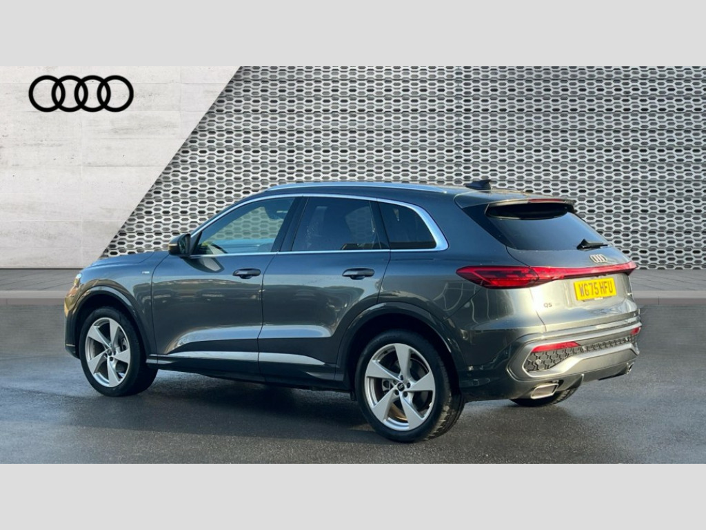 Audi Q5 2.0 TFSI Quattro S Line 5dr S Tronic Adaptive cruise control, Advanced driver attention alert, Audi application store, Audi connect emergency call and service, Audi drive select, Audi smartphone interface, Audi virtual cockpit plus with 11.9" OLED colour display, Camera based traffic sign recognition, Fatigue monitor, Front cross traffic intersection assist, Lane departure warning system, MMI navigation plus with high resolution 14.5" OLED touchscreen colour display, Park assist plus, Parking system plus with 360 display, PAS, Reversing camera, Traffic sign based speed limiter, 2 USB-C ports in both the front and rear, Audi sound system impressive sound with 8 loudspeakers including centre speaker and subwoofer, 6-channel amplifier with a total output of 180 watts, DAB Digital radio, Smartphone compartment with wireless charging, Aluminium roof rails, Auto dimming rear view mirror, Body coloured door mirrors, Coming/leaving home lighting function, Electrically adjustable heated and folding + automatically dimming exterior mirrors, Front and rear electric windows, Front door sill trims with aluminium inlays, illuminated with 'S' logo, Grill frame, inlay and front air inlets in matt anthracite chrome, Headlight cleaning system, Heated rear window, High beam assist, High gloss window surrounds, LED headlights plus incl. digital DRL, dynamic coming and leaving home function with turning/all weather/motorway/manouevring and intersection lights, LED rear lights pro incl. dynamic rear indicators and illuminated light strip with animated coming and leaving home function, Logo projection light in exterior mirrors, Privacy glass, Projection third brake light for rear window in LED, Radiator grille in phantom black, Rear and side windows with heat insulating glass, Rear honeycombe grille in matt black with inlay in matt anthracite chrome, Rear side wing doors, Rear wash/wipe, S Line badge on the front wings, S line bumpers in contrasting Volcano grey metallic paint finish, Towbar preparation, Windscreen with acoustic glazing, 3 rear head restraints, 3 seat bench in 2nd row, 3 spoke leather steering wheel with multi-function buttons with touch control, flattened on top and bottom, with S badging and contrast stitching, Comfort centre armrest front, Deluxe 3 zone electronic climate control, Front and rear floor mats, Front sport seats with integrated head restraints, Headlining in black cloth, Heated front seats, i-Size child seat mounting on the front passenger side and outer rear seats, i-Size and top tether on the outer rear seats, Interior trim in aluminium look, Luggage compartment lid, electrically opening and closing, Manual steering column adjustment, S embossed logo on front sport seats, Single front passenger seat, Softwrap in leatherette, Stainless steel pedals and footrest, Steering wheel grips in perforated leather and shift paddles, Ambient lighting package plus - Q5, 3x3 point rear seatbelts, ABS, Acoustic vehicle alerting system, Convenience key with safelock, Driver and front passenger airbag with passenger airbag deactivation, Electric child safety locks, First aid kit with warning triangle and high visibility vests, Front emergency brake assist, Front side airbags with head airbag system and front interaction airbag, Hill hold assist, Rear seat occupant reminder, Tyre pressure loss indicator, Anti theft alarm, Anti-theft wheel bolts, Accent surfaces and control buttons in gloss black, Anthracite matt brushed aluminium inlays with linear embossing, Black dashboard with contrast stitching, Upper and lower interior elements in artificial leather, Tyre repair kit