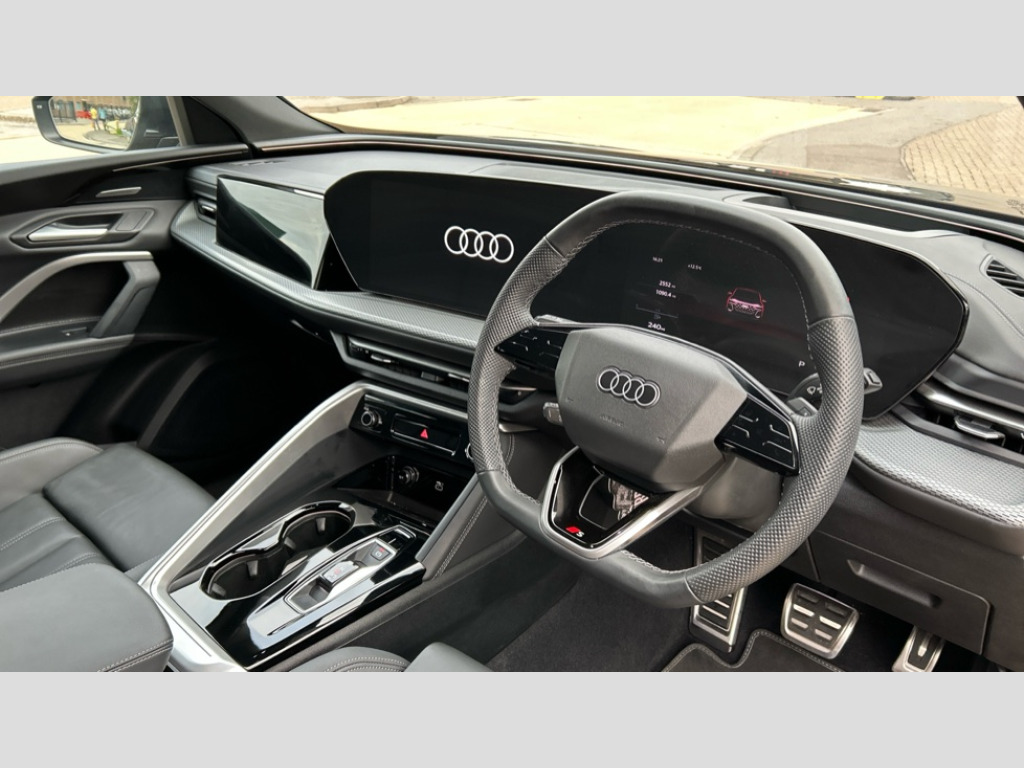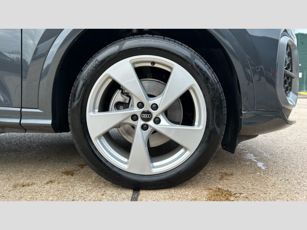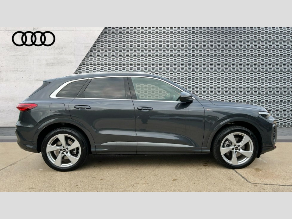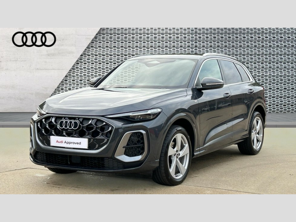 Audi Q5 2.0 TFSI Quattro S Line 5dr S Tronic Adaptive cruise control, Advanced driver attention alert, Audi application store, Audi connect emergency call and service, Audi drive select, Audi smartphone interface, Audi virtual cockpit plus with 11.9" OLED colour display, Camera based traffic sign recognition, Fatigue monitor, Front cross traffic intersection assist, Lane departure warning system, MMI navigation plus with high resolution 14.5" OLED touchscreen colour display, Park assist plus, Parking system plus with 360 display, PAS, Reversing camera, Swerve assist and turn assist, Traffic sign based speed limiter, 2 USB-C ports in both the front and rear, DAB Digital radio, Smartphone compartment with wireless charging, Aluminium roof rails, Auto dimming rear view mirror, Body coloured door mirrors, Coming/leaving home lighting function, Electrically adjustable heated and folding + automatically dimming exterior mirrors, Front and rear electric windows, Front door sill trims with aluminium inlays, illuminated with 'S' logo, Headlight cleaning system, Heated rear window, High beam assist, High gloss window surrounds, Inlay and front air inlets in matt anthracite chrome, LED headlights plus incl. digital DRL, dynamic coming and leaving home function with turning/all weather/motorway/manouevring and intersection lights, LED rear lights pro incl. dynamic rear indicators and illuminated light strip with animated coming and leaving home function, Logo projection light in exterior mirrors, Privacy glass, Projection light for rear window, Radiator grille in phantom black, Rear and side windows with heat insulating glass, Rear honeycombe grille in matt black with inlay in matt anthracite chrome, Rear side wing doors, Rear wash/wipe, S Line badge on the front wings, S line bumpers in contrasting Volcano grey metallic paint finish, Towbar preparation, Windscreen with acoustic glazing, 3 rear head restraints, 3 seat bench in 2nd row, 3 spoke leather steering wheel with multi-function buttons with touch control, flattened on top and bottom, with S badging and contrast stitching, 40:20:40 split folding rear seat bench with centre armrest and cup holders, Comfort centre armrest, Deluxe 3 zone electronic climate control, Front and rear floor mats, Front seats with manual adjustment for position and 4-way electric lumbar support, Front sport seats with integrated head reastrains, Headlining in black cloth, Heated front seats, i-Size child seat mounting on the front passenger side and outer rear seats, i-Size and top tether on the outer rear seats, Interior trim in aluminium look, Luggage compartment lid, electrically opening and closing, Manual steering column adjustment, Single front passenger seat, Softwrap in leatherette, Stainless steel pedals and footrest, Steering wheel grips in perforated leather and shift paddles, Ambient lighting package plus - Q5, Sound and Vision pack - Q5, Storage and luggage compartment pack - Q5, 3x3 point rear seatbelts, ABS, Acoustic vehicle alerting system, Driver and front passenger airbag with passenger airbag deactivation, Electric child safety locks, First aid kit with warning triangle and high visibility vests, Front emergency brake assist, Front side airbags with head airbag system and front interaction airbag, Hill hold assist, Rear seat occupant reminder, Tyre pressure loss indicator, Anti theft alarm, Anti-theft wheel bolts, Remote control key with SAFELOCK and keyless go, Accent surfaces and control buttons in gloss black, Anthracite matt brushed aluminium inlays with linear embossing, Black dashboard with contrast stitching, Upper and lower interior elements in artificial leather, Tyre repair kit