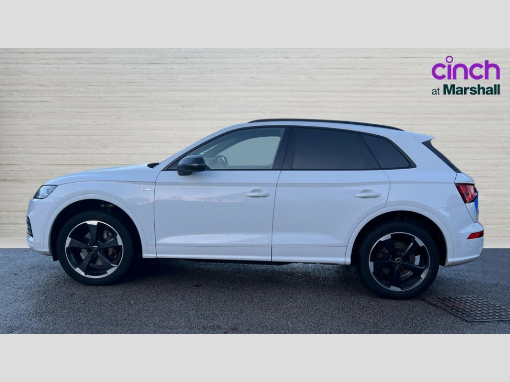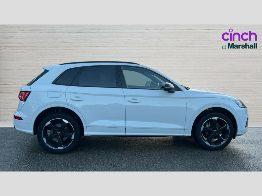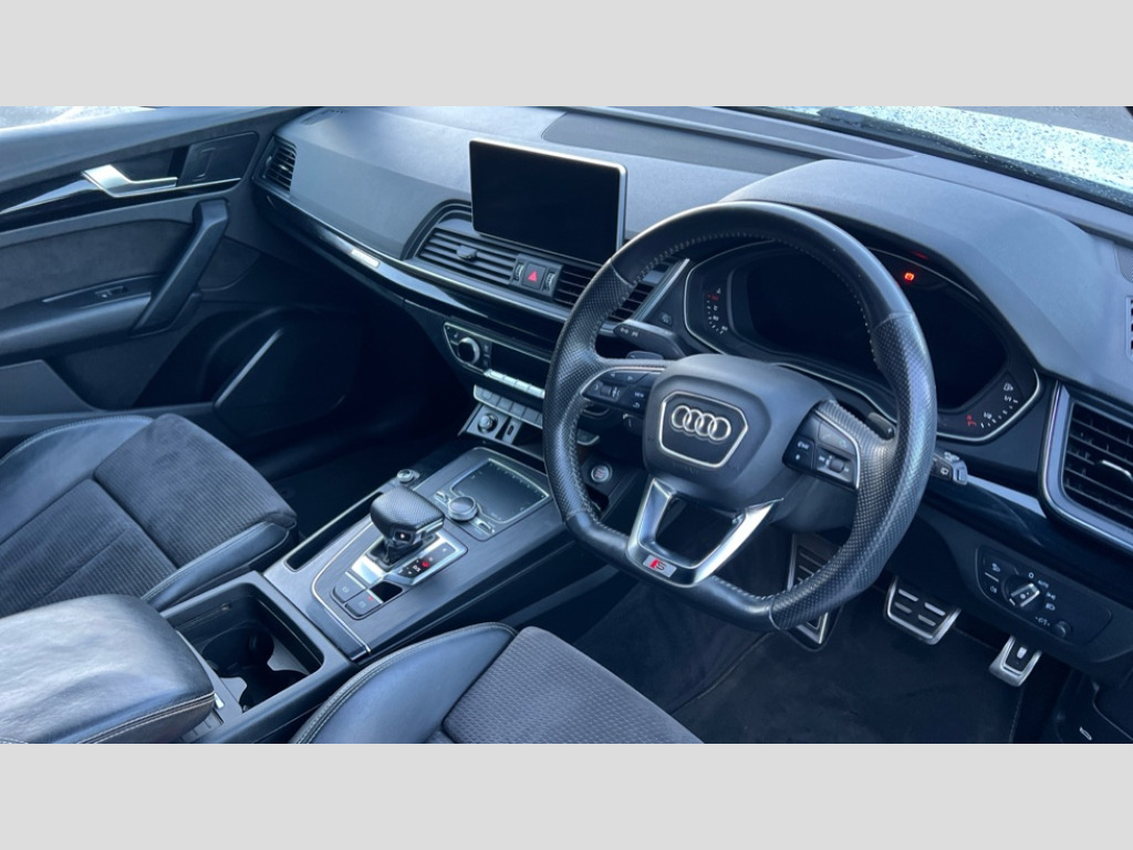 Audi Q5 40 TDI Quattro Black Edition 5dr S Tronic 7" Colour driver information system, Audi connect infotainment services, Audi connect safety and service (e-call), Audi drive select, Audi parking system plus with front and rear sensors, Audi smartphone interface, Automatic start-stop system with coasting functionality and efficiency programme, Electro - mechanical power assisted steering, MMI Navigation, Mobile telephone preparation - bluetooth interface, Power tailgate, Service interval indicator, Voice control system, Diesel particulate filter, Dynamic suspension, Quattro on demand, 2 x USB charging port with aux input socket, 2x SD card slot, CD player, DAB Digital radio, MMI radio plus with 7" colour MMI screen and MMI controller, Acoustic windscreen, Air inlets in matt titanium black with blades in matt aluminium silver, Auto dimming rear view mirror, Automatic headlight levelling, Black roof rails, Body colour bumpers, Body colour rear diffuser with matt aluminium silver surrounds, Body colour underbody protection, Chrome exhaust tailpipe, Electric adjustable/heated/folding door mirrors, Front and rear electric windows, High beam assistant, LED headlights with LED rear lights + dynamic rear indicators, Light and rain sensor for auto activation of lights and windscreen wipers, Loading sill protector in stainless steel, Privacy glass with front acoustic glazing, Rear wiper, Titanium black door mirror housings, 3 rear headrests, 3 spoke flat bottom high multi-function leather steering wheel, 3 zone climate control, 40:20:40 split folding rear seat with rear centre armrest, Black cloth headlining, Contrast stitching on seats, steering wheel and gear lever gaiter, Front centre armrest, Front sports seats, Front/rear floor mats, Heated front seats, Height adjustable front head restraints, Height/reach adjustable steering column, ISOFIX child seat mounting and top tether, Luggage compartment carpet, Manual seat adjustment with 4-way electric lumbar support, Perforated leather gearknob, Removable luggage compartment floor, Stainless steel pedals, Sunvisors with vanity mirrors, Trunk roller cover, LED interior light pack - Q5, Non Smokers pack, Titanium black styling pack - Q5, 3 point seatbelts on all seats, 6 airbags - Driver, front passenger, curtain and side airbags, Electromechanical parking brake, Electronic stabilisation control including ABS, ASR and EDL, Front passenger airbag deactivation, Hill descent control, Hill hold assist, Multi collision brake assist, Pop-up bonnet for pedestrian protection, Pre sense city, Seat belt force limiter, Seatbelt monitoring, Tyre pressure warning, Warning triangle and first aid kit, Anti theft alarm, Anti-theft wheel bolts, Keyless Go access/ignition system, Remote central locking, Black piano finish inlays, 20" 5 arm rotor design sport alloy wheels in gloss anthracite black, diamond cut finish, Tool kit