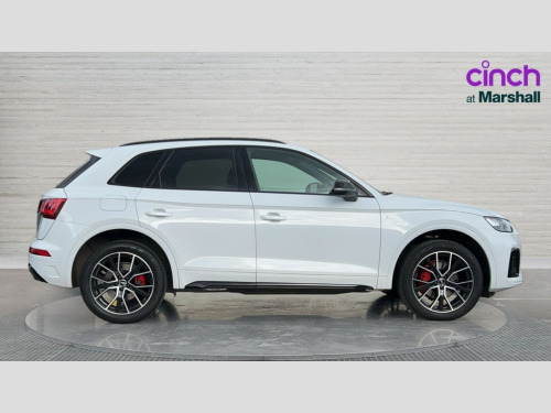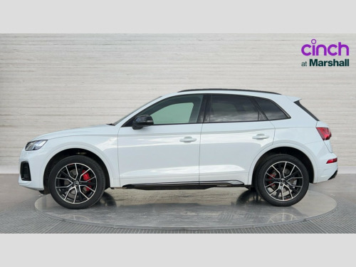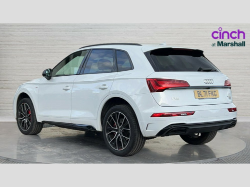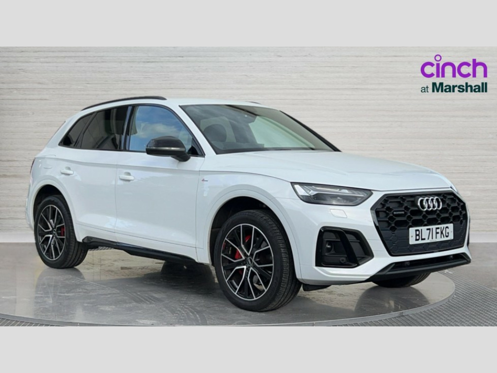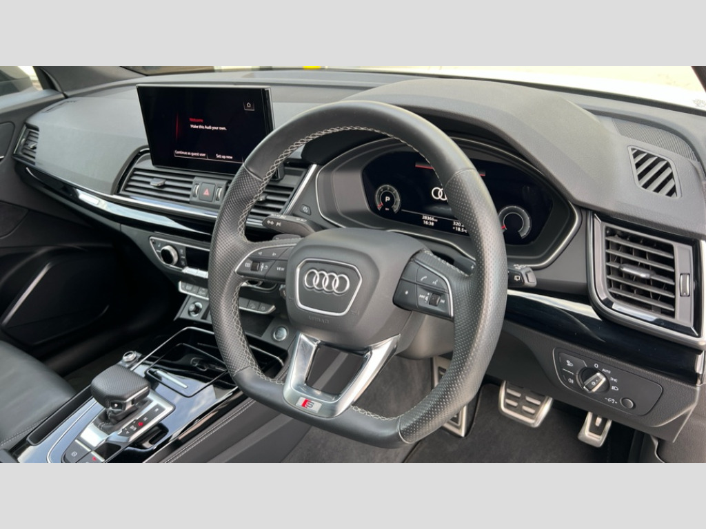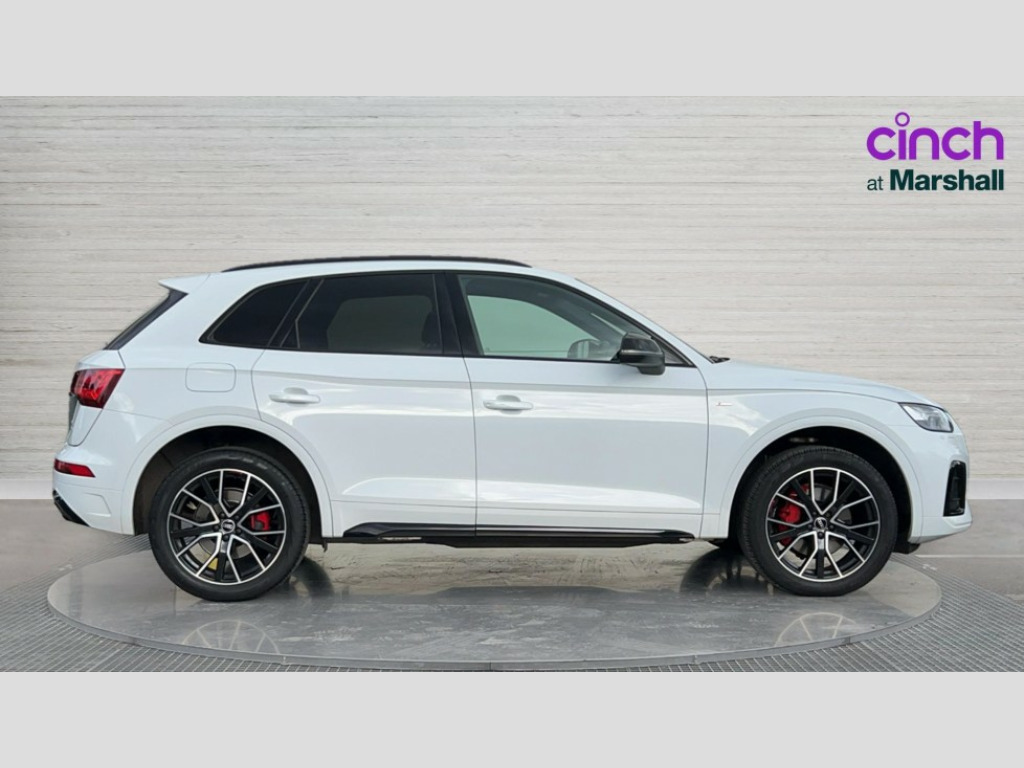 Audi Q5 40 TDI Quattro Edition 1 5dr S Tronic Audi connect safety and service (e-call), Audi connect with Amazon Alexa Integration, Audi drive select, Audi virtual cockpit plus with 12.3" screen and three different layout designs, Audi wireless smartphone interface, Automatic start-stop system with coasting functionality and efficiency programme, Bluetooth interface, Electro - mechanical power assisted steering, MMI navigation plus with 10.1" touch screen, Power tailgate, Reversing camera, Service interval indicator, Voice control system with Audi hotword activation "Hey Audi", Diesel particulate filter, Quattro on demand, S line sports suspension, 2 x USB charging port with aux input socket, DAB Digital radio, Acoustic windscreen, Audi beam with Audi rings logo, Audi matrix LED headlights with dynamic front and rear indicators, Audi rings at front and rear in black, Audi rings decal on rear doors, Auto dimming door mirrors, Auto dimming rear view mirror, Automatic headlights and windscreen wipers, Black door mirrors, Black roof rails, Body colour bumpers, Body colour underbody protection, Chrome plated exhaust trims, Daytime running lights, Door sills in Selenite silver, Electric adjustable/heated/folding door mirrors, Front air inlet surrounds in titanium black, Front and rear electric windows, Headlight washers, High gloss black B pillar trims and triangular rear door trim, High level LED brake light, Rear chrome trim strip below lights, Rear privacy glass and rear side windows, Rear side wing doors, Rear spoiler, Rear wiper, Roof bars, Without model and engine badging at rear, 3 rear headrests, 4 way electric lumbar support for driver and front passenger, 40:20:40 split folding 3 rear bench seat in 2nd row with rear centre armrest, Black cloth headlining, Comfort front centre armrest, Contrast stitching on seats, steering wheel and gear lever gaiter, Deluxe 3 zone electronic climate control, Electrically adjustable front seats, Fine Nappa leather upholstery with diamond pattern contrast stitching + front sport seats with S embossed logo, Front/rear floor mats, Gear lever in black leather, Heated front seats, Height adjustable front head restraints, Height/reach adjustable steering column, Illuminated door sill trims with S logo, ISOFIX child seat mounting and top tether, Luggage compartment cover, Rear seat bench plus, Removable luggage compartment floor, Single front passenger seat, Stainless steel pedals, Sunvisors with vanity mirrors, Black styling package - Q5 Edition 1, Extended interior upholstery pack - Q5, Extended LED Interior multi coloured Lighting Pack - Q5, 3 point seatbelts on all seats, 6 airbags - Driver, front passenger, curtain and side airbags, Electrically operated child locks on rear doors, Electromechanical parking brake, Electronic stabilisation control including ABS, ASR and EDL, Front and rear brake calipers painted in red, Front passenger airbag deactivation, Hill descent control, Hill hold assist, Multi collision brake assist, Pop-up bonnet for pedestrian protection, Pre sense city, Seat belt force limiter, Seatbelt monitoring, Tyre pressure warning, Warning triangle and first aid kit, Anti theft alarm, Anti-theft wheel bolts, Keyless Go access/ignition system, Remote central locking, Piano black finish inlay