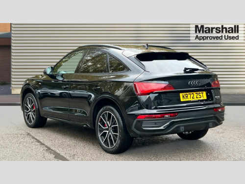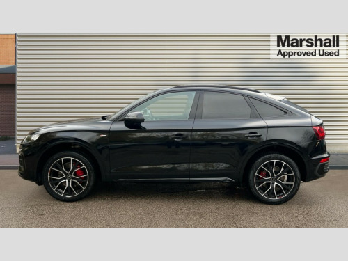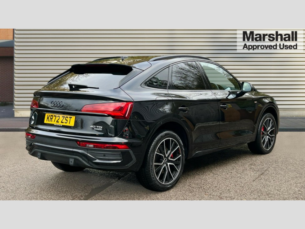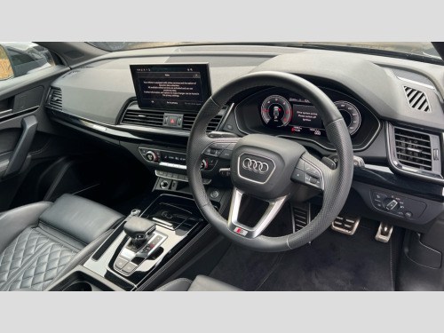 Audi Q5 40 TDI Quattro Edition 1 5dr S Tronic Audi connect safety and service (e-call), Audi connect with Amazon Alexa Integration, Audi drive select, Audi virtual cockpit plus with 12.3" screen and three different layout designs, Audi wireless smartphone interface, Automatic start-stop system with coasting functionality and efficiency programme, Bluetooth interface, Electro - mechanical power assisted steering, MMI navigation plus with 10.1" touch screen, Power tailgate, Reversing camera, Service interval indicator, Voice control system with Audi hotword activation "Hey Audi", Diesel particulate filter, Quattro on demand, S line sports suspension, 2 x USB charging port with aux input socket, DAB Digital radio, Acoustic windscreen, Audi beam with Audi rings logo, Audi matrix LED headlights with dynamic front and rear indicators, Audi rings at front and rear in black, Audi rings decal on rear doors, Auto dimming door mirrors, Auto dimming rear view mirror, Automatic headlight adjustment, Automatic headlights and windscreen wipers, Black roof rails, Body colour underbody protection, Chrome plated exhaust trims, Daytime running lights, Door sills in Selenite silver, Electric adjustable/heated/folding door mirrors, Front air inlet surrounds in aluminium, Front and rear electric windows, Headlight washers, High gloss black B pillar trims and triangular rear door trim, High level LED brake light, Rear chrome trim strip below lights, Rear privacy glass and rear side windows, Rear side wing doors, Rear spoiler, Rear wiper, Roof bars, Without model and engine badging at rear, 3 rear headrests, 4 way electric lumbar support for driver and front passenger, 40:20:40 split folding 3 rear bench seat in 2nd row with rear centre armrest, Black cloth headlining, Comfort front centre armrest, Contrast stitching on seats, steering wheel and gear lever gaiter, Deluxe 3 zone electronic climate control, Electrically adjustable front seats, Fine Nappa leather upholstery with diamond pattern contrast stitching + front sport seats with S embossed logo, Front head restraints, Front/rear floor mats, Gear lever in black leather, Heated front seats, Height/reach adjustable steering column, Illuminated door sill trims with S logo, ISOFIX child seat mounting and top tether, Rear seat bench plus, Removable luggage compartment floor, Single front passenger seat, Stainless steel pedals, Sunvisors with vanity mirrors, Trunk roller cover, Artificial leather pack - Q5, Black styling package - Q5 Edition 1, Extended LED Interior multi coloured Lighting Pack - Q5, 3 point seatbelts on all seats, 6 airbags - Driver, front passenger, curtain and side airbags, Electrically operated child locks on rear doors, Electromechanical parking brake, Electronic stabilisation control including ABS, ASR and EDL, Front and rear brake calipers painted in red, Front passenger airbag deactivation, Hill descent control, Hill hold assist, Multi collision brake assist, Pop-up bonnet for pedestrian protection, Pre sense city, Seat belt force limiter, Seatbelt monitoring, Tyre pressure warning, Warning triangle and first aid kit, Anti theft alarm, Anti-theft wheel bolts, Keyless Go access/ignition system, Remote central locking, Piano black finish inlay