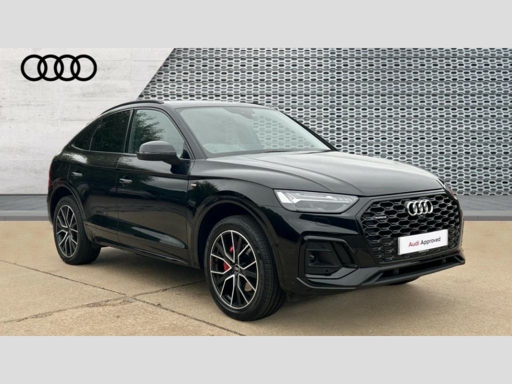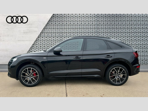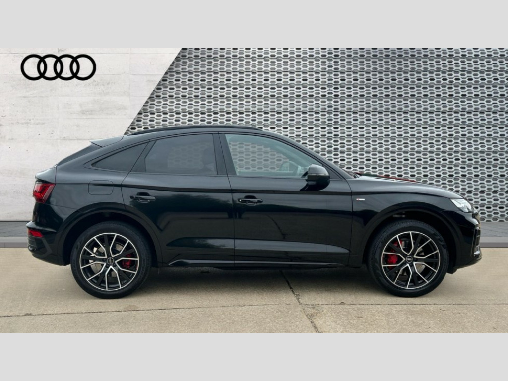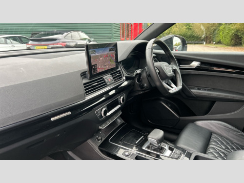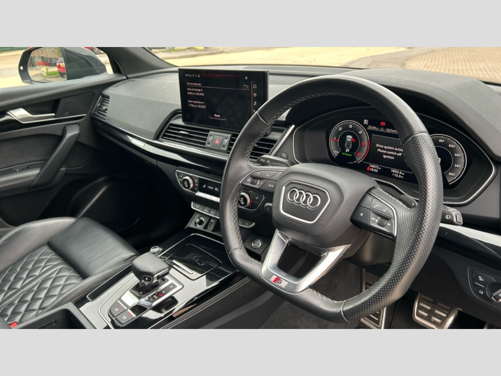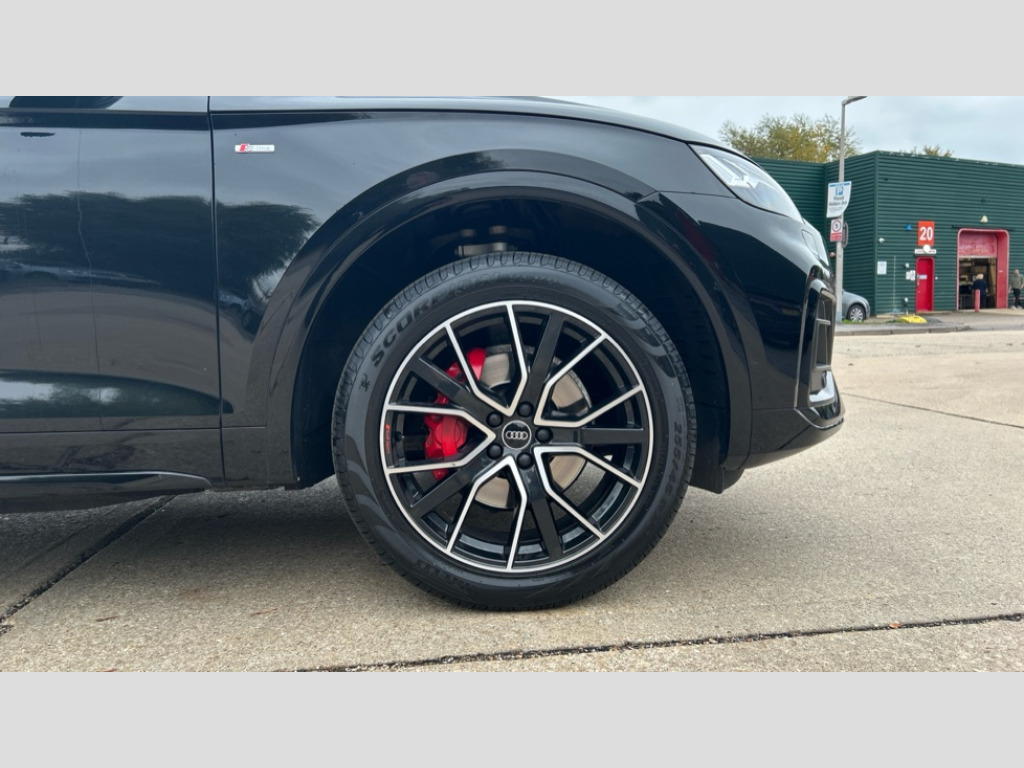 Audi Q5 40 TDI Quattro Edition 1 5dr S Tronic Acoustic front and rear parking sensor, Advanced key with electric hands free boot opening system, Audi connect safety and service (e-call), Audi connect with Amazon Alexa Integration, Audi drive select, Audi virtual cockpit plus with 12.3" screen and three different layout designs, Audi wireless smartphone interface, Automatic start-stop system with coasting functionality and efficiency programme, Bluetooth interface, Electro - mechanical power assisted steering, MMI navigation plus with 10.1" touch screen, Power tailgate, Reversing camera, Service interval indicator, Voice control system with Audi hotword activation "Hey Audi", Diesel particulate filter, Quattro on demand, S line sports suspension, 2 x USB charging port with aux input socket, Bang + Olufsen sound system, DAB Digital radio, Acoustic windscreen, Audi beam with Audi rings logo, Audi matrix LED headlights with dynamic front and rear indicators, Audi rings at front and rear in black, Audi rings decal on rear doors, Auto dimming door mirrors, Auto dimming frameless rear view mirror, Automatic headlight adjustment, Automatic headlights and windscreen wipers, Black roof rails, Body colour underbody protection, Chrome plated exhaust trims, Daytime running lights, Door sills in Selenite silver, Electric adjustable/heated/folding door mirrors, Front air inlet surrounds in anthracite black, Front and rear electric windows, Headlight washers, High gloss black B pillar trims and triangular rear door trim, High level LED brake light, Rear chrome trim strip below lights, Rear privacy glass and rear side windows, Rear side wing doors, Rear spoiler, Rear wiper, Roof bars, Without model and engine badging at rear, 3 rear headrests, 4 way electric lumbar support for driver and front passenger, 40:20:40 split folding 3 rear bench seat in 2nd row with rear centre armrest, Black cloth headlining, Comfort front centre armrest, Contrast stitching on seats, steering wheel and gear lever gaiter, Deluxe 3 zone electronic climate control, Electrically adjustable front seats, Fine Nappa leather upholstery with diamond pattern contrast stitching + front sport seats with S embossed logo, Front head restraints, Front/rear floor mats, Gear lever in black leather, Heated front seats, Height/reach adjustable steering column, Illuminated door sill trims with S logo, Rear seat bench plus-adjust for forwards/backwards position/backrest angle, cupholders in the armrest, load through hatch and remote backrest release, Removable luggage compartment floor, Single front passenger seat, Stainless steel pedals, Sunvisors with vanity mirrors, Trunk roller cover, Black styling package - Q5 Edition 1, Extended LED Interior multi coloured Lighting Pack - Q5, 3 point seatbelts on all seats, 6 airbags - Driver, front passenger, curtain and side airbags, Electrically operated child locks on rear doors, Electromechanical parking brake, Electronic stabilisation control including ABS, ASR and EDL, First aid kit with warning triangle and vests, Front and rear brake calipers painted in red, Front passenger airbag deactivation, Hill descent control, Hill hold assist, ISOFIX child seat mounting for front passenger seat and ISOFIX child seat mounting with Top Tether for outer rear seats, Multi collision brake assist, Pop-up bonnet for pedestrian protection, Pre sense city, Seat belt force limiter, Seatbelt monitoring, Tyre pressure warning, Anti theft alarm, Anti-theft wheel bolts, Keyless Go access/ignition system, Remote central locking, Air vents inserts and centre console in gloss black, Piano black finish inlay