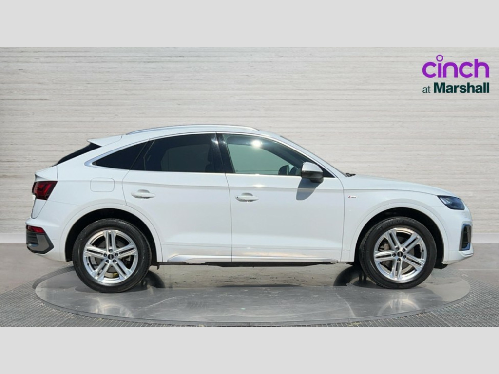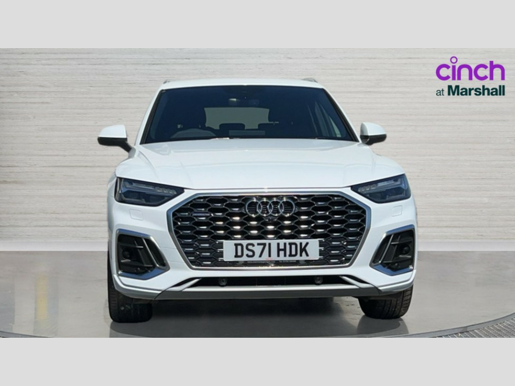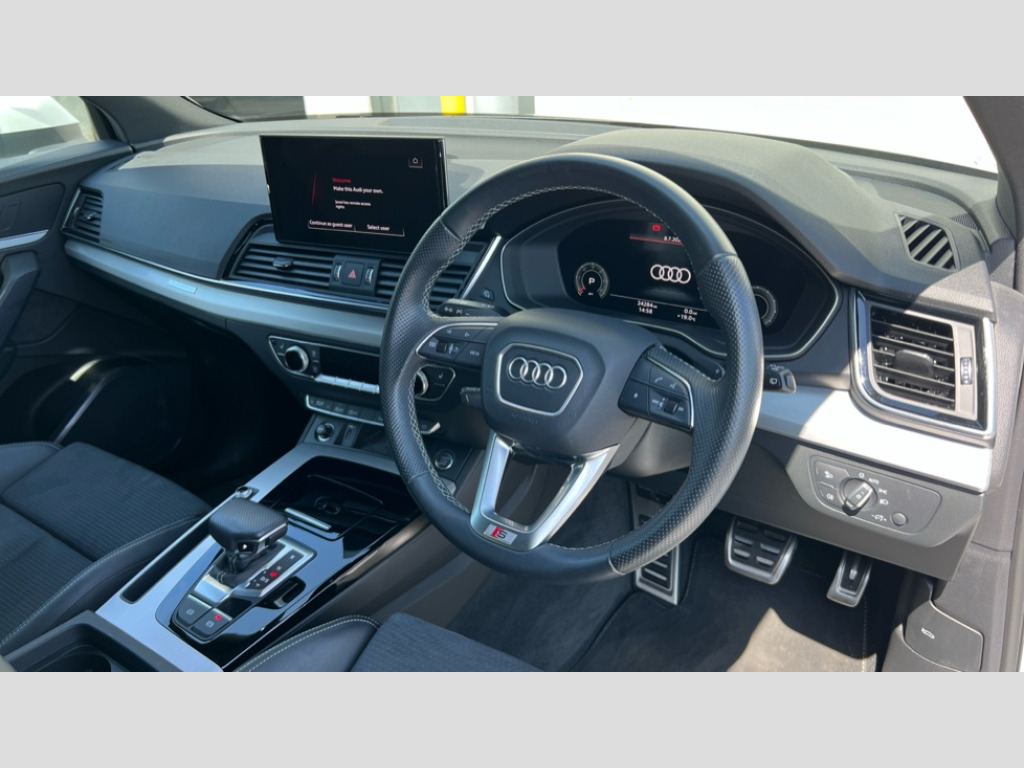 Audi Q5 40 TDI Quattro S Line 5dr S Tronic Audi connect safety and service (e-call), Audi connect with Amazon Alexa Integration, Audi drive select, Audi virtual cockpit plus with 12.3" screen and three different layout designs, Audi wireless smartphone interface, Automatic start-stop system with coasting functionality and efficiency programme, Bluetooth interface, Electro - mechanical power assisted steering, MMI navigation plus with 10.1" touch screen, Power tailgate, Reversing camera, Service interval indicator, Voice control system with Audi hotword activation "Hey Audi", Diesel particulate filter, Quattro on demand, S line sports suspension, 2 x USB charging port with aux input socket, DAB Digital radio, Acoustic windscreen, Aluminium roof rails, Audi matrix LED headlights with dynamic front and rear indicators, Auto dimming door mirrors, Auto dimming rear view mirror, Automatic headlights and windscreen wipers, Body colour door mirrors, Body colour rear diffuser with matt aluminium silver surrounds, Body colour underbody protection, Chrome plated exhaust trims, Daytime running lights, Door sills in Selenite silver, Electric adjustable/heated/folding door mirrors, Front air inlet surrounds in aluminium, Front and rear electric windows, Front radiator grille in honeycomb design, Headlight washers, High level LED brake light, Lower bumpers painted in contrast Manhattan grey, Rear chrome trim strip below lights, Rear privacy glass and rear side windows, Rear side wing doors, Rear spoiler, Rear wiper, Roof bars, S Line badges on the front wings, S Line front and rear bumpers, S Line side skirts, 3 rear headrests, 40:20:40 split folding 3 rear bench seat in 2nd row with rear centre armrest, Black cloth headlining, Comfort front centre armrest, Contrast stitching on seats, steering wheel and gear lever gaiter, Deluxe 3 zone electronic climate control, Front head restraints, Front/rear floor mats, Gear lever in black leather, Heated front seats, Height/reach adjustable steering column, Illuminated door sill trims with S logo, ISOFIX child seat mounting and top tether, Manual seat adjustment with 4-way electric lumbar support, Removable luggage compartment floor, Single front passenger seat, Stainless steel pedals, Sunvisors with vanity mirrors, Trunk roller cover, High gloss pack - Q5, LED interior light pack - Q5, 3 point seatbelts on all seats, 6 airbags - Driver, front passenger, curtain and side airbags, Electrically operated child locks on rear doors, Electromechanical parking brake, Electronic stabilisation control including ABS, ASR and EDL, Front passenger airbag deactivation, Hill descent control, Hill hold assist, Multi collision brake assist, Pop-up bonnet for pedestrian protection, Pre sense city, Seat belt force limiter, Seatbelt monitoring, Tyre pressure warning, Warning triangle and first aid kit, Anti theft alarm, Anti-theft wheel bolts, Keyless Go access/ignition system, Remote central locking, Matt brushed aluminium inlays