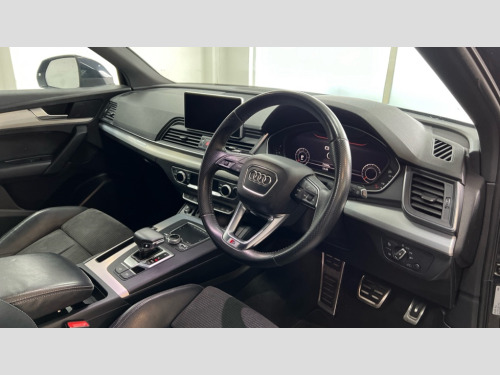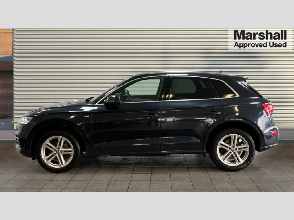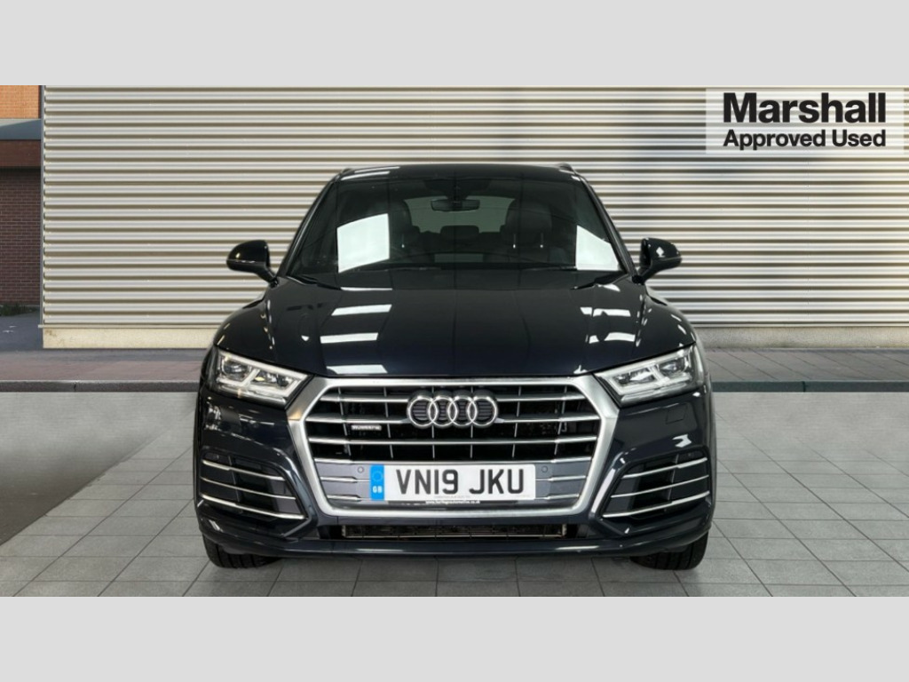 Audi Q5 40 TDI Quattro S Line 5dr S Tronic 7" Colour driver information system, Audi drive select, Audi parking system plus with front and rear sensors, Audi smartphone interface, Electro - mechanical power assisted steering, MMI Navigation, Mobile telephone preparation - bluetooth interface, Power tailgate, Service interval indicator, Voice control system, Diesel particulate filter, 2 x USB charging port with aux input socket, 2x SD card slot, CD player, DAB Digital radio, MMI radio plus with 7" colour MMI screen and MMI controller, Acoustic windscreen, Air inlets in matt titanium black with blades in matt aluminium silver, Aluminium roof rails, Auto dimming rear view mirror, Automatic headlight levelling, Body colour bumpers, Body colour door mirrors, Body colour rear diffuser with matt aluminium silver surrounds, Body colour S Line side skirts, Body colour underbody protection, Chrome exhaust tailpipe, Front and rear electric windows, High beam assistant, Light and rain sensor for auto activation of lights and windscreen wipers, Loading sill protector in stainless steel, Privacy glass with front acoustic glazing, Rear wiper, S Line badges on the front wings, S Line front and rear bumpers/side air inlets and diffuser, S Line rear spoiler, Twilight grey matt radiator grille with matt aluminium horizontal chrome struts, 3 rear headrests, 3 zone climate control, 4 way electric lumbar support for driver and front passenger, 40:20:40 split folding rear seat with rear centre armrest, Black cloth headlining, Contrast stitching on seats, steering wheel and gear lever gaiter, Front centre armrest, Front sport seats with S embossed logo, Front/rear floor mats, Height adjustable front head restraints, Illuminated door sill trims with S logo, ISOFIX child seat mounting and top tether, Luggage compartment carpet, Perforated leather gearknob, Removable luggage compartment floor, Stainless steel pedals, Sunvisors with vanity mirrors, Trunk roller cover, High gloss pack - Q5, Non Smokers pack, 3 point seatbelts on all seats, 6 airbags - Driver, front passenger, curtain and side airbags, Electromechanical parking brake, Electronic stabilisation control including ABS, ASR and EDL, Front passenger airbag deactivation, Hill descent control, Hill hold assist, Multi collision brake assist, Pop-up bonnet for pedestrian protection, Pre sense city, Seat belt force limiter, Seatbelt monitoring, Tyre pressure warning, Warning triangle and first aid kit, Anti theft alarm, Anti-theft wheel bolts, Keyless Go access/ignition system, Remote central locking, Tool kit